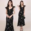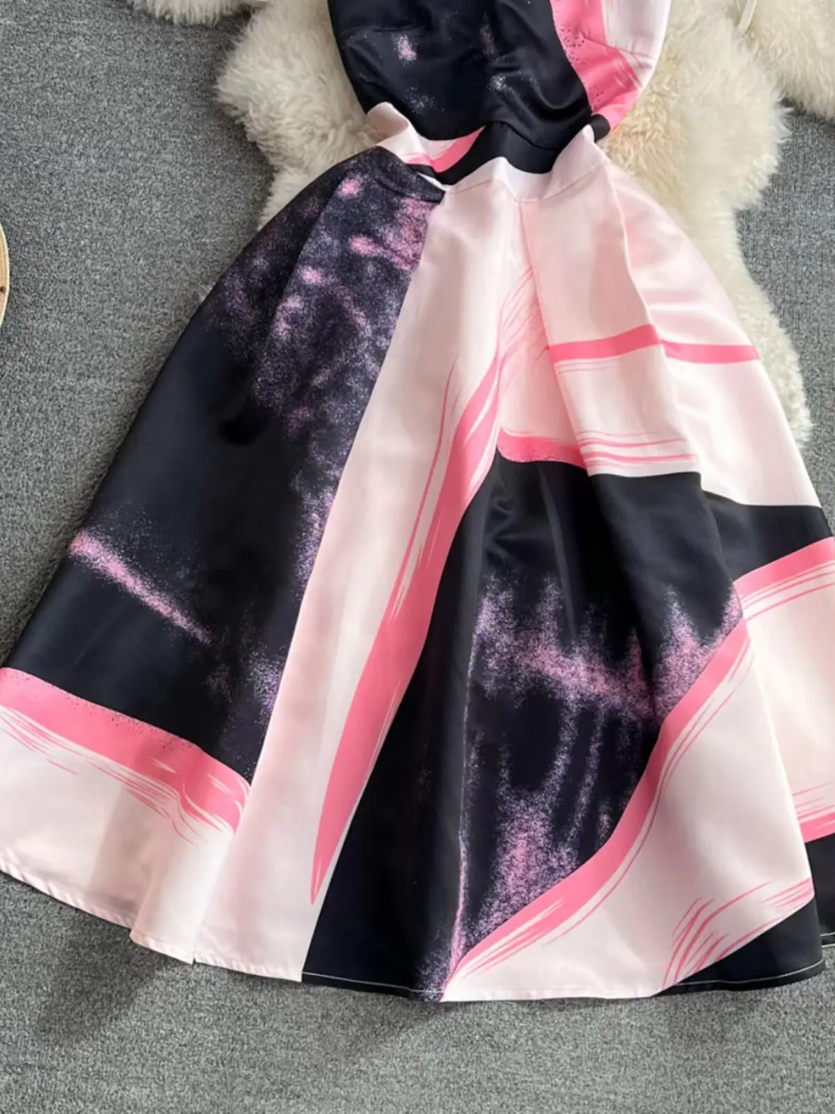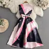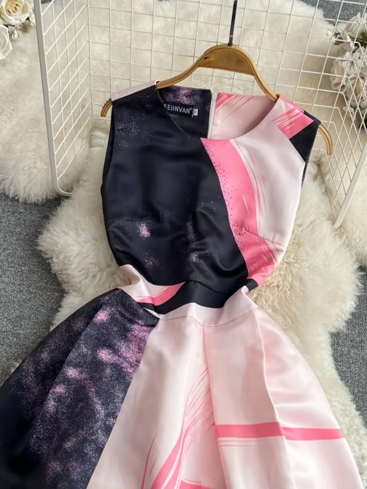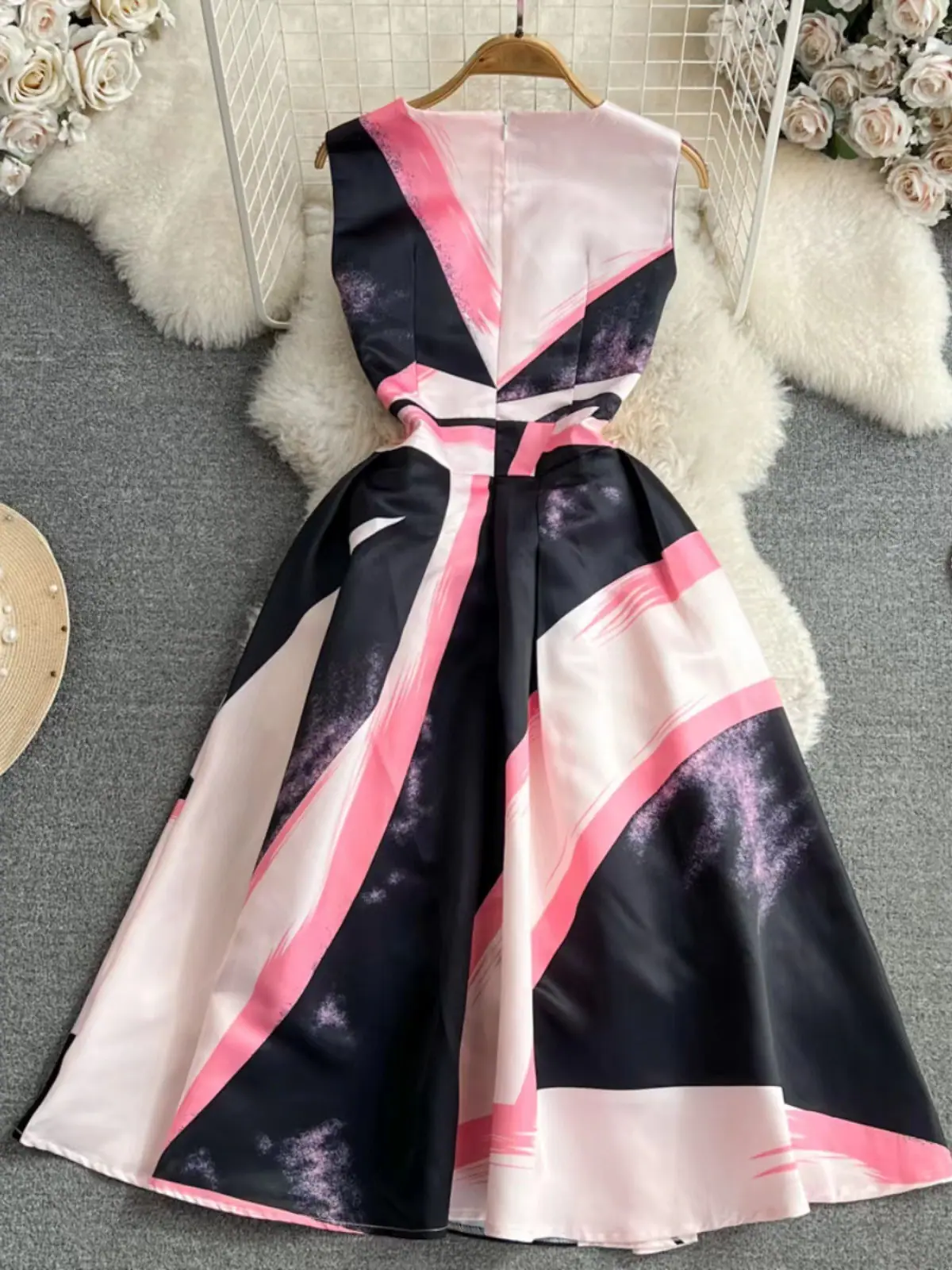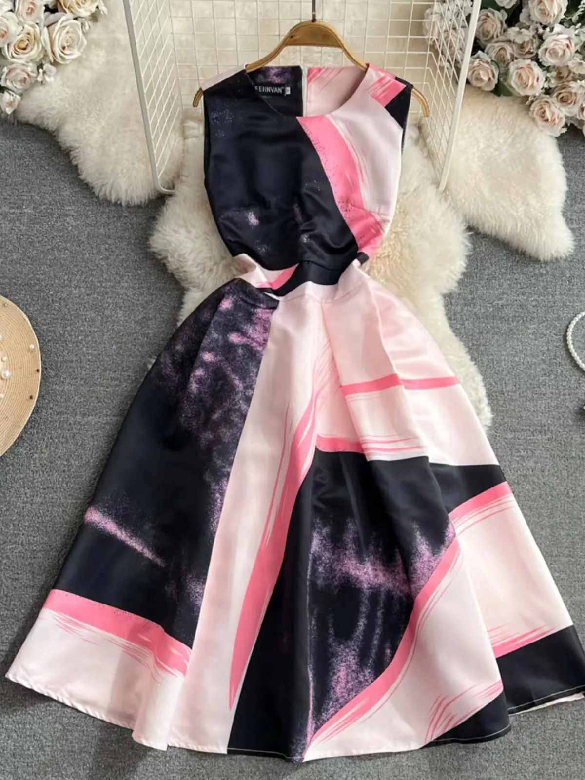 Vestido de Moda Estilo Maduro Ligero Celebridad Elegante Sin Mangas Cuello Redondo Cintura Ajustada Adelgazante Largo Medio Estampado A Gran Vuelo Verano