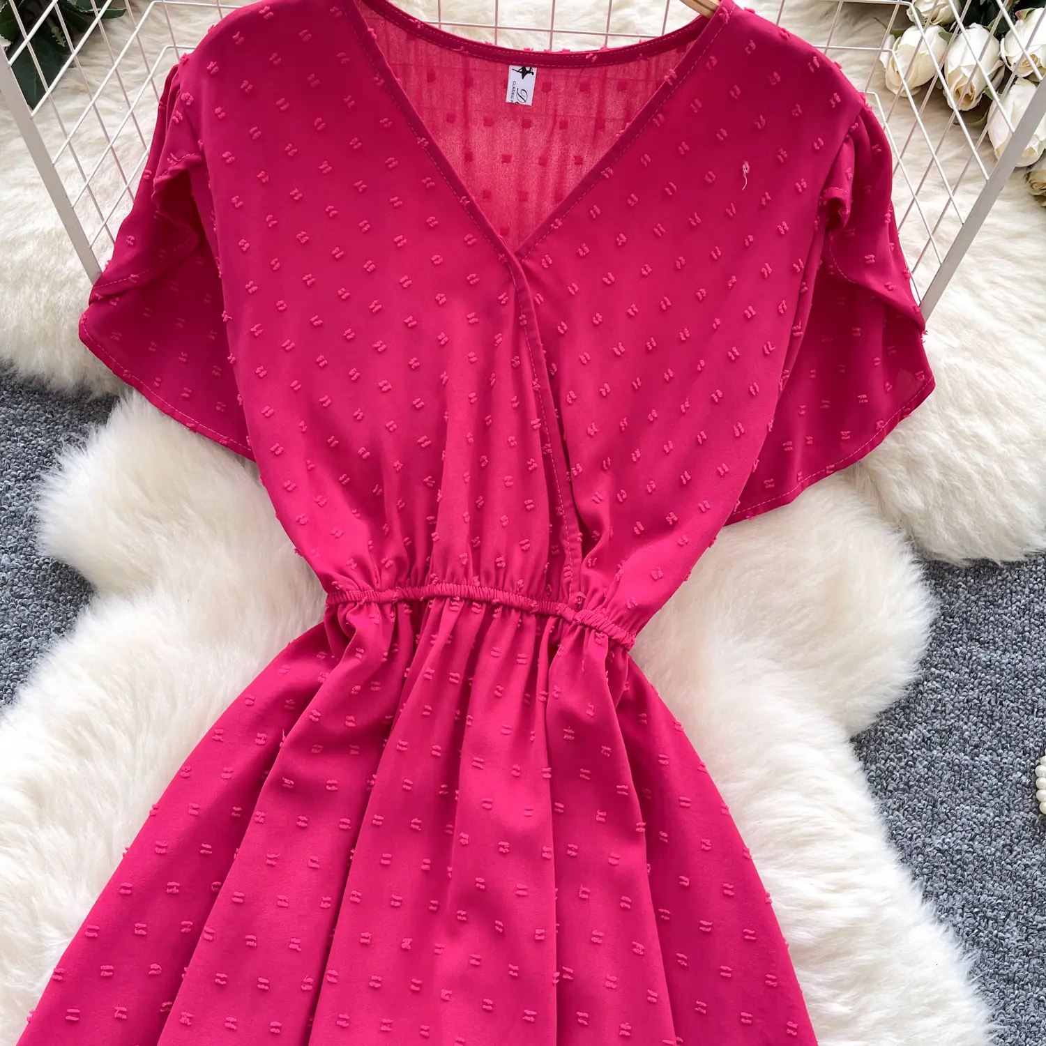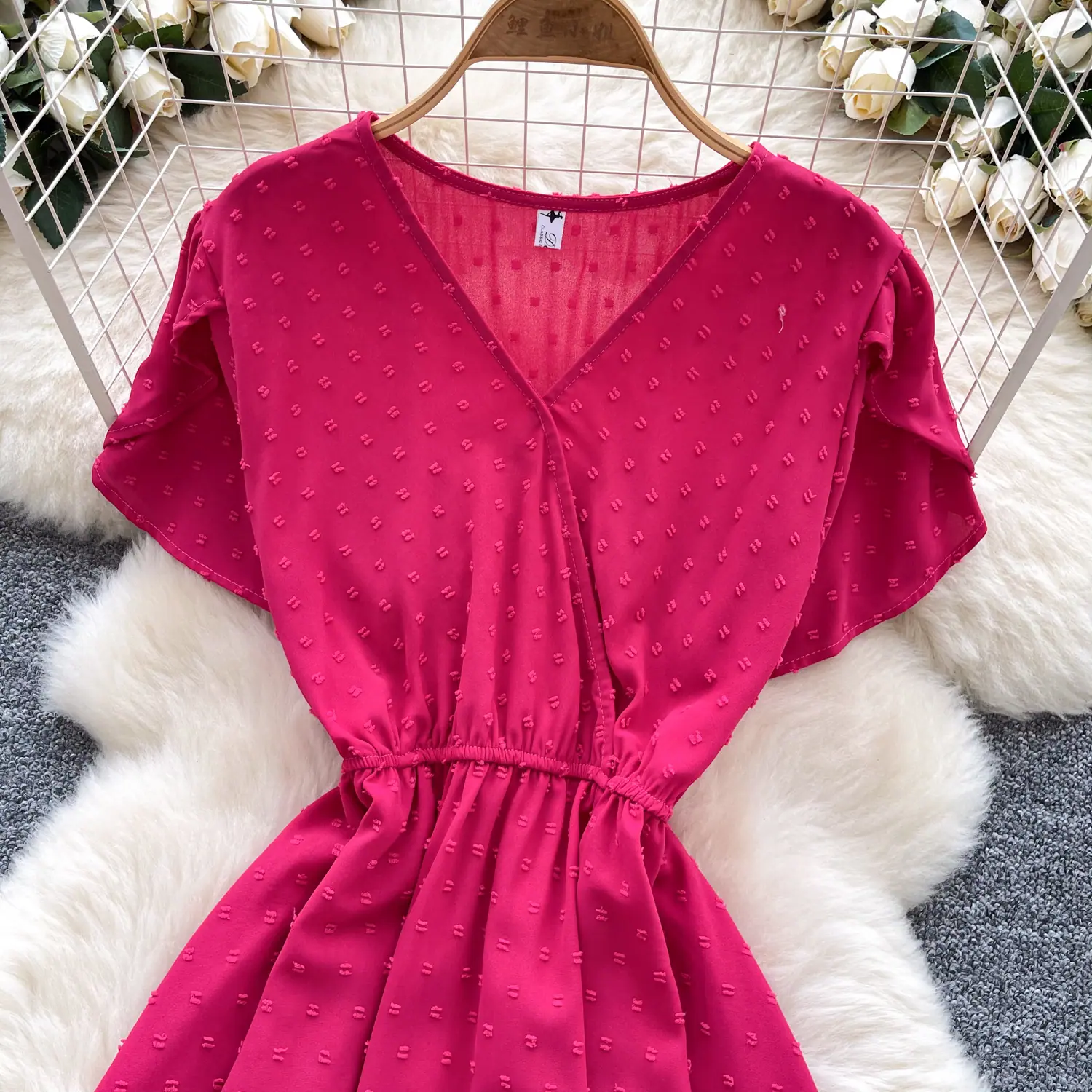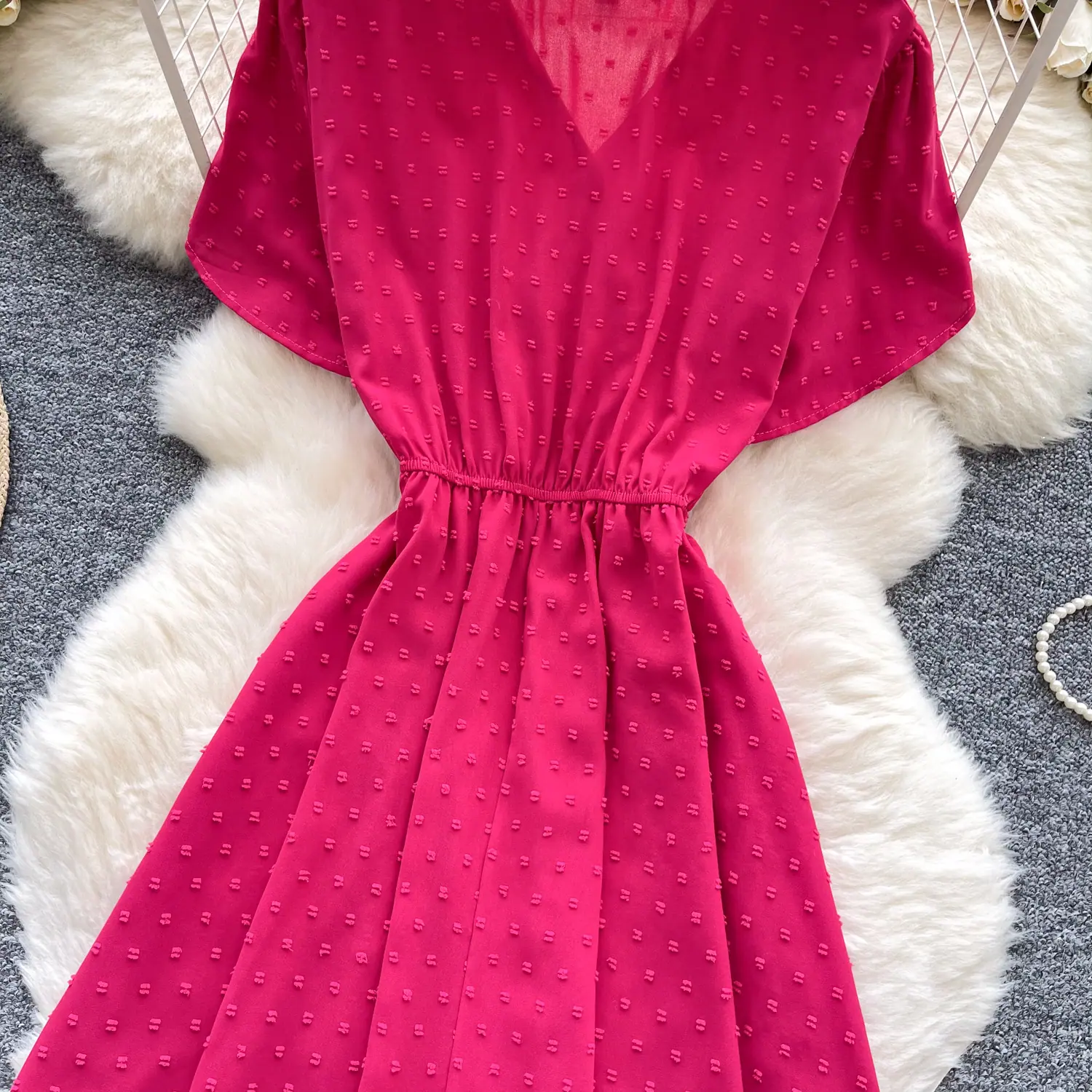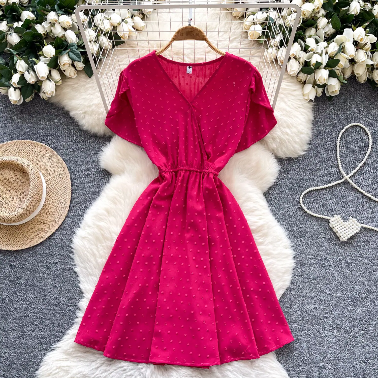 Vestido de Cintura de Manga Corta con Cuello en V de Estilo Dulce y Delicado para Mujer 2025 Verano Francés Look Adelgazante Elegante Súper Hada Falda Corta