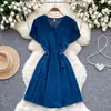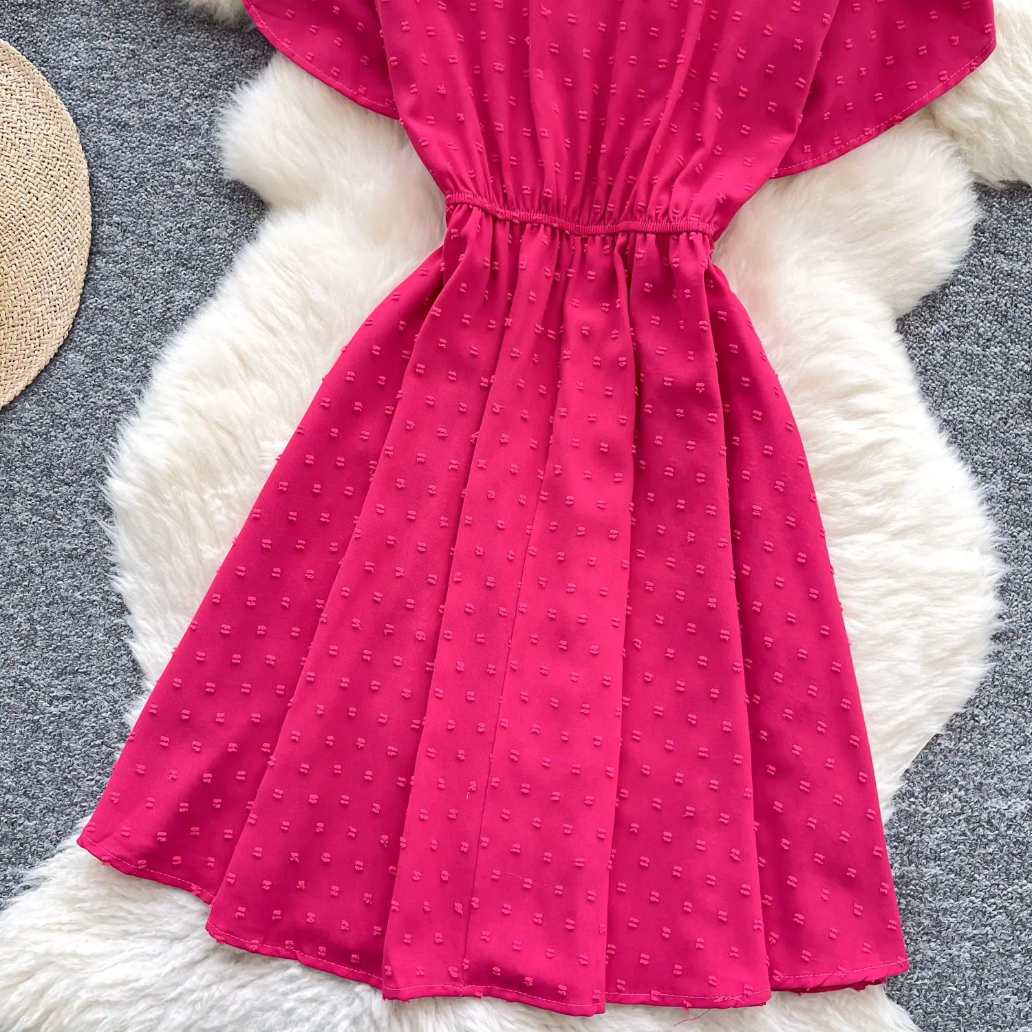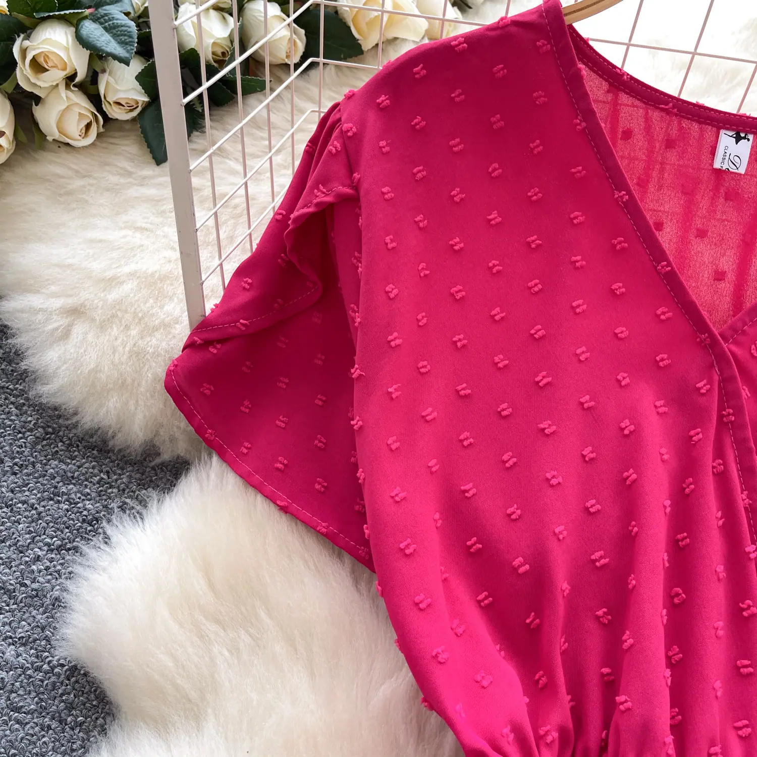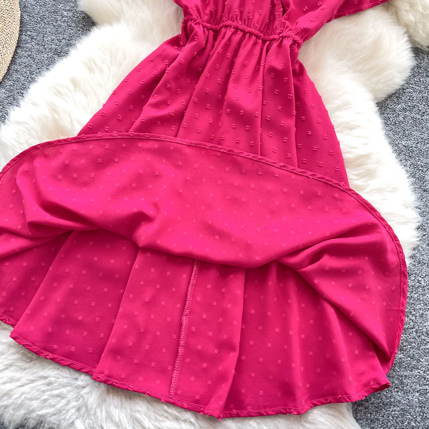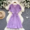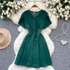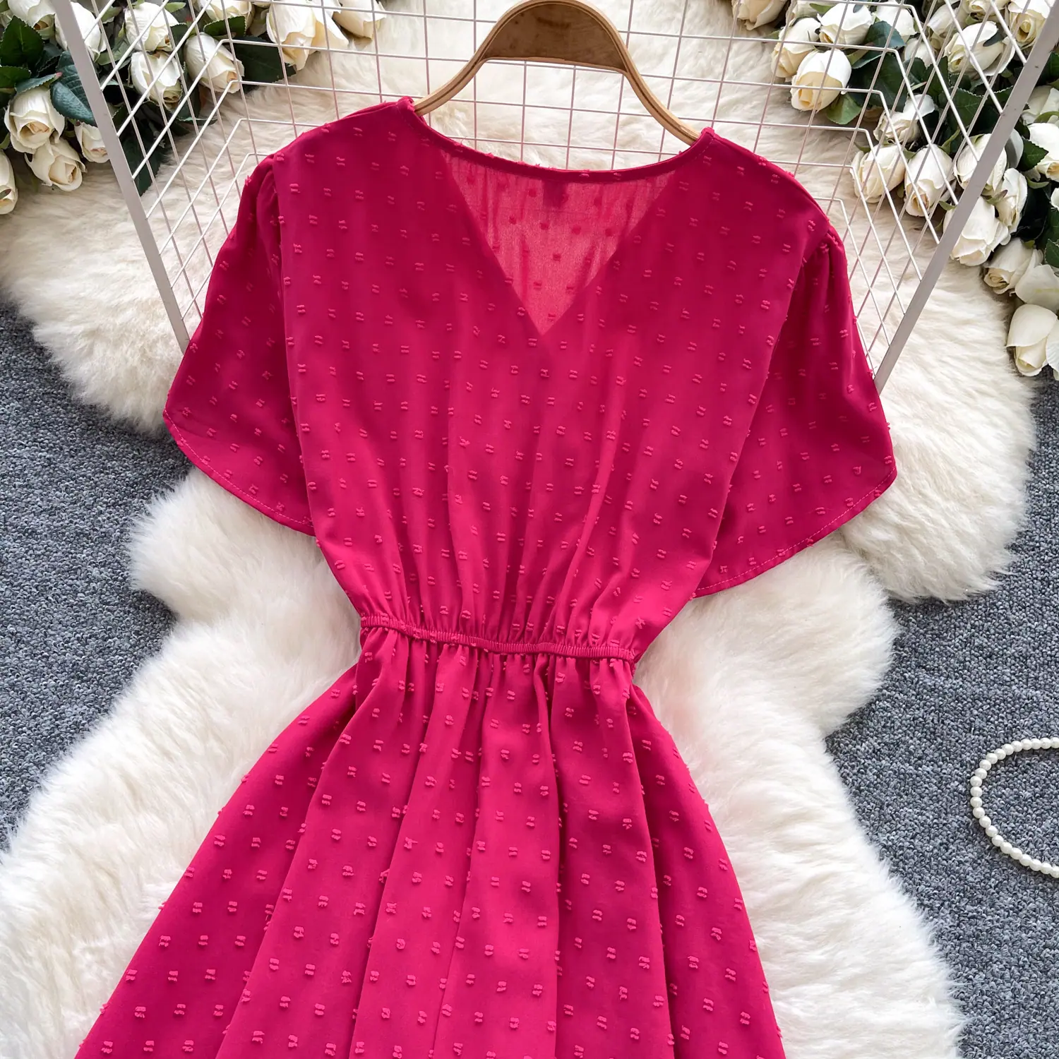 Vestido de Cintura de Manga Corta con Cuello en V de Estilo Dulce y Delicado para Mujer 2025 Verano Francés Look Adelgazante Elegante Súper Hada Falda Corta