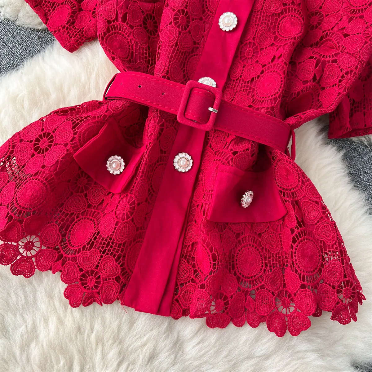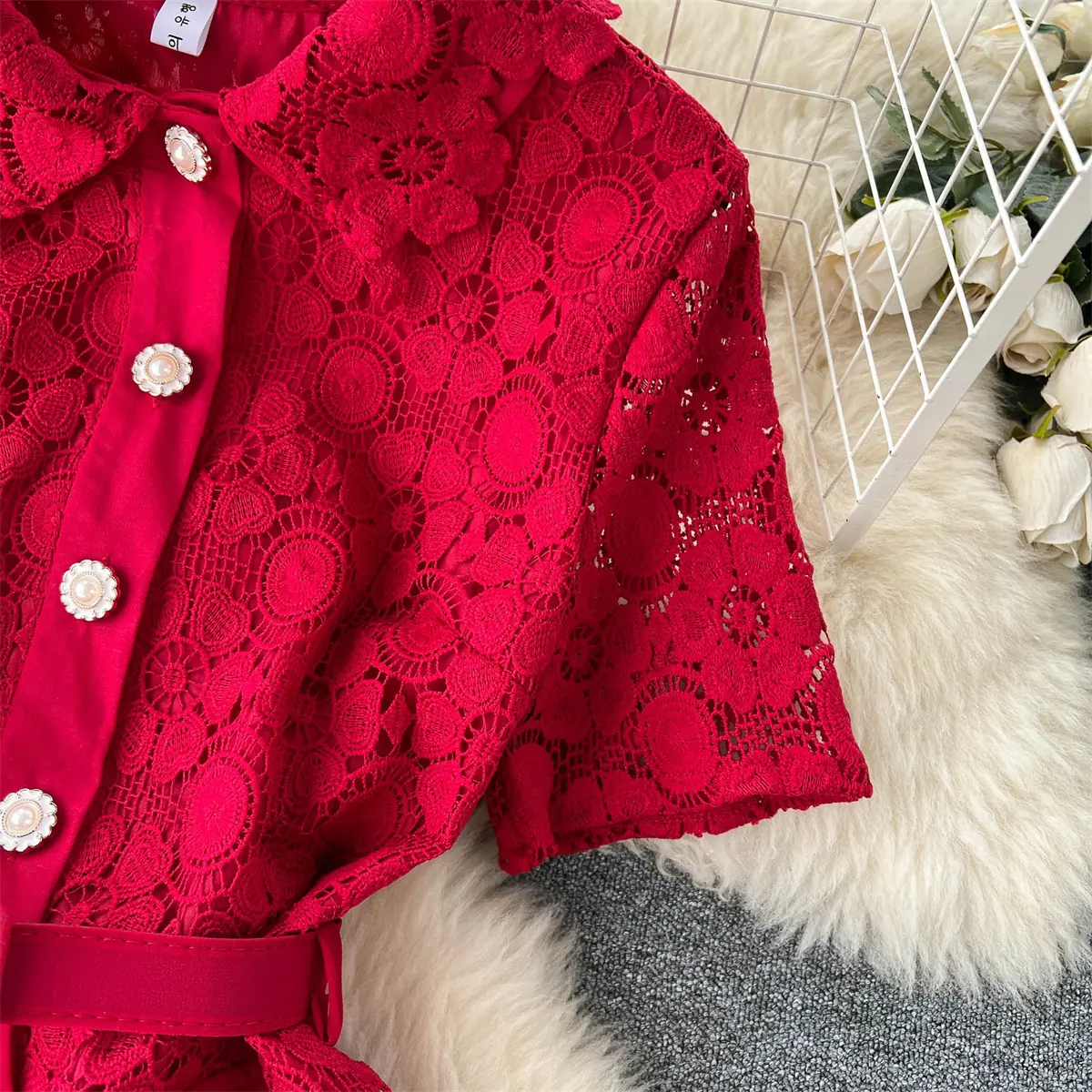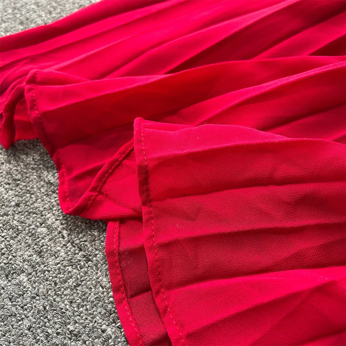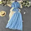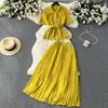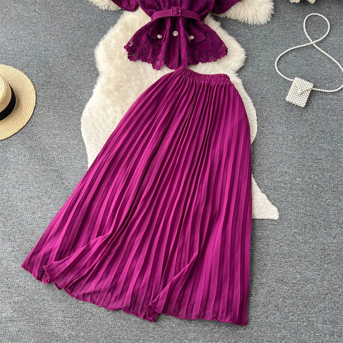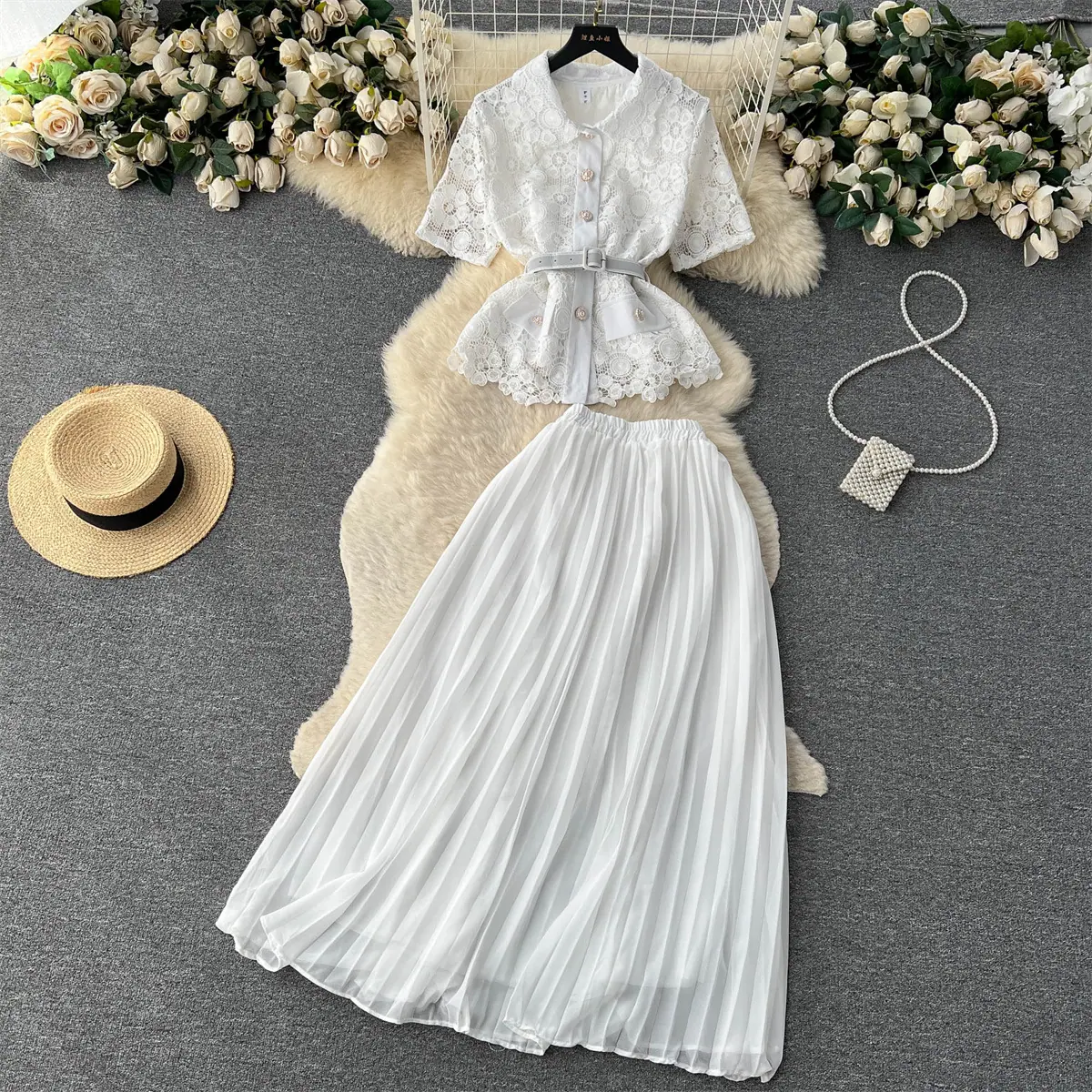 Traje francés de alta gama para mujer, conjunto de dos piezas con solapa, manga corta, top ajustado y falda plisada de cintura alta.