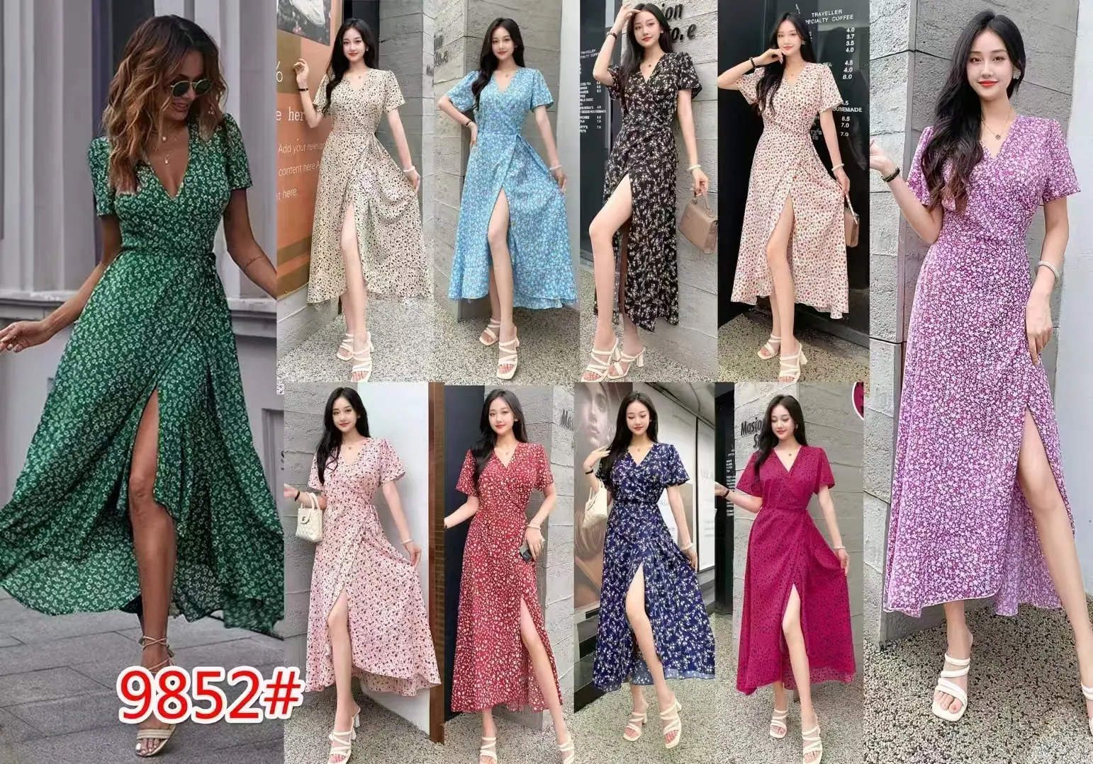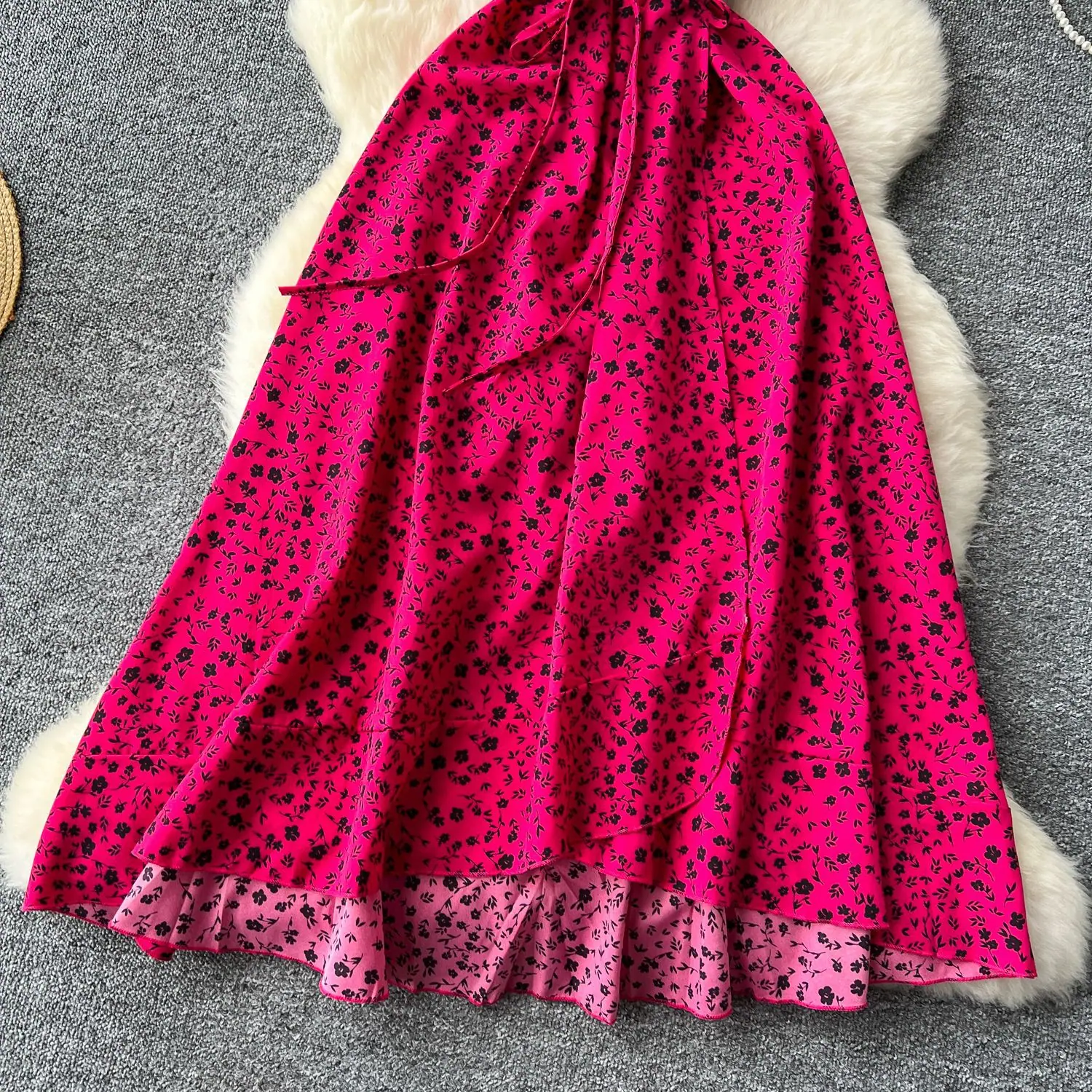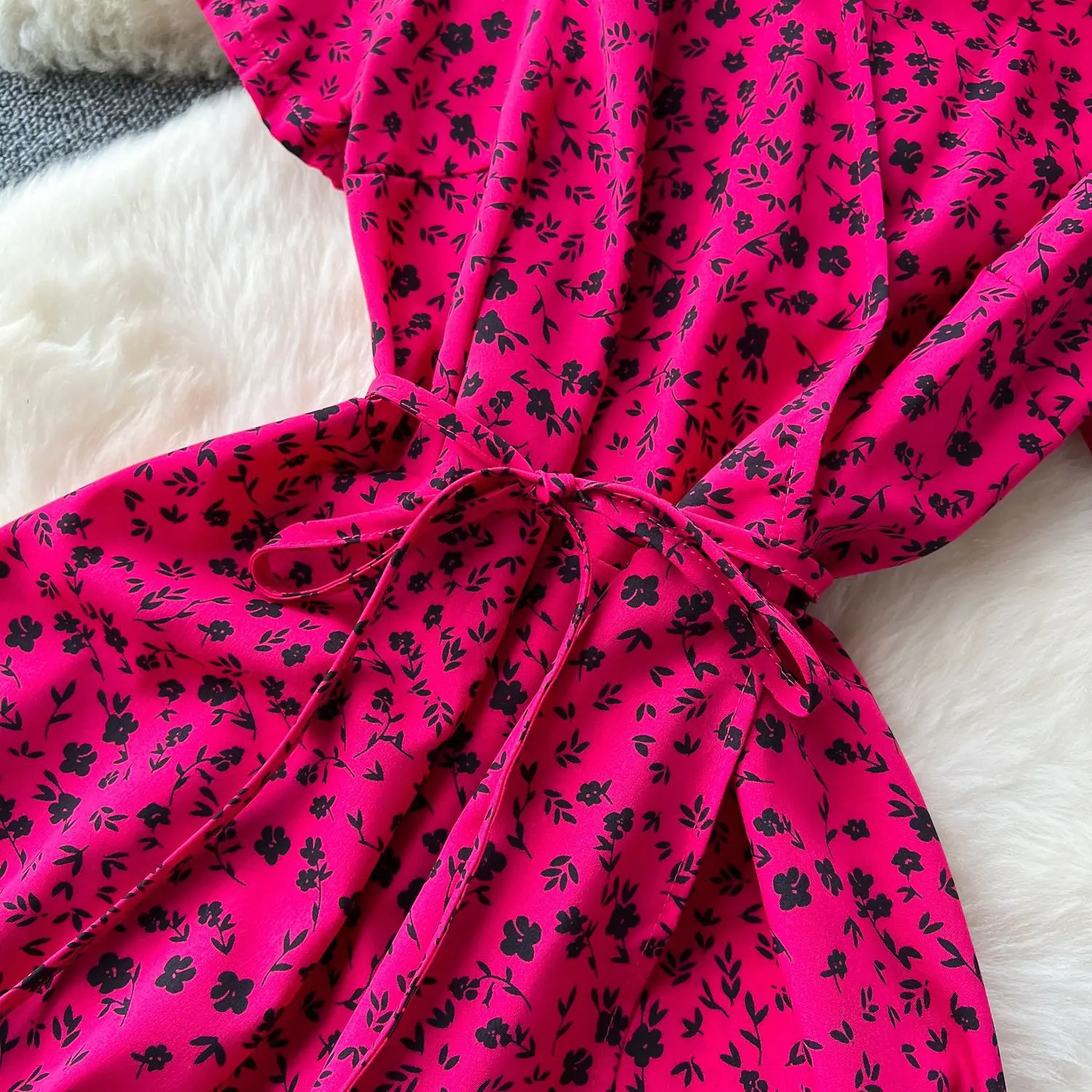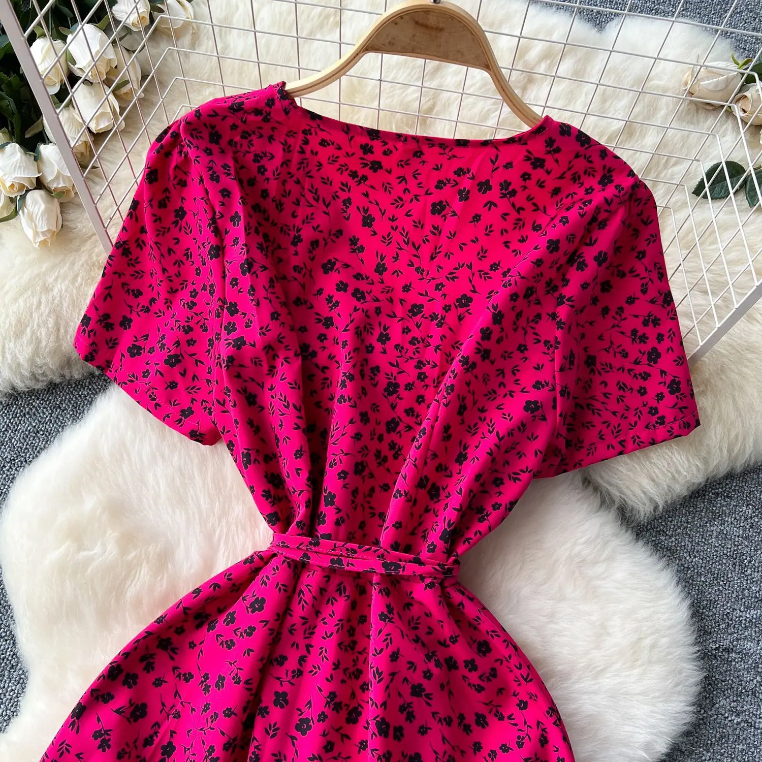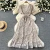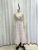 Vestido Floral de Verano para Mujer con Diseño de Una Pieza, Cuello en V, Cintura con Cordones, Manga Corta, Corte Adelgazante, Falda Larga Francesa