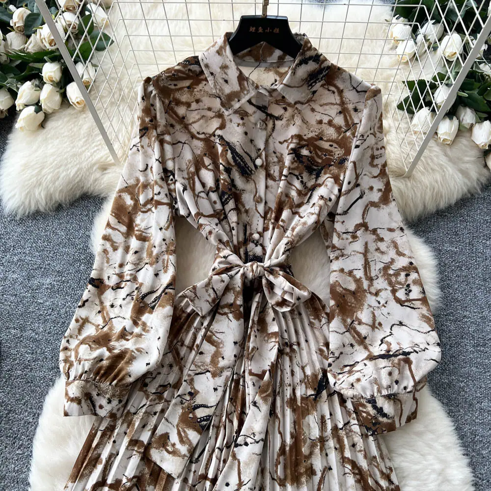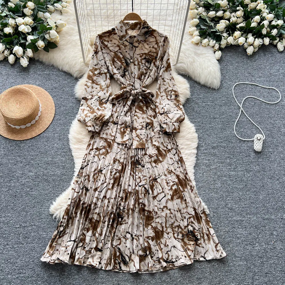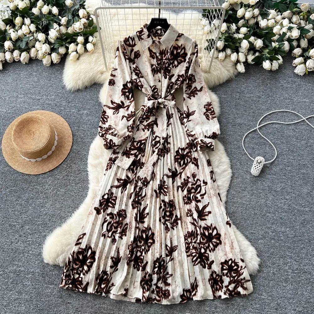 Vestido Camisero Midi Adelgazante Nuevo Otoño 2025 para Mujer Estilo Retro Francés Ligeramente Maduro con Cinturón de Lazo y Manga Larga