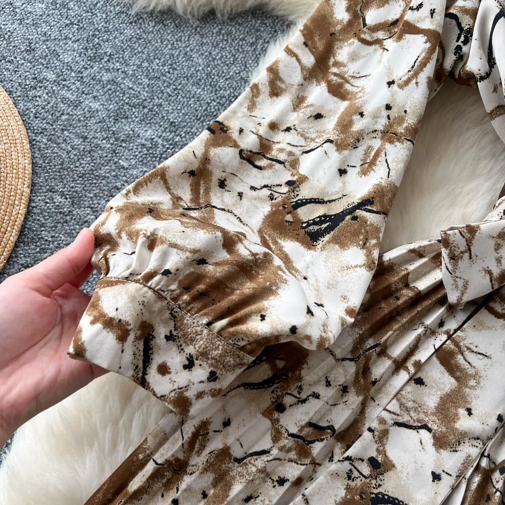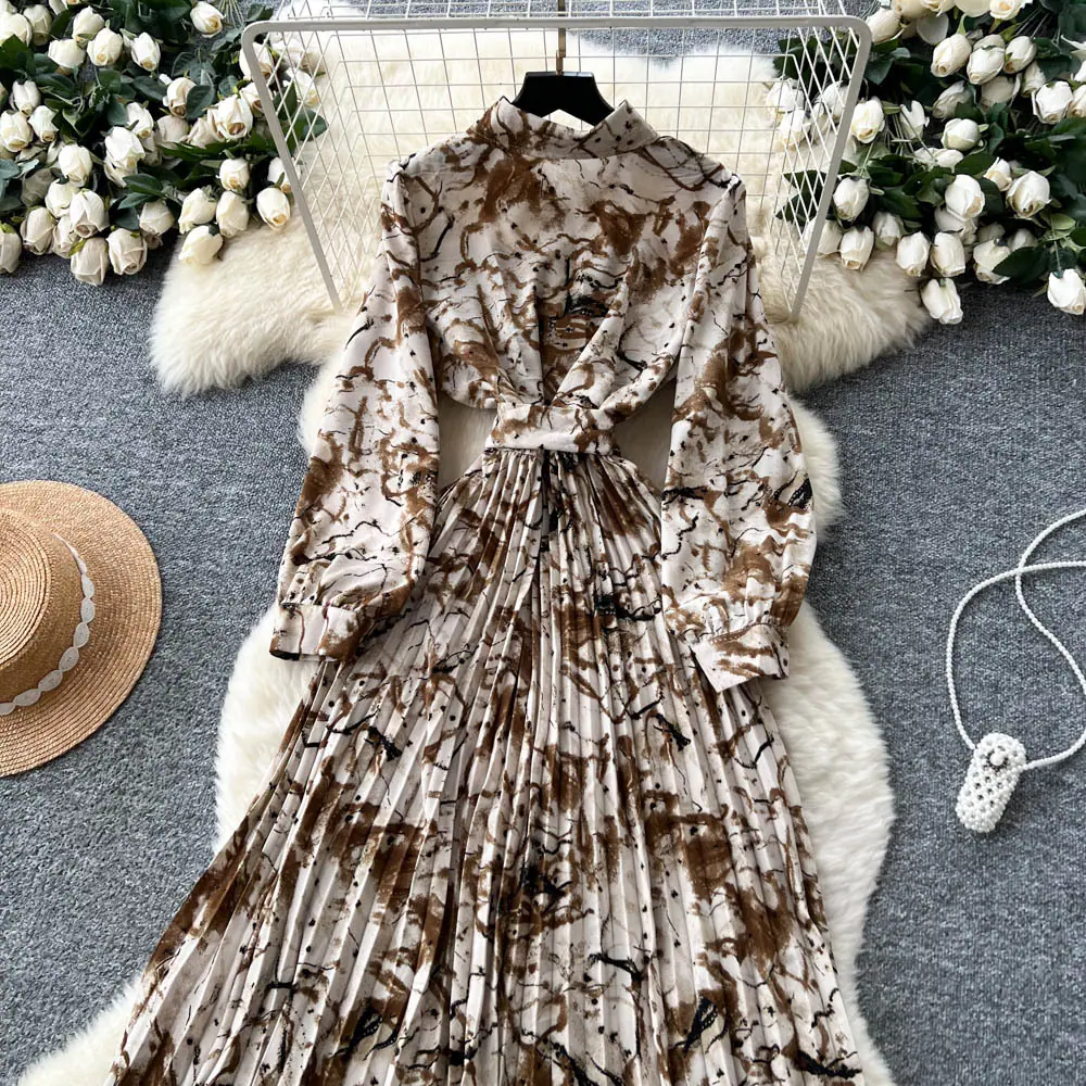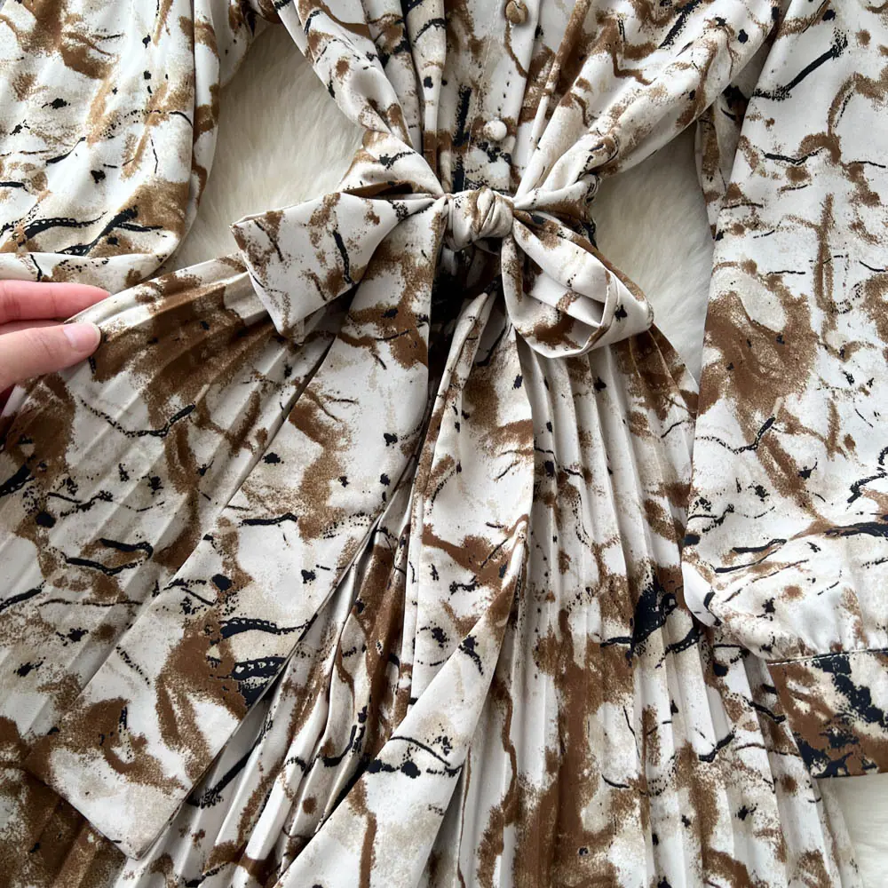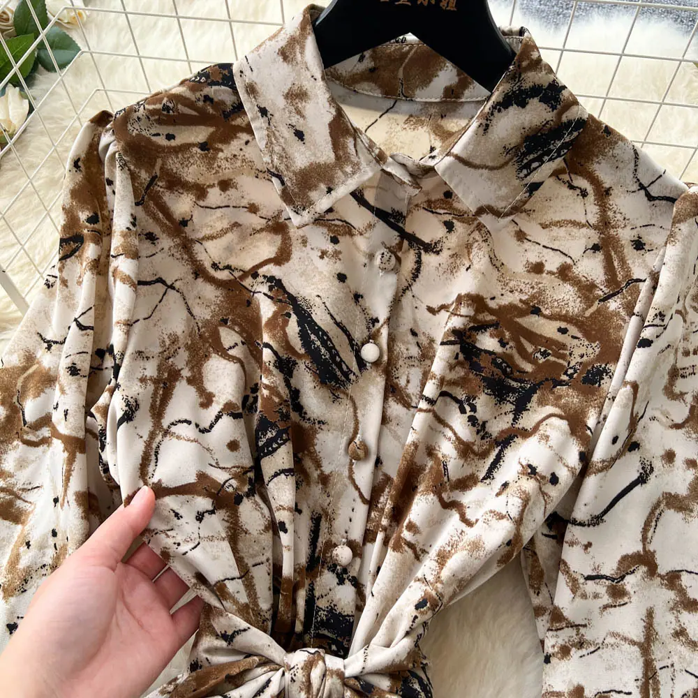 Vestido Camisero Midi Adelgazante Nuevo Otoño 2025 para Mujer Estilo Retro Francés Ligeramente Maduro con Cinturón de Lazo y Manga Larga