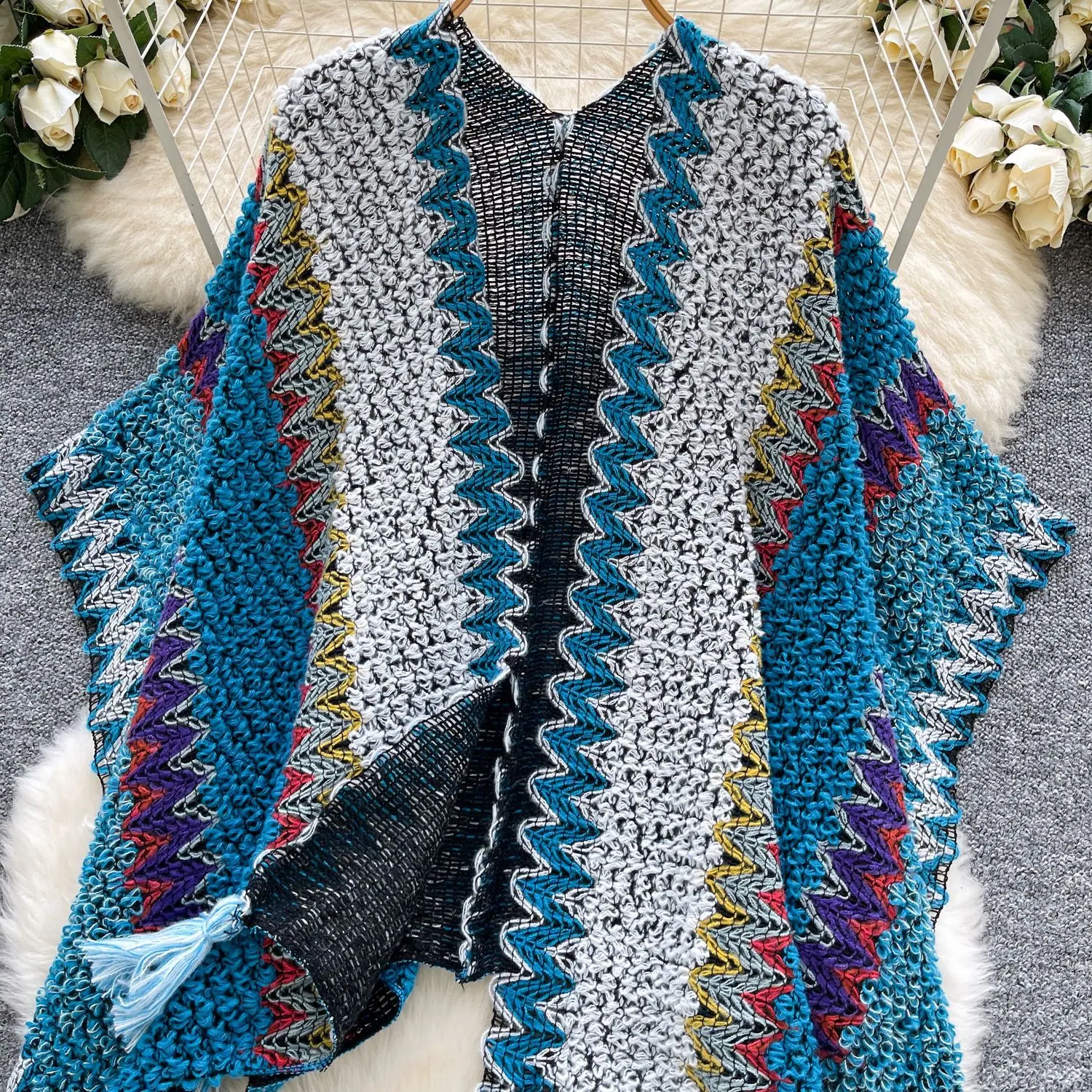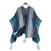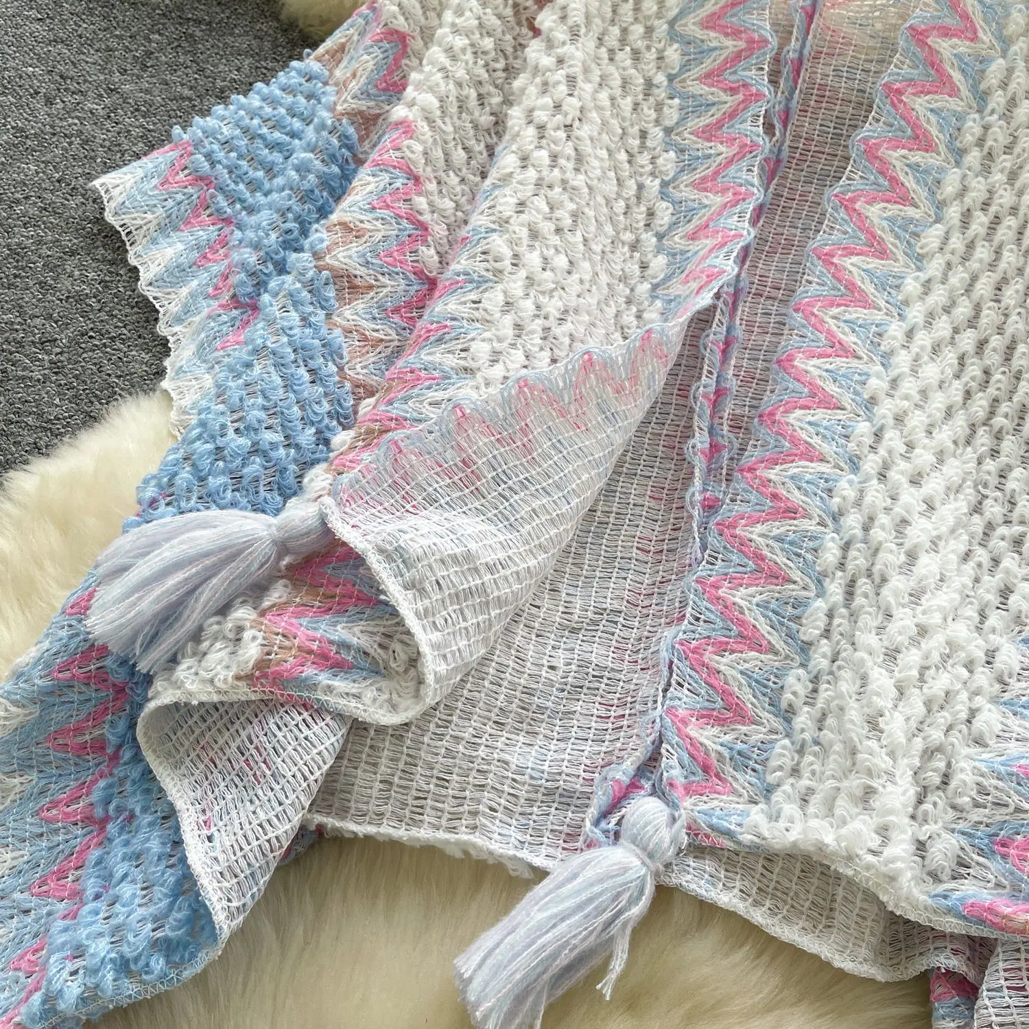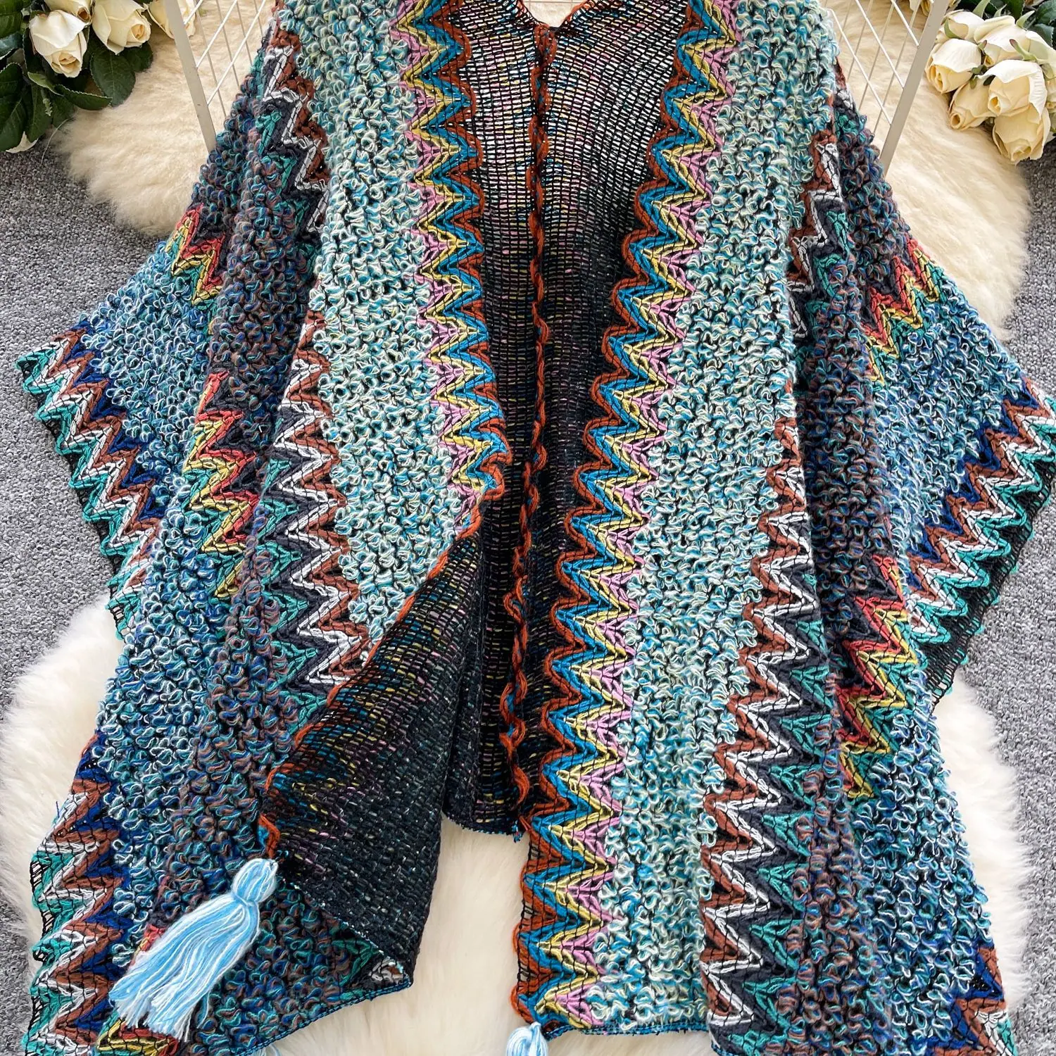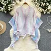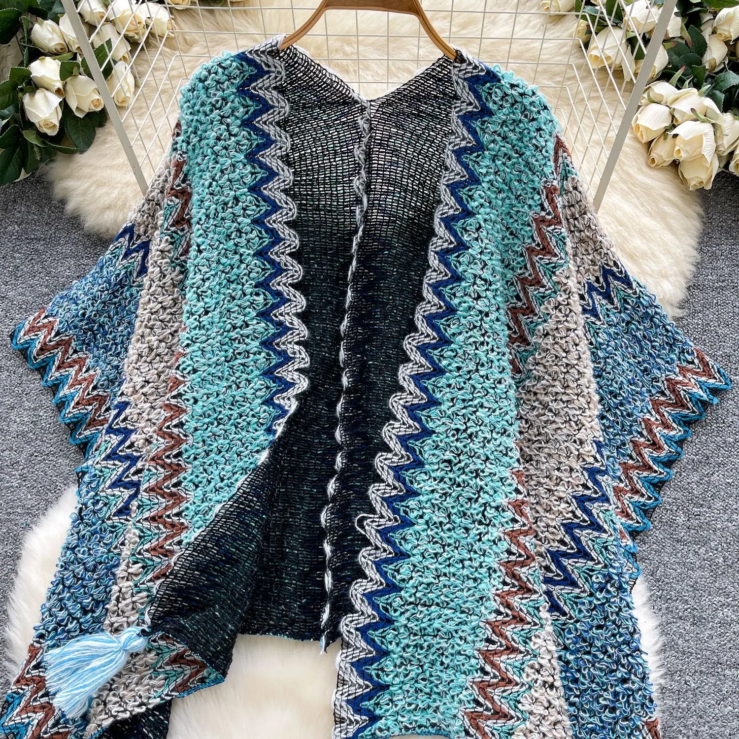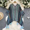 Traje de Vacaciones para Viaje Ropa Exterior Mujer 2025 Otoño Estilo Holgazán Suelto Irregular Colorido Crochet Flecos Prendas de Punto