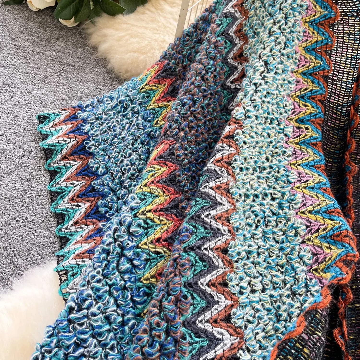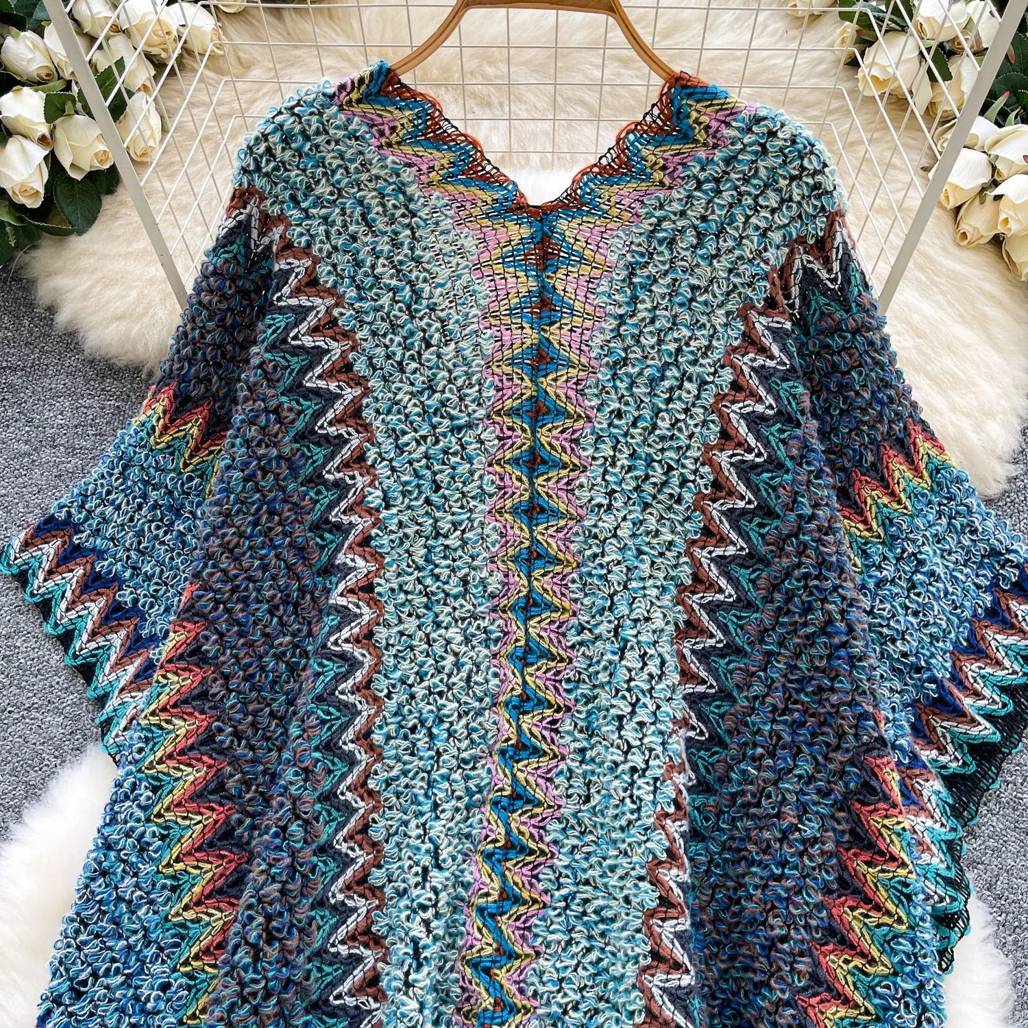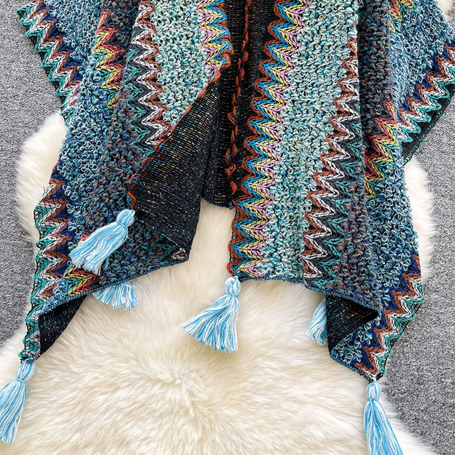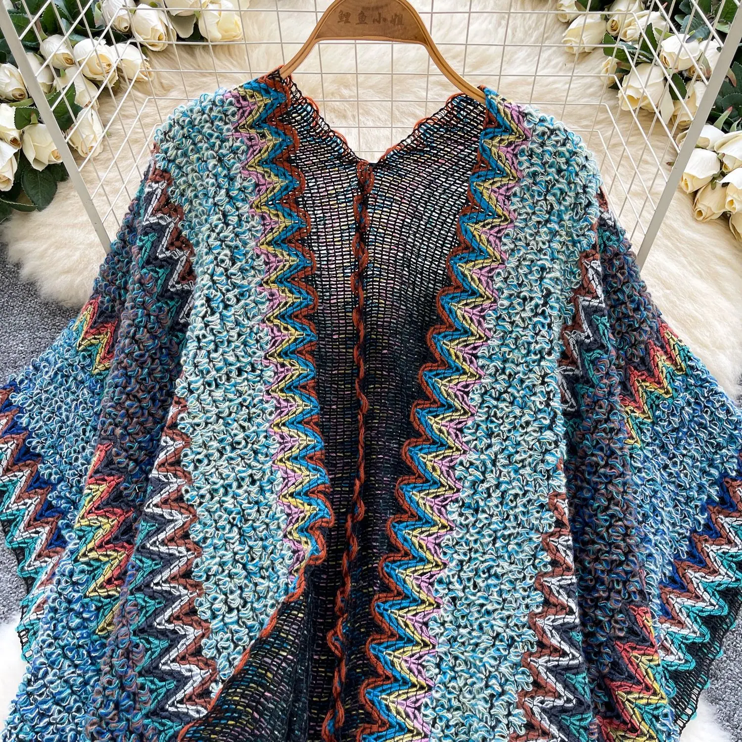Traje de Vacaciones para Viaje Ropa Exterior Mujer 2025 Otoño Estilo Holgazán Suelto Irregular Colorido Crochet Flecos Prendas de Punto