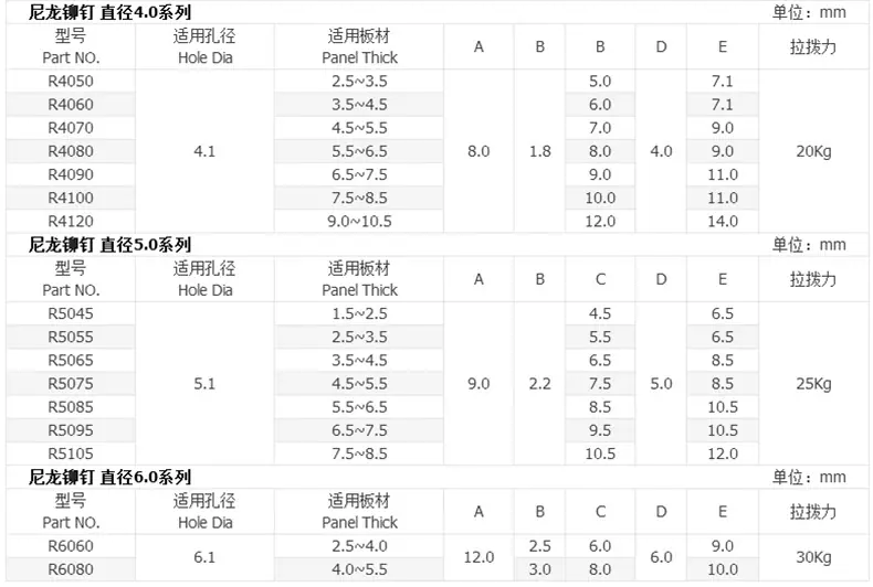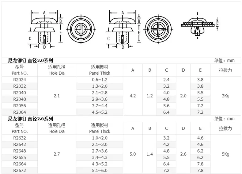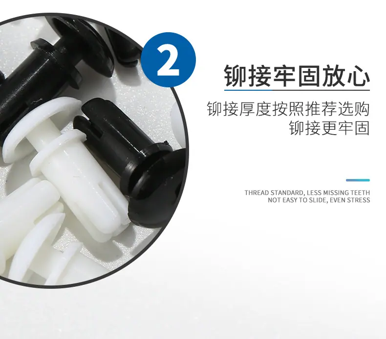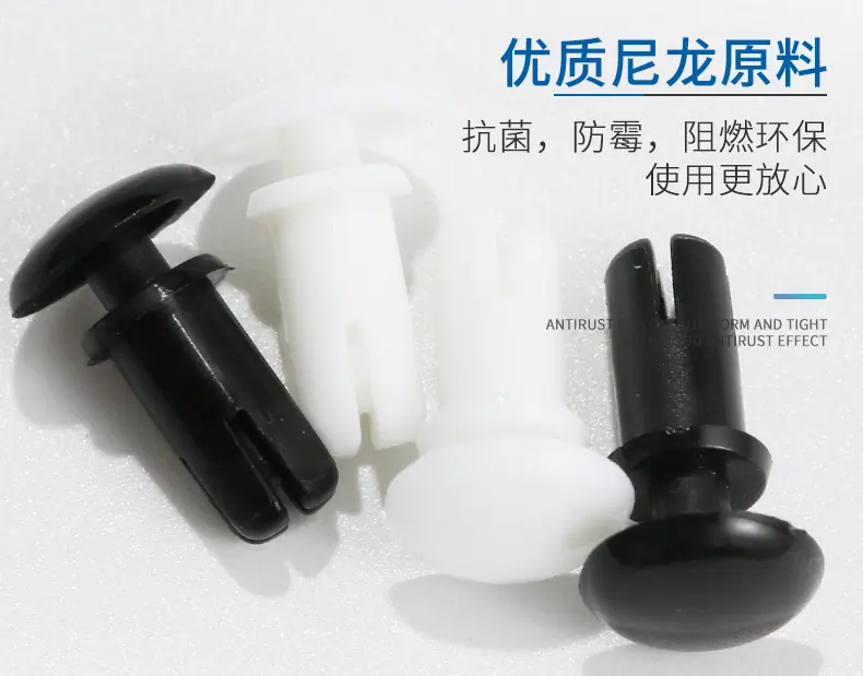 Remaches de nailon Remaches de plástico blancos y negros Remaches en forma de R Remaches en forma de R para placas de PC Remaches de plástico macho-hembra Expansión de plástico