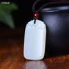 Jade Hetian de Mineral en Bruto Natural Auspicioso Cabeza de Pan Tarjeta de Nada Colgante de Jade para Hombres y Mujeres Paz y Buena Suerte Colgante de Tarjeta Amuleto de Jade