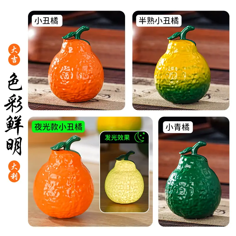 Good luck - clown orange, Good luck - half green orange, Good luck - little green orange, Good luck - glow-in-...