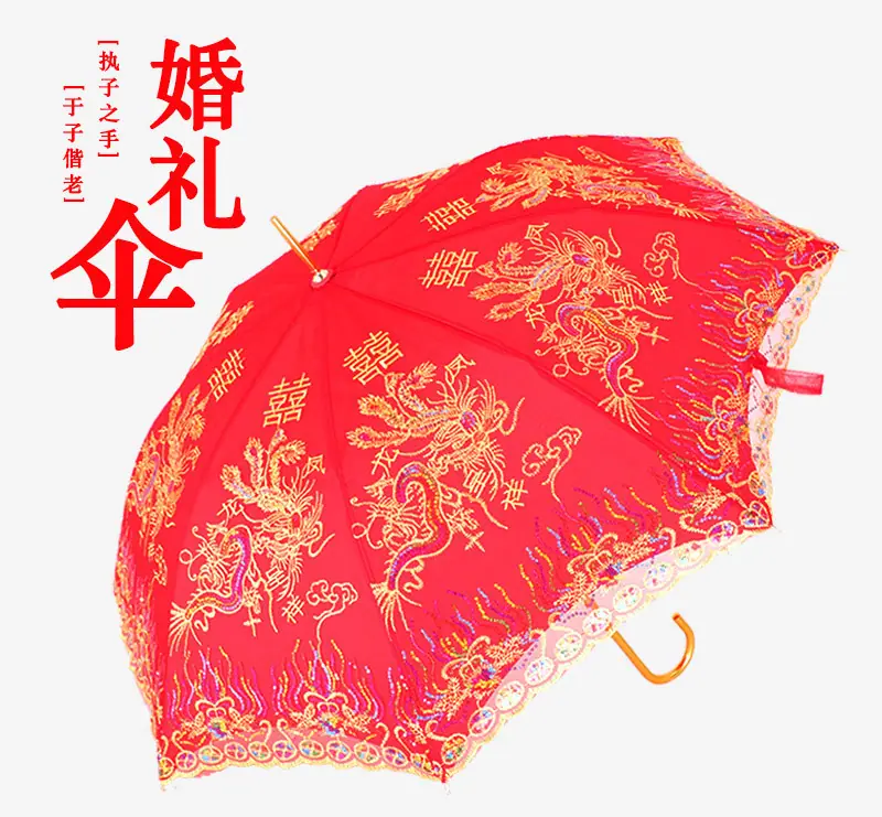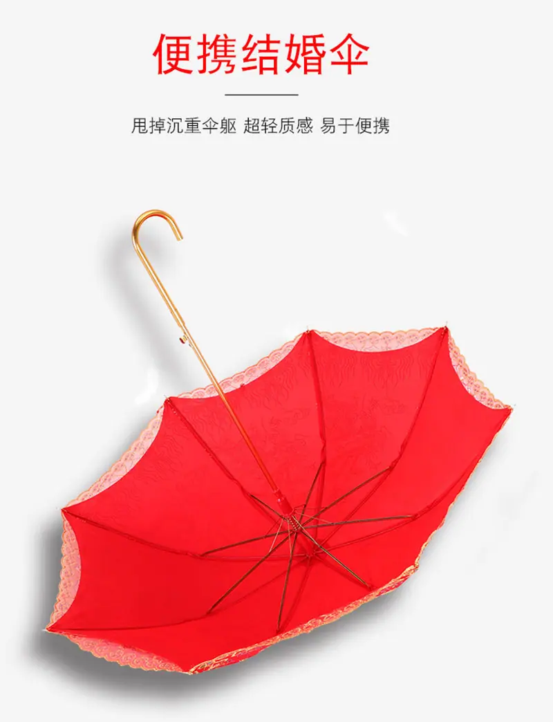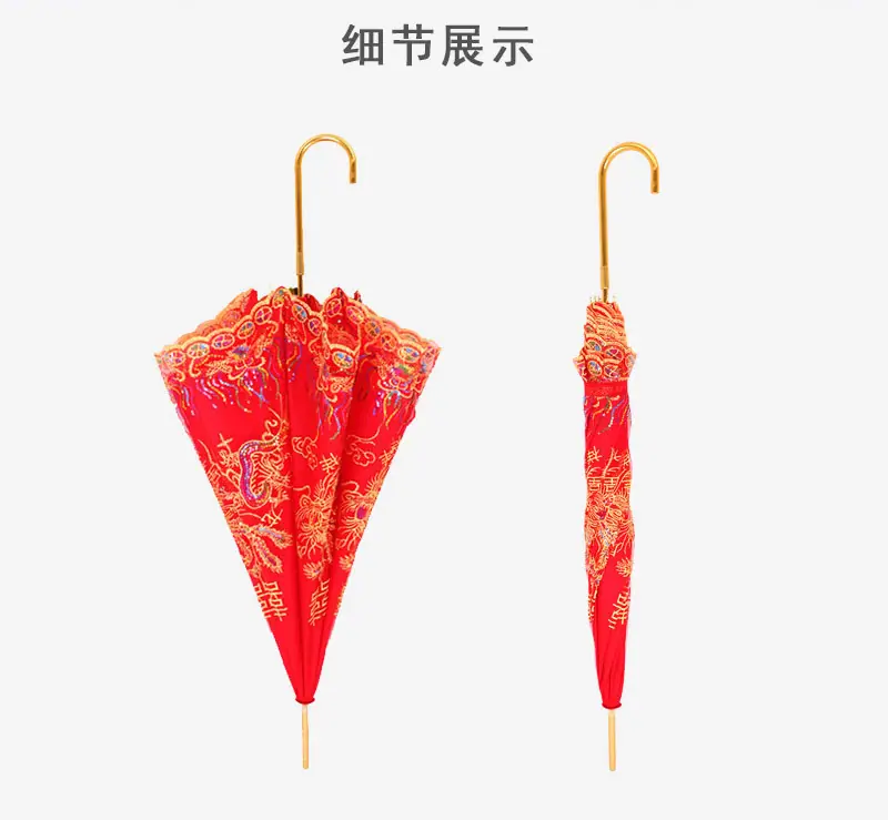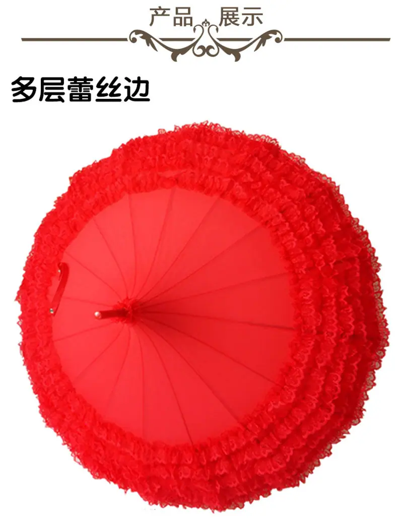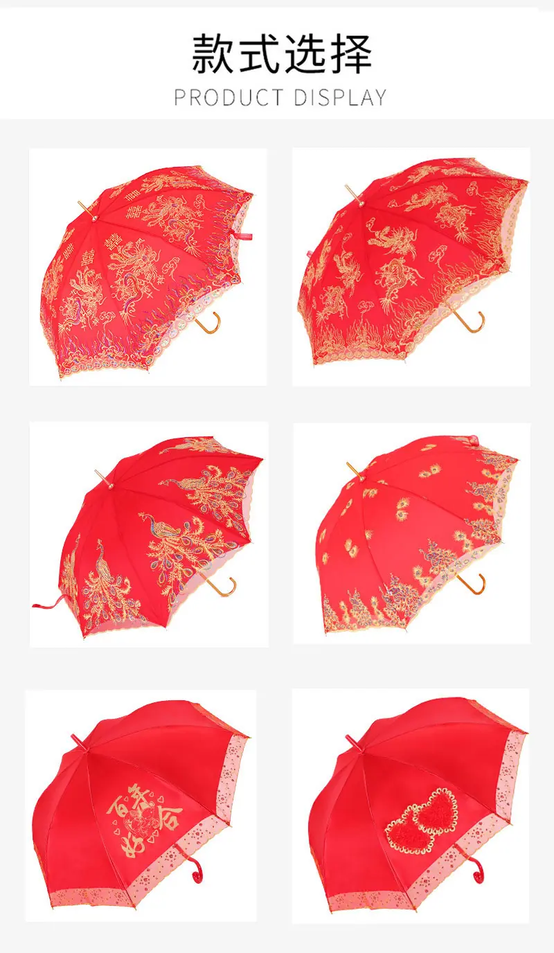 Paraguas Rojo de Boda Paraguas Nupcial Encaje Bordado Paraguas de Boda Boda China Paraguas de Boda Retro Paraguas de Boda de Mango Largo