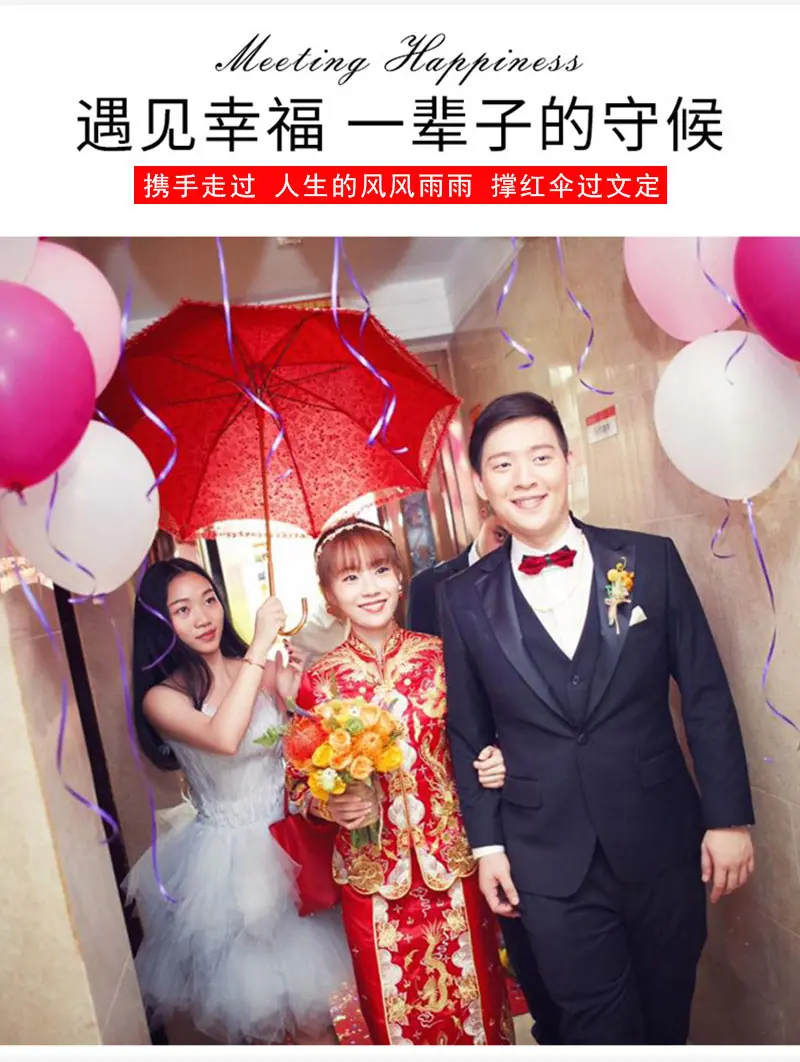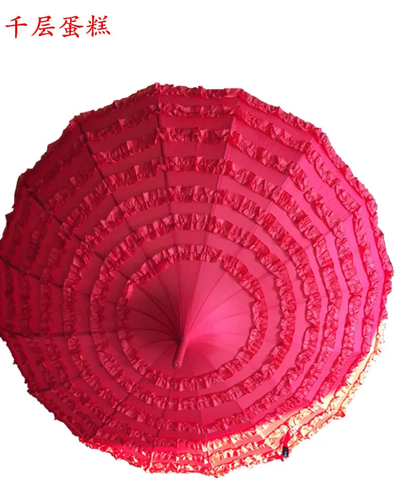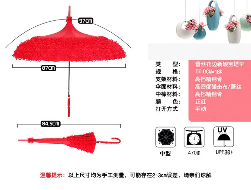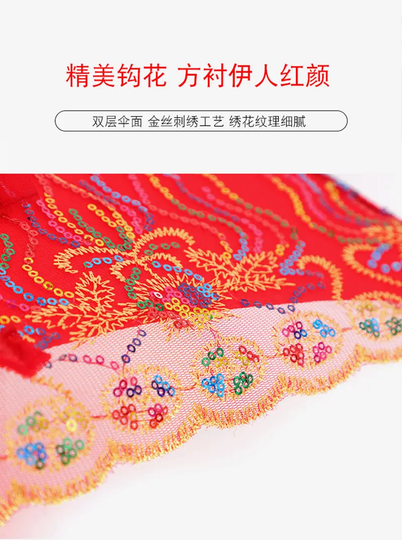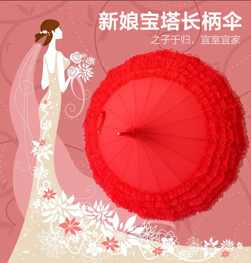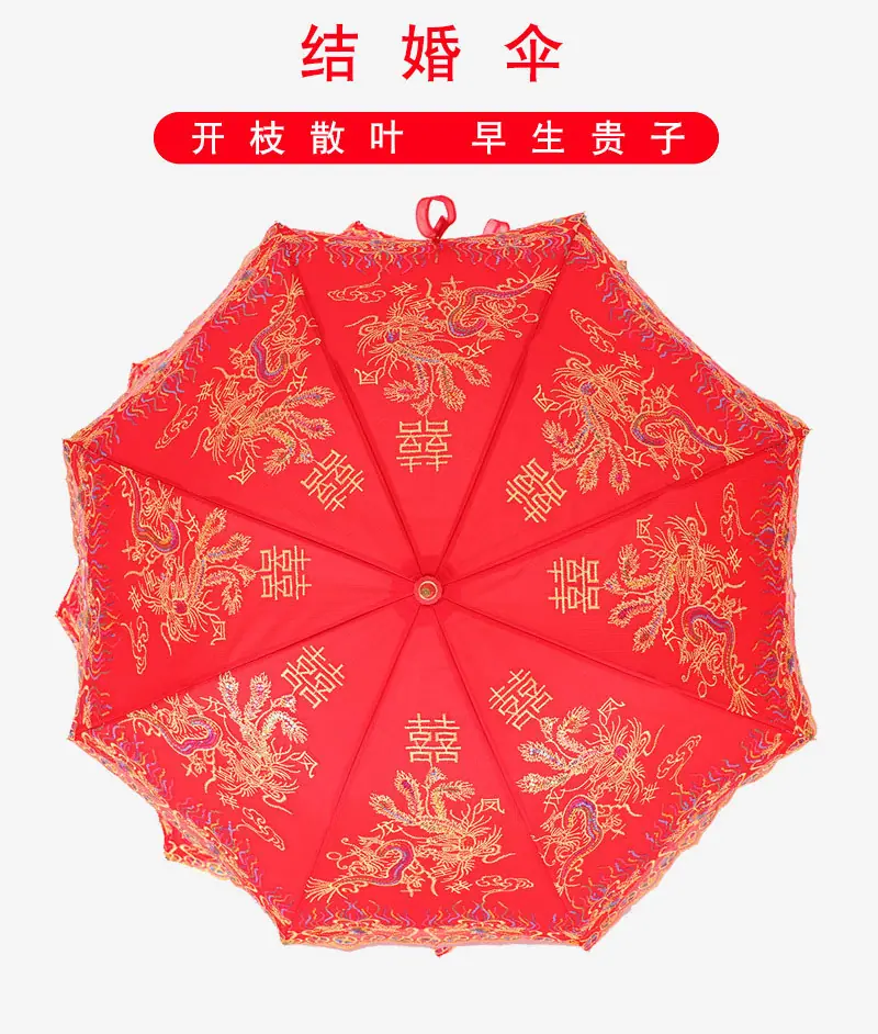 Paraguas Rojo de Boda Paraguas Nupcial Encaje Bordado Paraguas de Boda Boda China Paraguas de Boda Retro Paraguas de Boda de Mango Largo