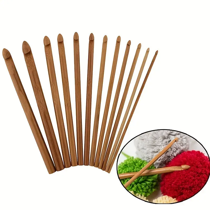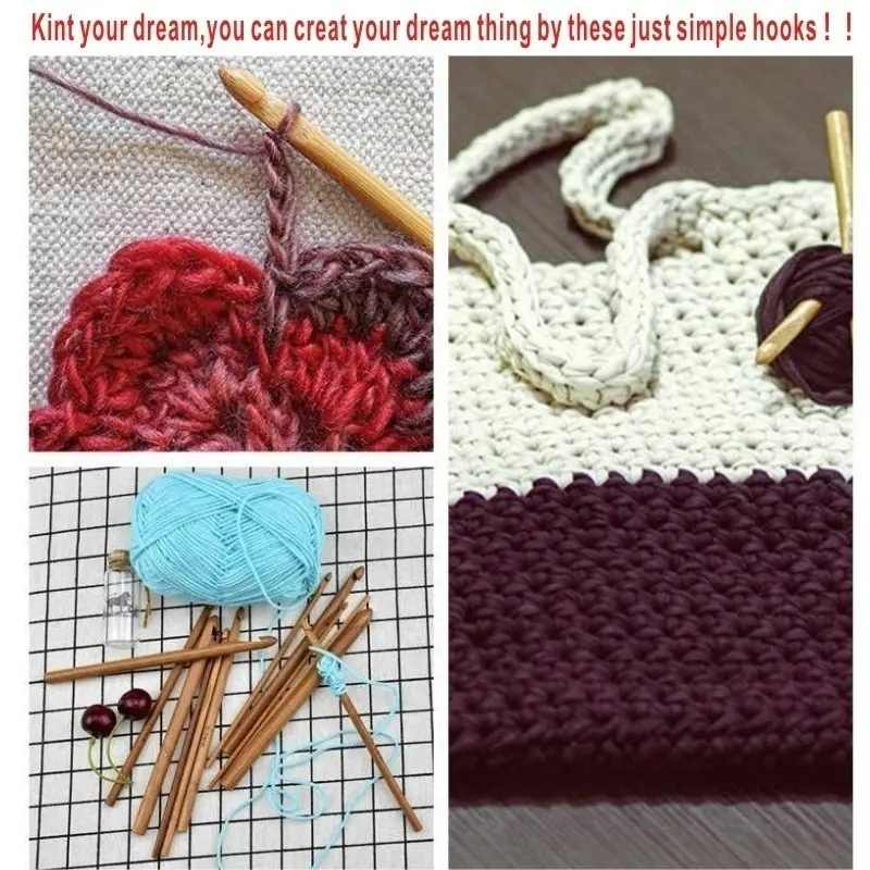 Suéter de Crochet de Bambú Carbonizado Crochet Mango de Bambú DIY Juego de Herramientas para Tejer a Mano Crochet Bambú Redondo Crochet