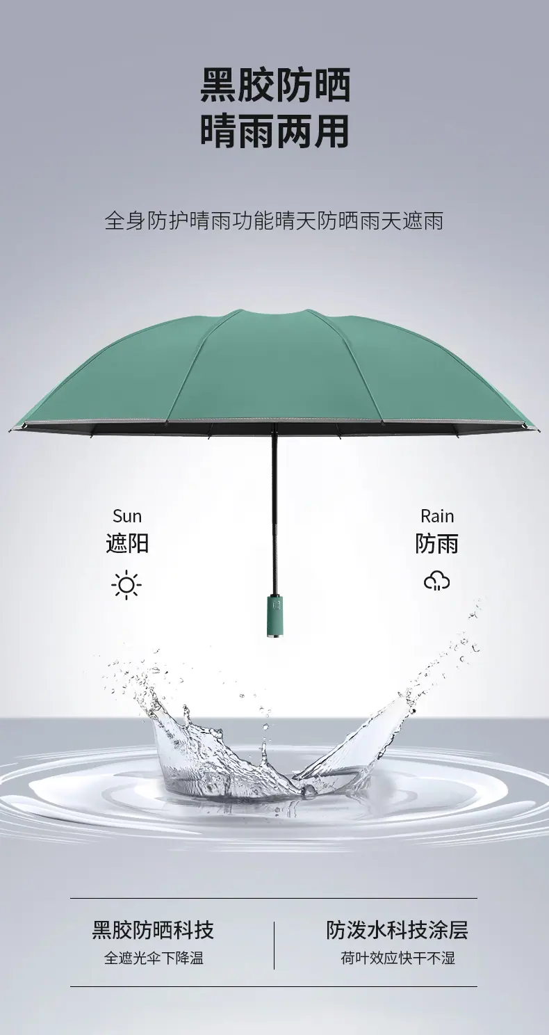 Black - used in rain or shine (automatic forward umbrella) 8 ribs