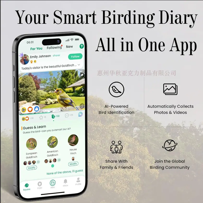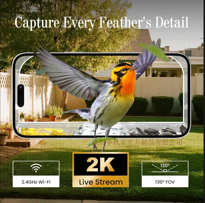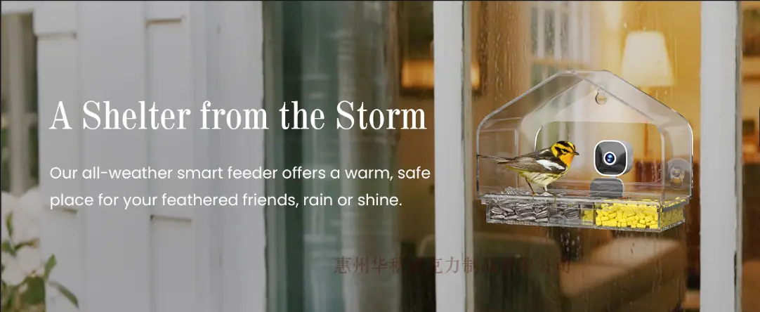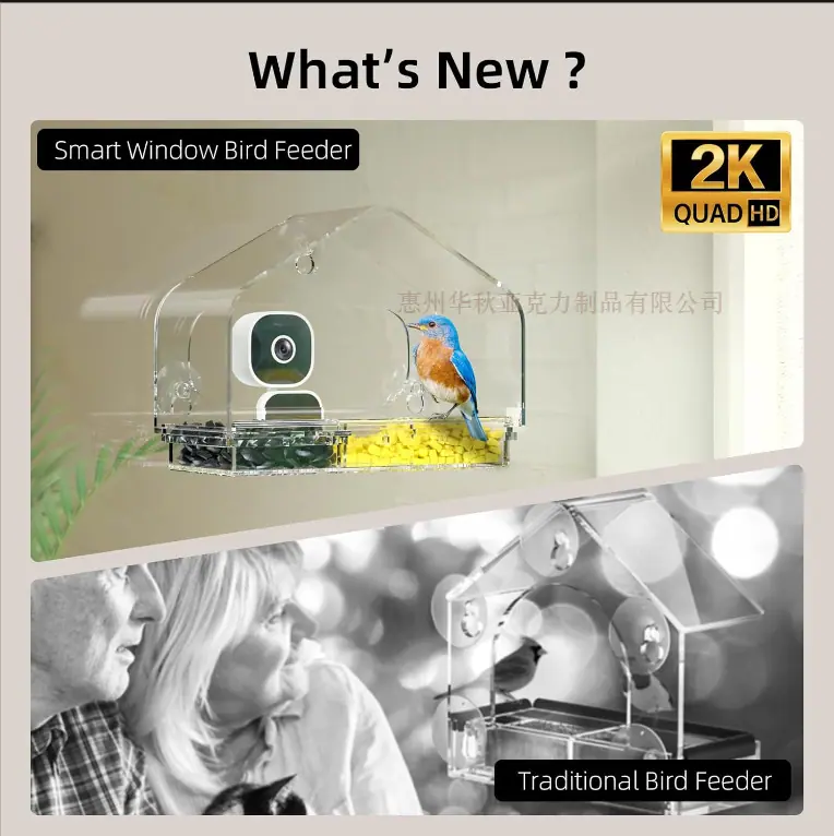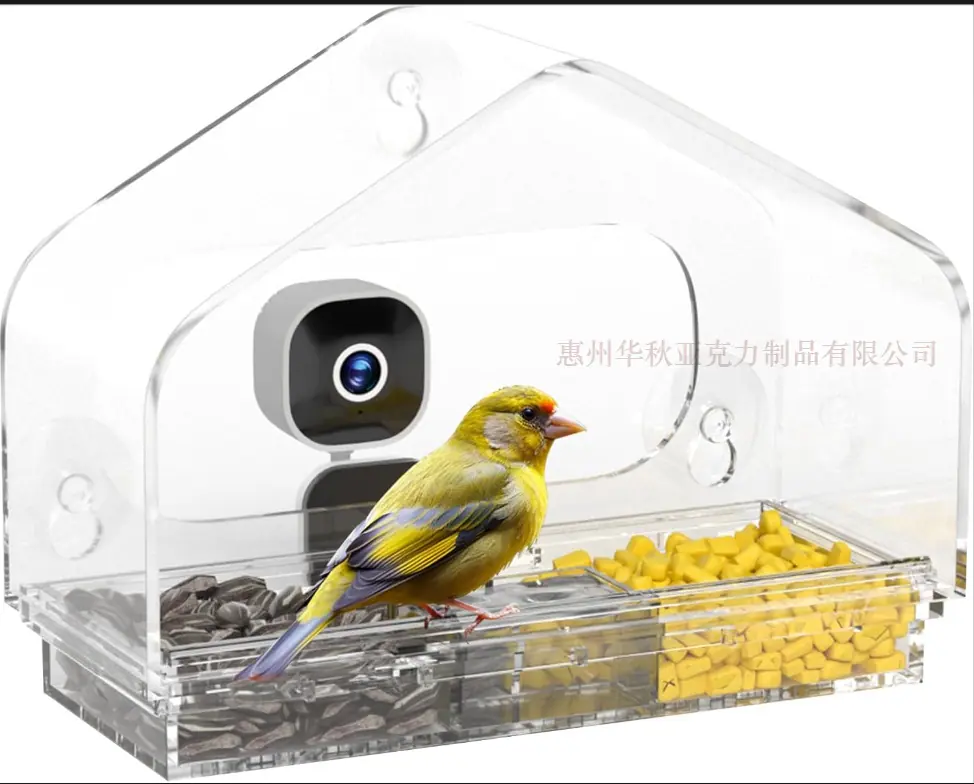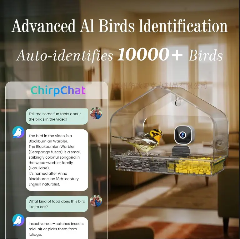 Comedero Inteligente para Pájaros con Cámara Reconocimiento de Especies por IA Comedero Casita para Pájaros de Ventana con 3 Ventosas Fuertes