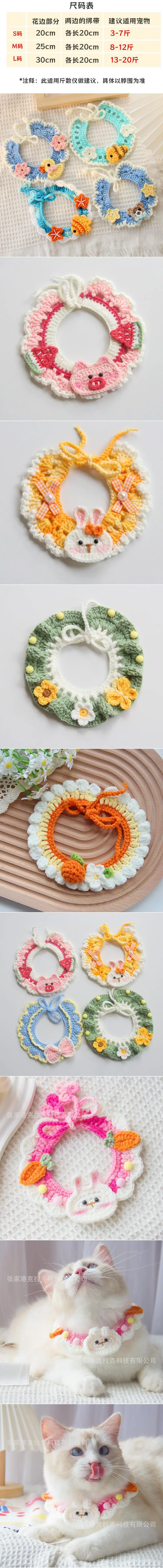 Collar para mascota tejido a mano gato lana collar decorativo tejido lindo babero para cuello de perro toalla para saliva