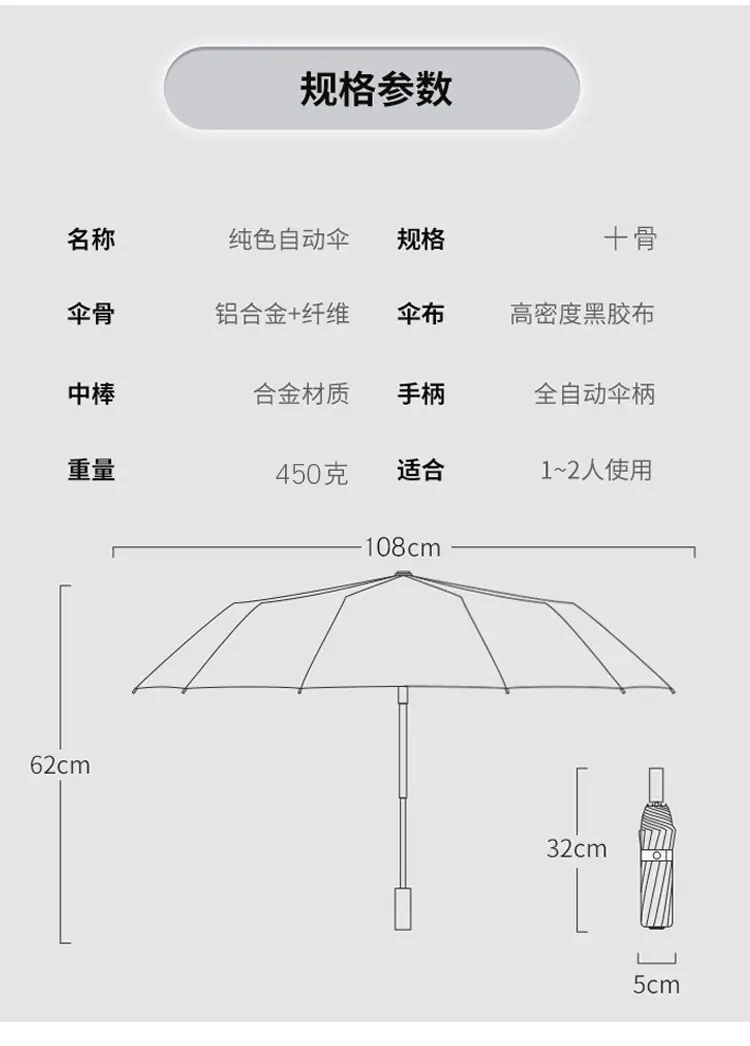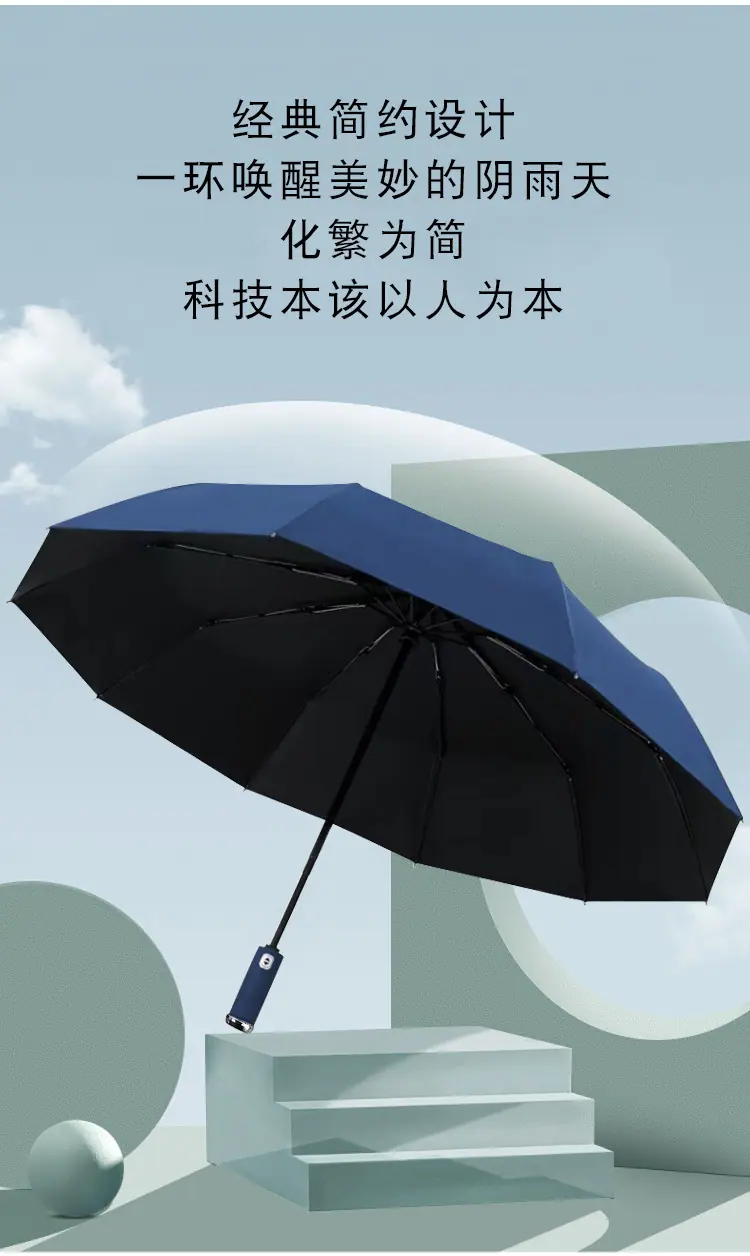 Paraguas linterna totalmente automático de 10 varillas, luz LED para viajes nocturnos, triple plegable, para sol y lluvia, pegamento negro, protección solar, regalo de empresa, paraguas publicitario