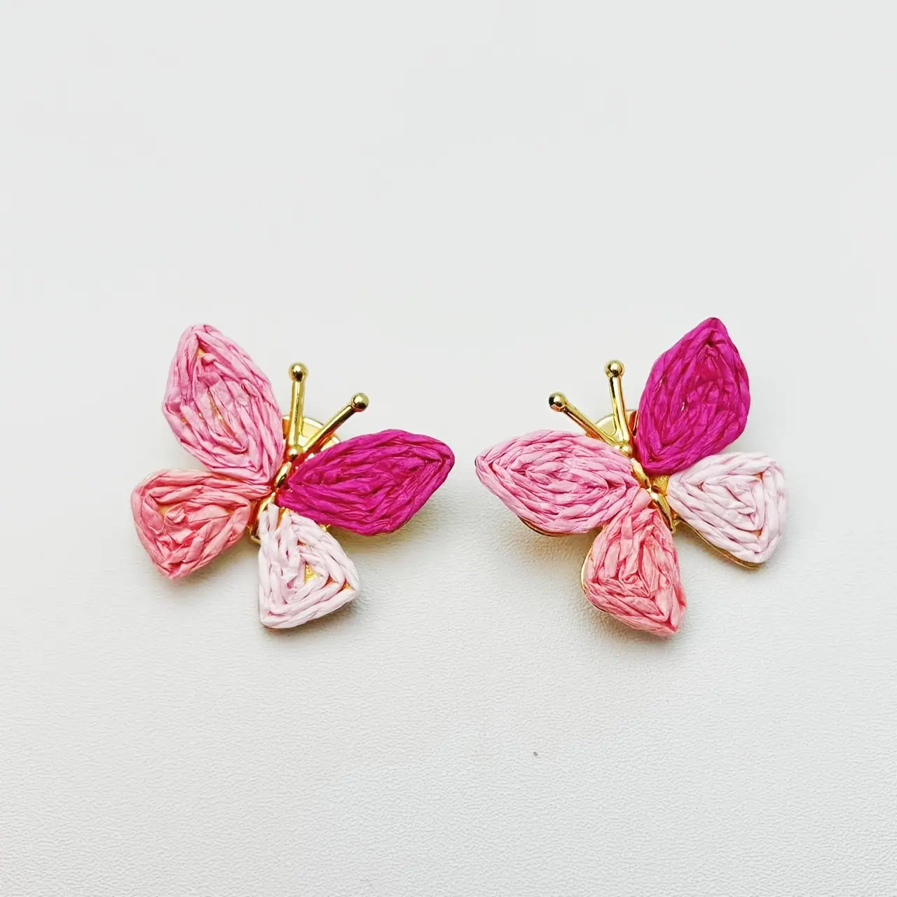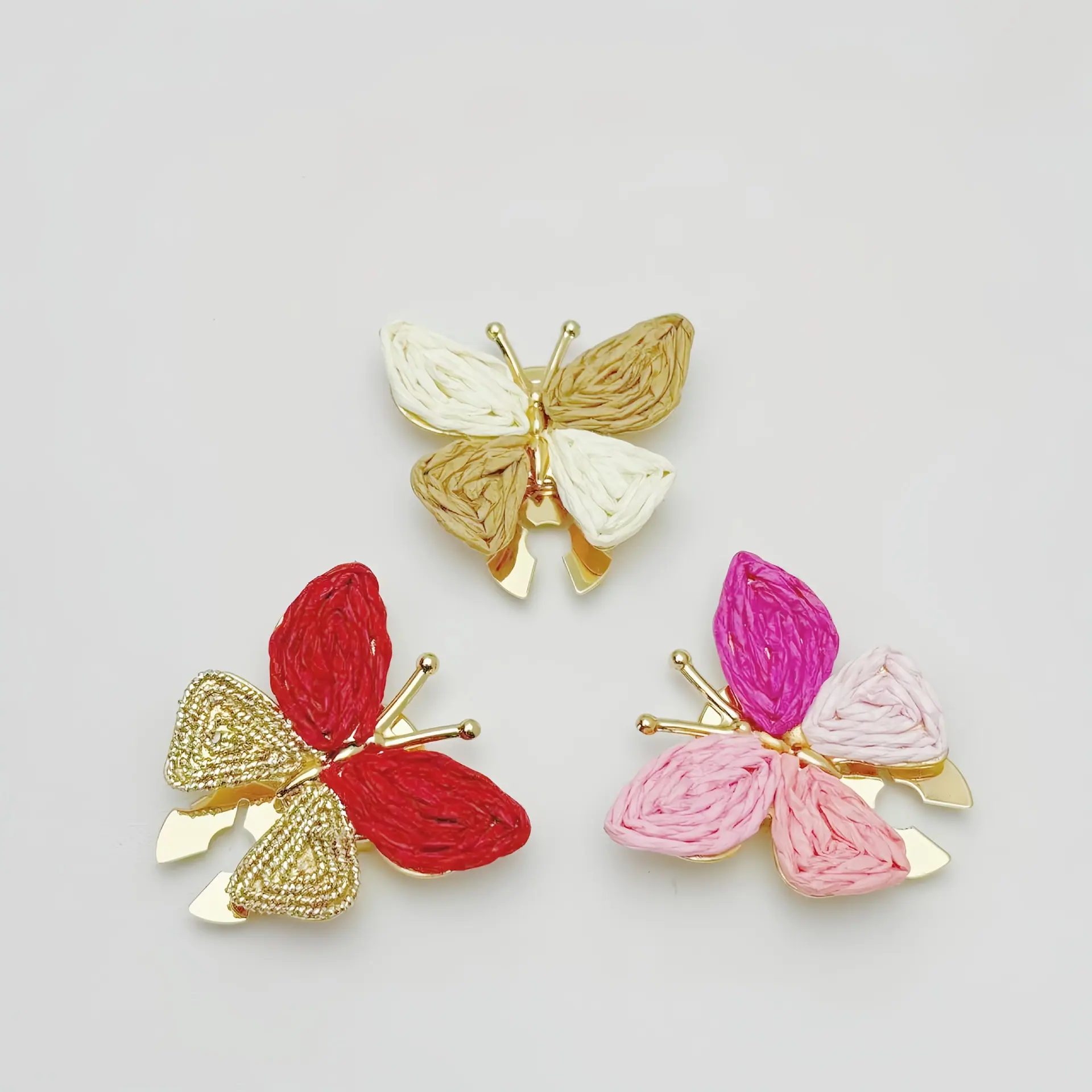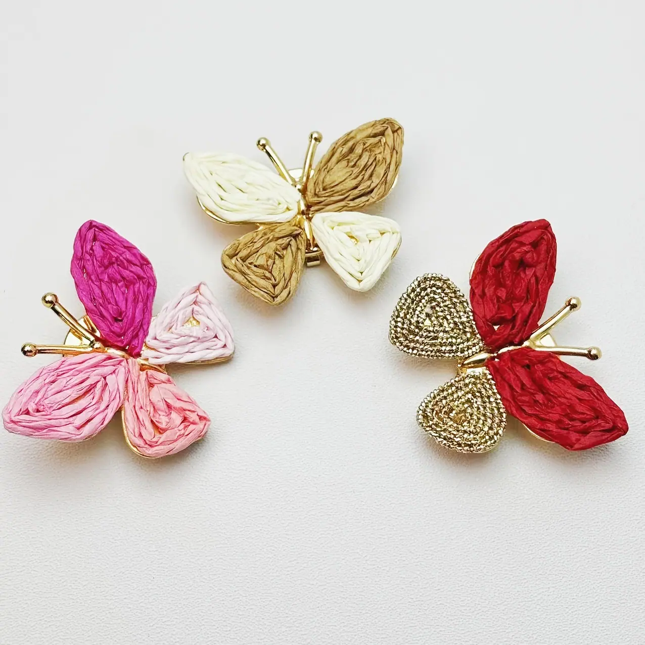 Nuevo Color Tejido Hecho a Mano Hebilla de Rafia para Mujer Fresco Botón de Mariposa Nicho Versátil Estilo Vacacional Decoración