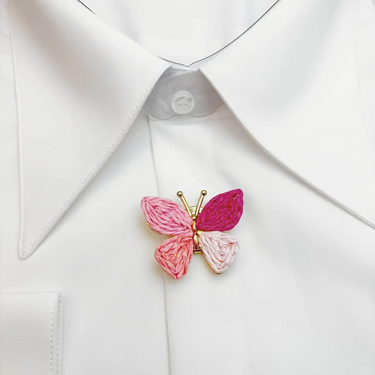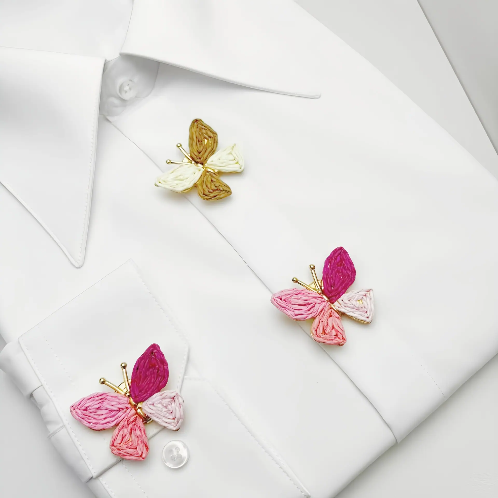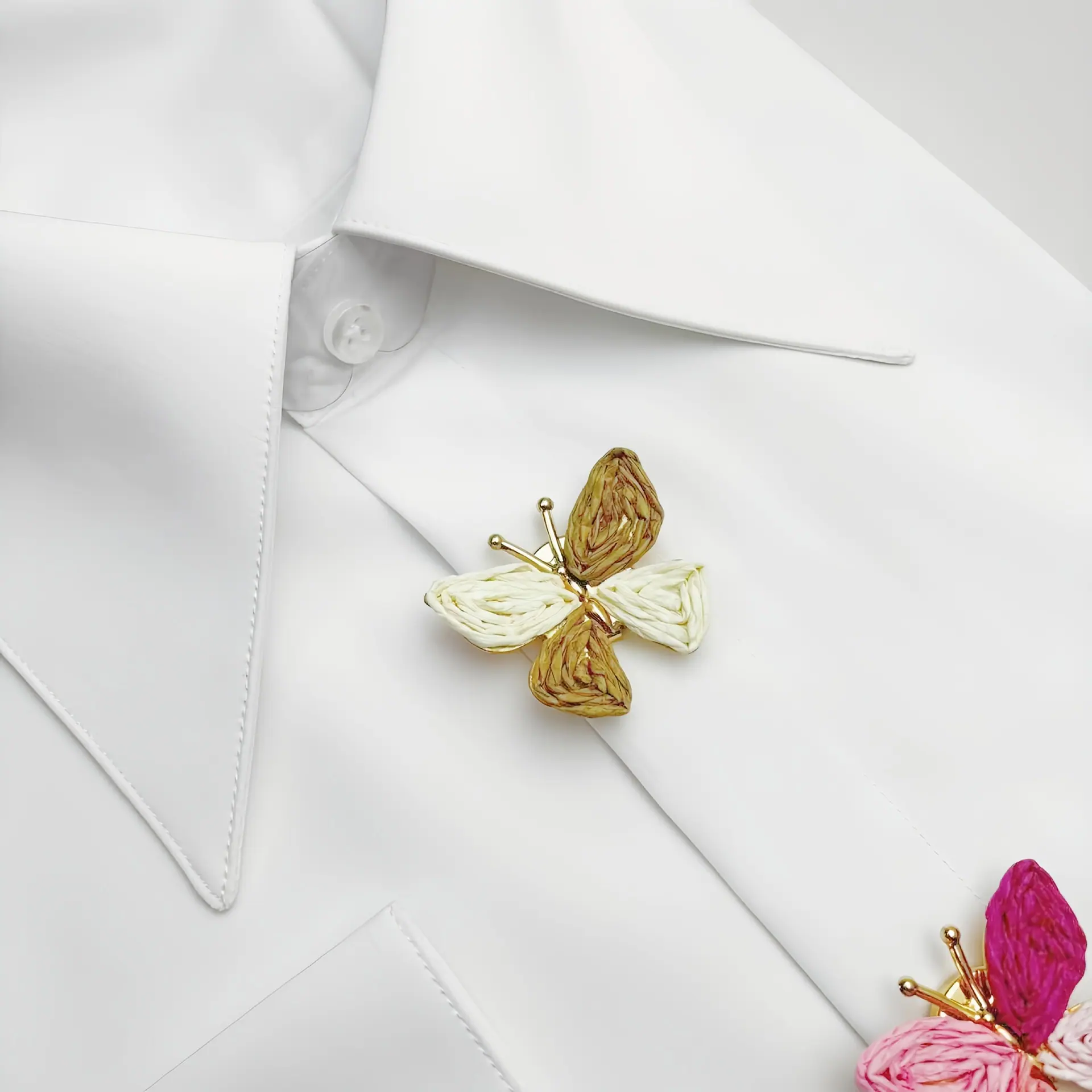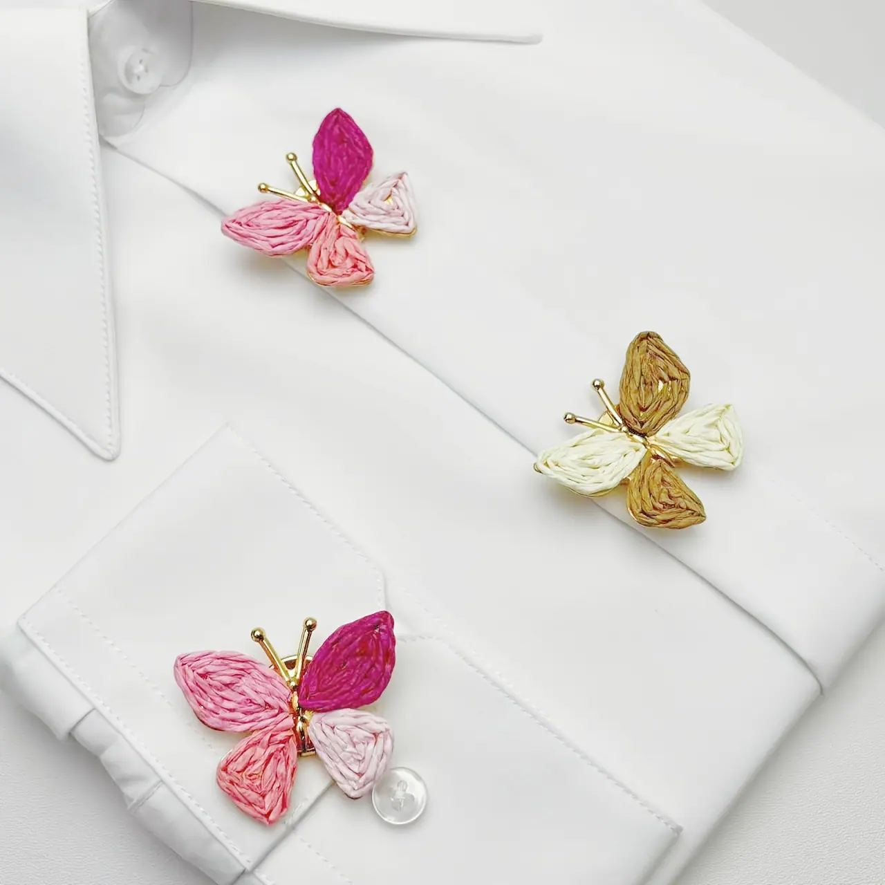 Nuevo Color Tejido Hecho a Mano Hebilla de Rafia para Mujer Fresco Botón de Mariposa Nicho Versátil Estilo Vacacional Decoración