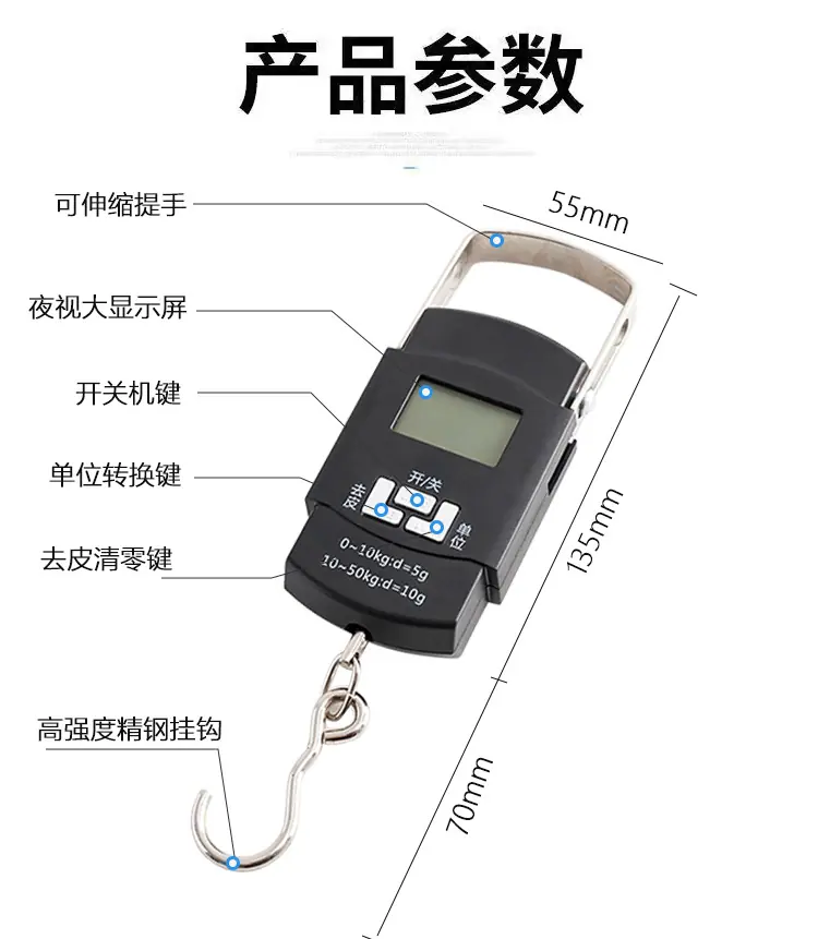 Báscula Electrónica Portátil de Alta Precisión para el Hogar Báscula de Resorte Portátil Mini Báscula para Equipaje Pesaje de Mercado Pequeña Báscula Electrónica