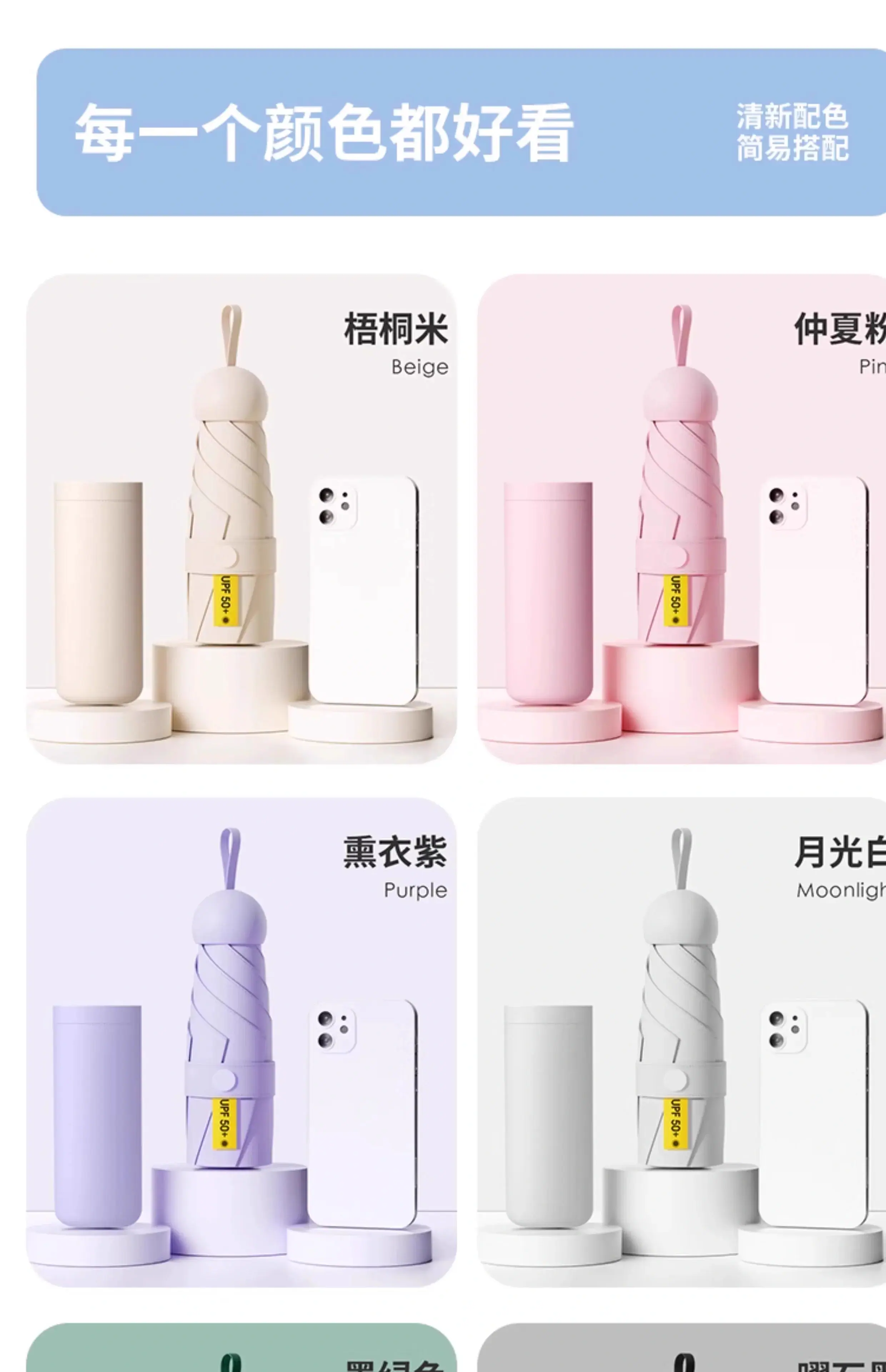 Paraguas de Sol Paraguas con Protección Solar Paraguas con Protección UV Paraguas de Doble Uso para Lluvia o Sol Paraguas Cápsula para Mujer Mini Paraguas Plegable Compacto y Portátil