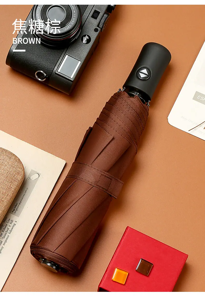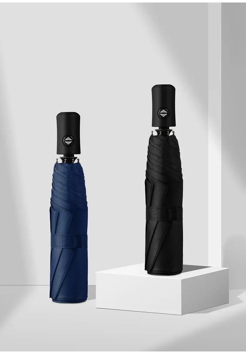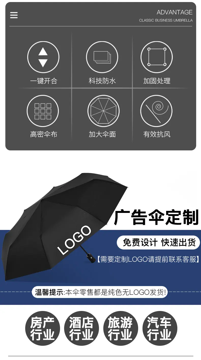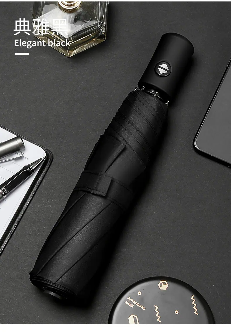 Paraguas plegable de tres pliegues totalmente automático paraguas plegable al por mayor paraguas parasol de goma negra paraguas de regalo paraguas publicitario con logo personalizado