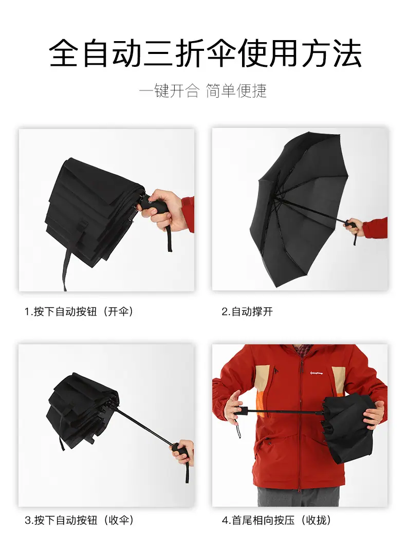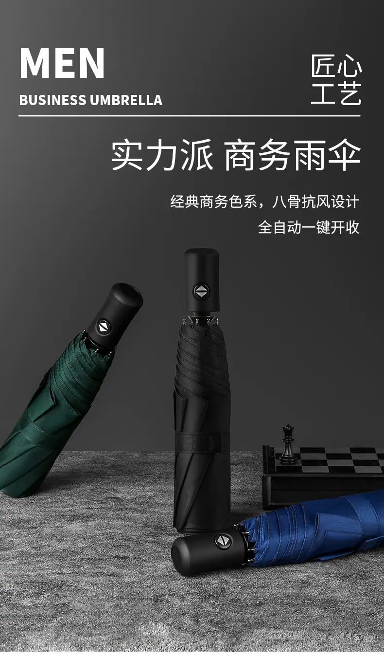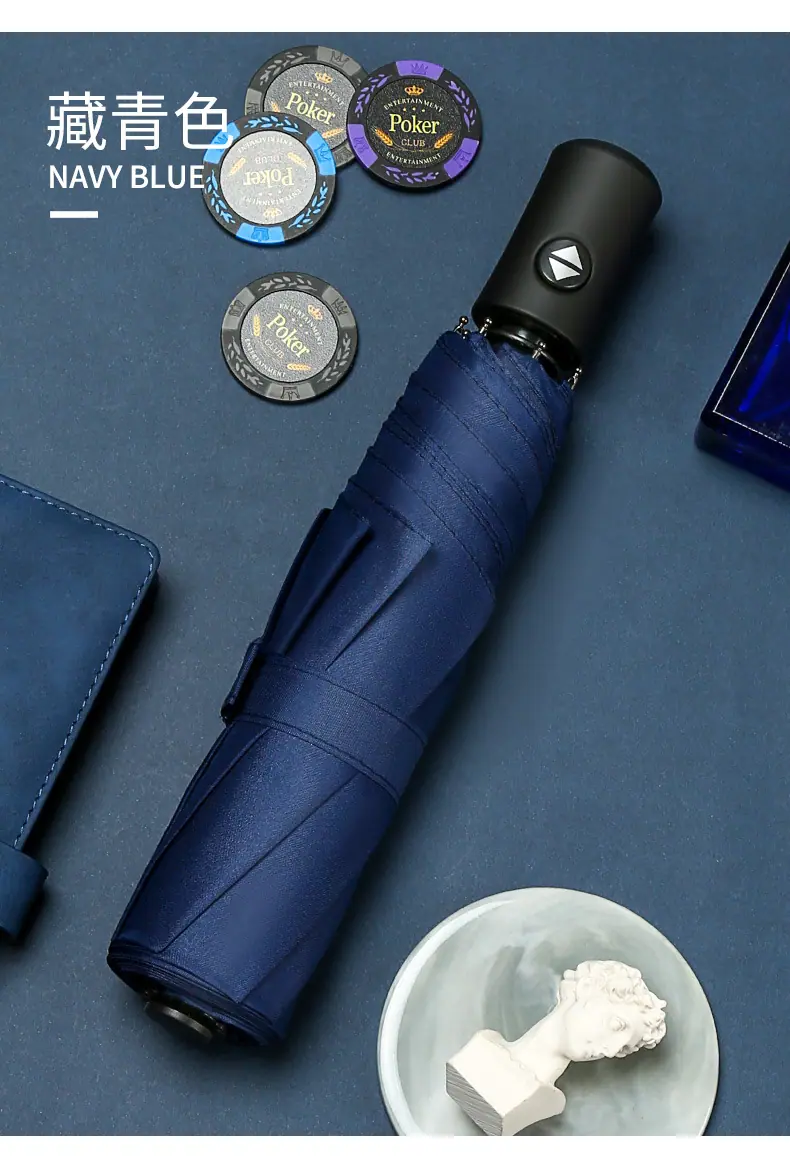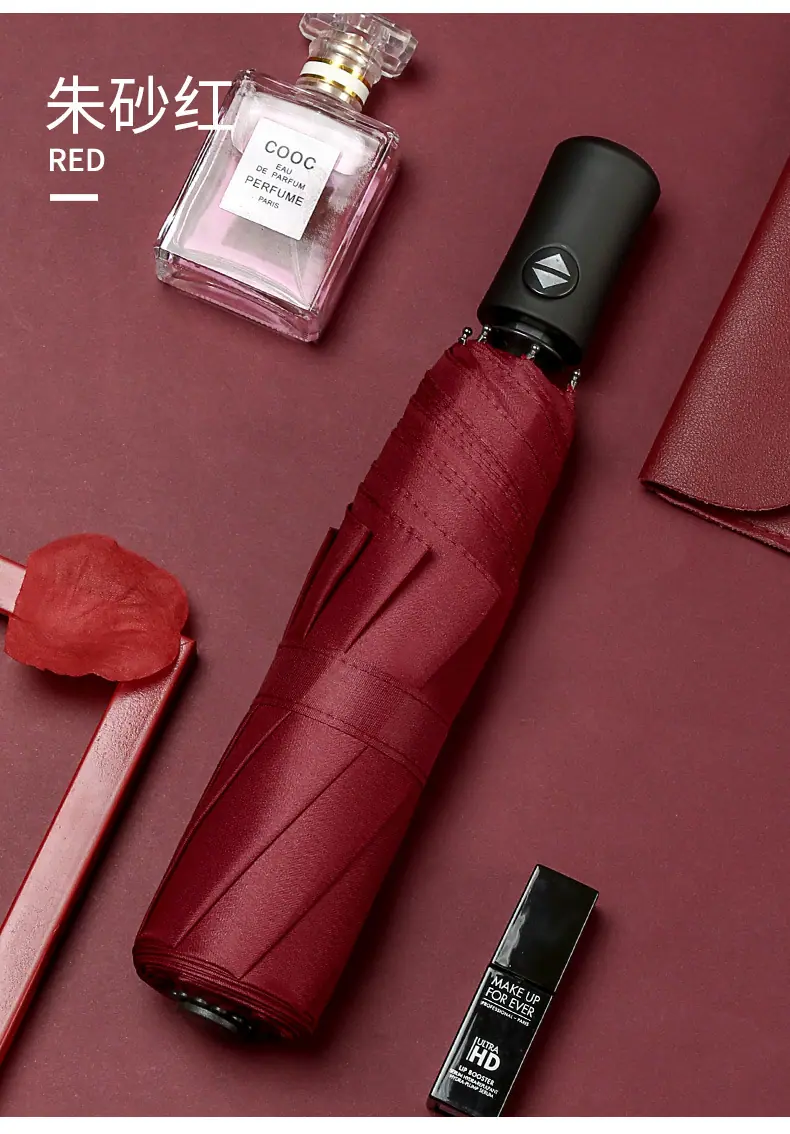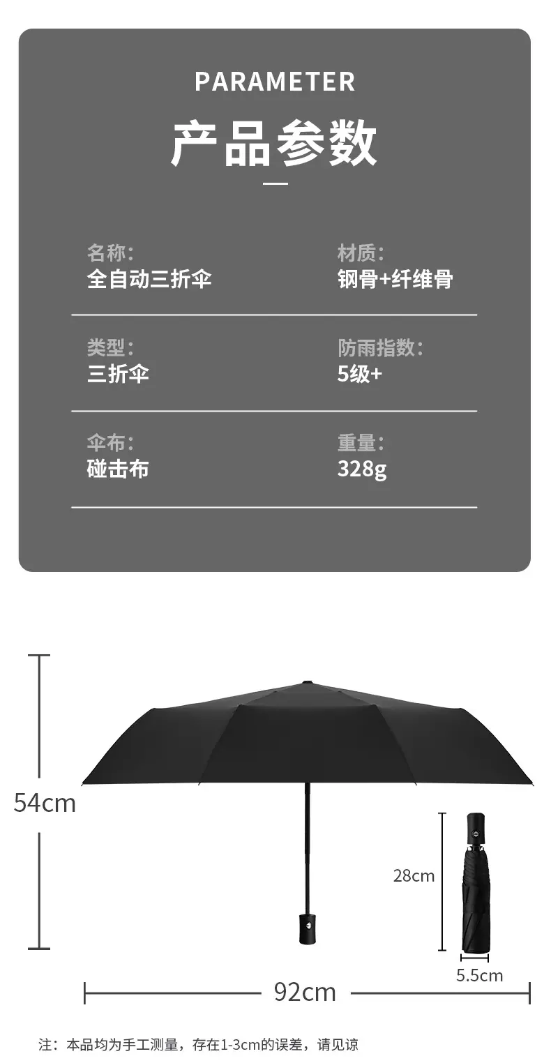 Paraguas plegable de tres pliegues totalmente automático paraguas plegable al por mayor paraguas parasol de goma negra paraguas de regalo paraguas publicitario con logo personalizado