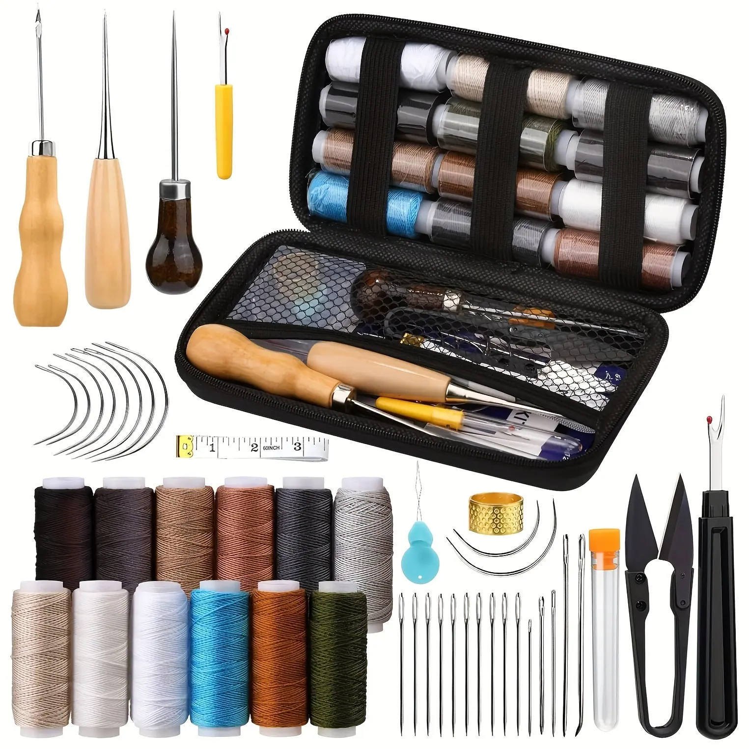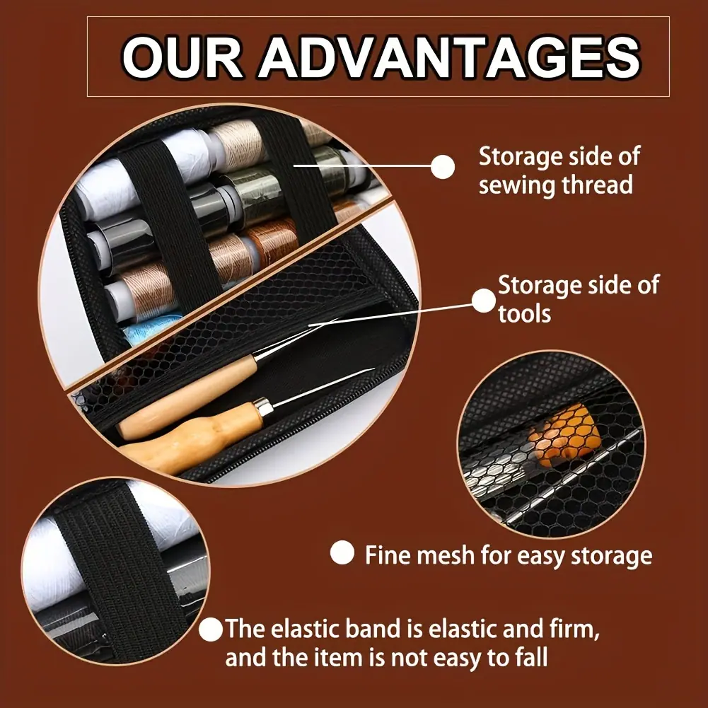 Artesanía en cuero de venta caliente transfronteriza herramientas de cuero juego de costura a mano de 29 piezas juego combinado de hilo de lona con aguja de coser DIY