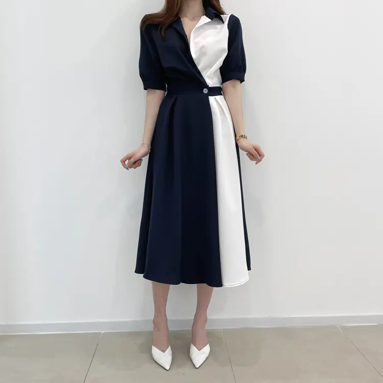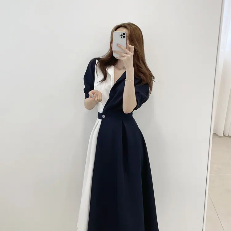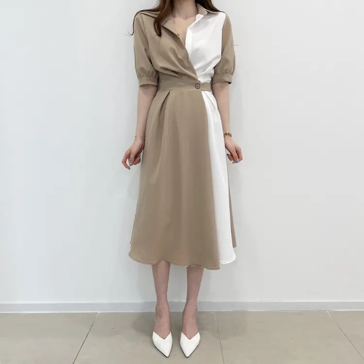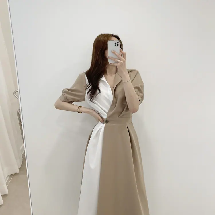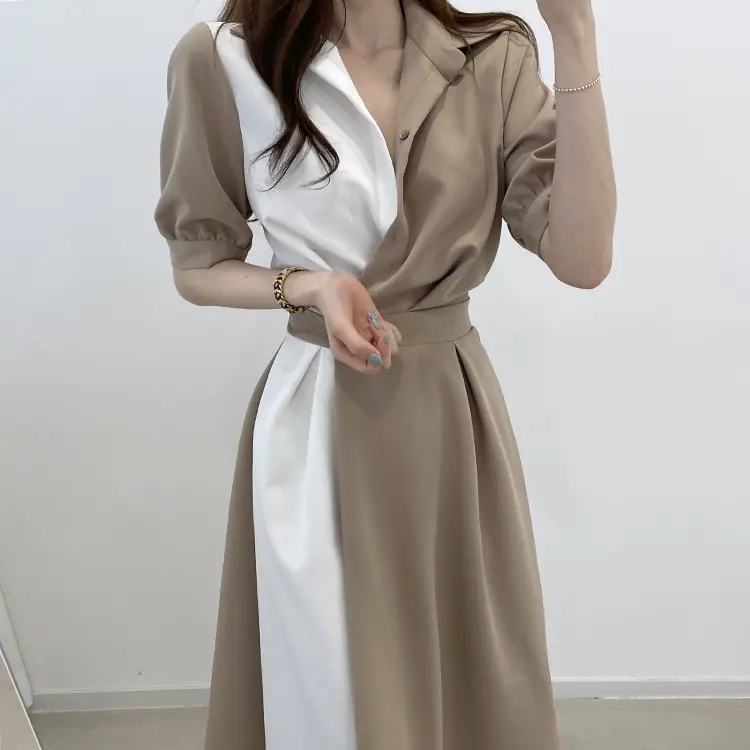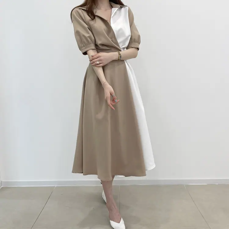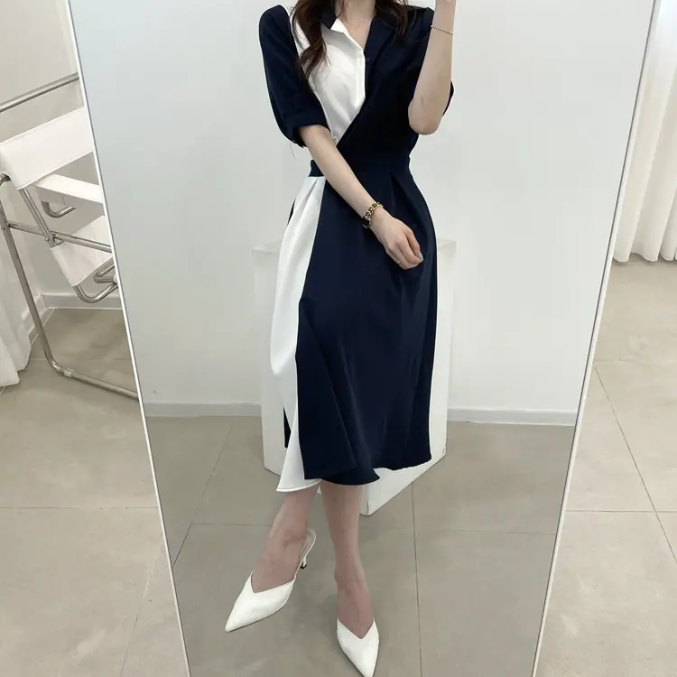 Verano Nuevo Estilo Cintura Ajustada Francés Empalmado Diseño Vestido Nicho Estilo Madurez Ligera Falda de Moda para Mujer Vestido