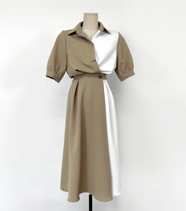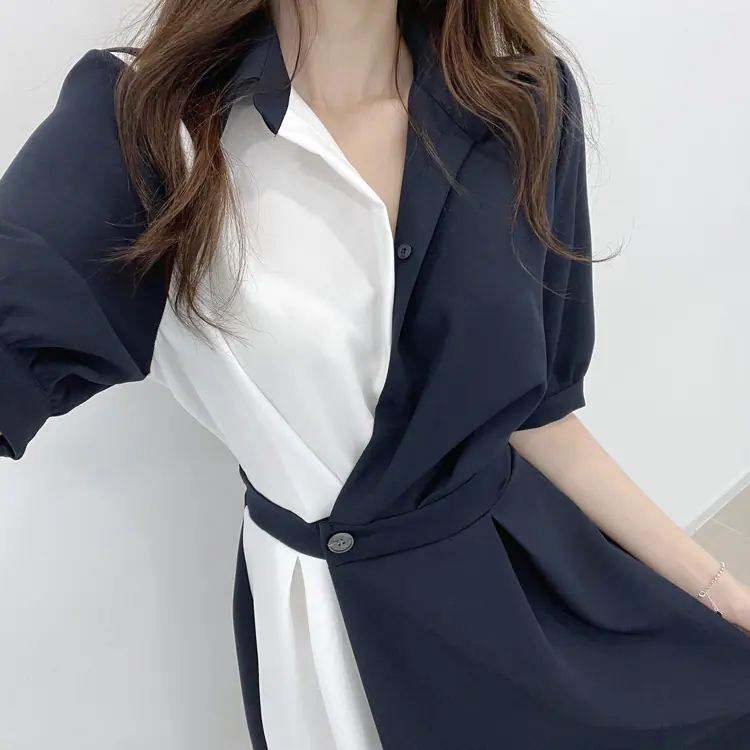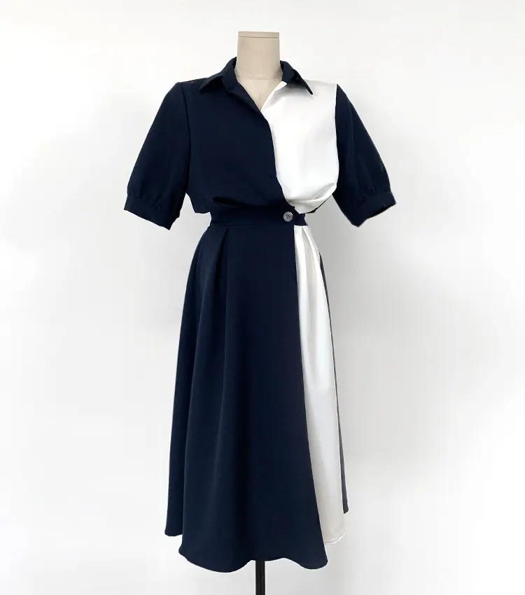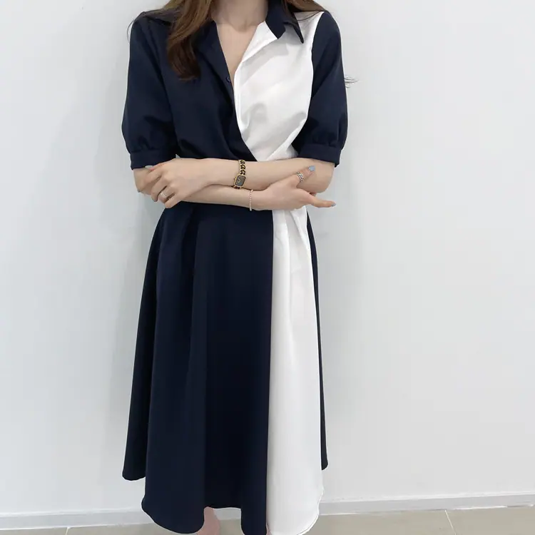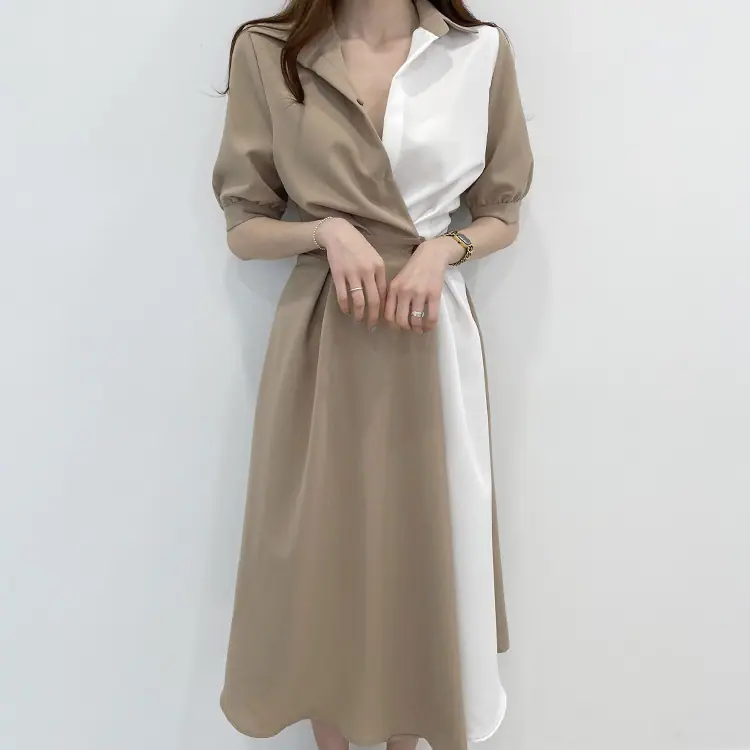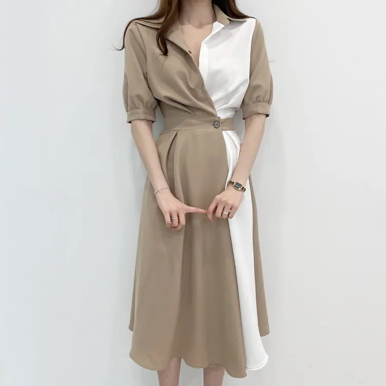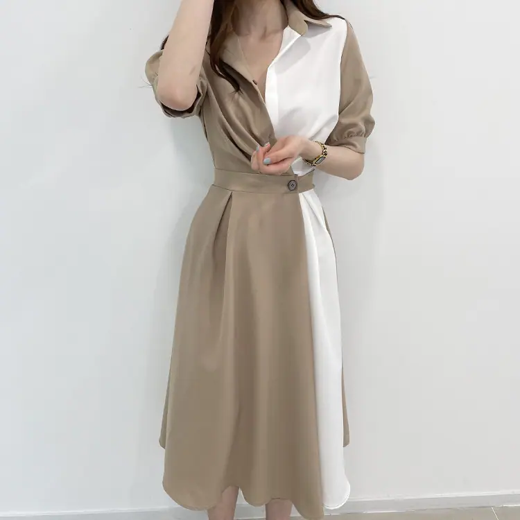 Verano Nuevo Estilo Cintura Ajustada Francés Empalmado Diseño Vestido Nicho Estilo Madurez Ligera Falda de Moda para Mujer Vestido