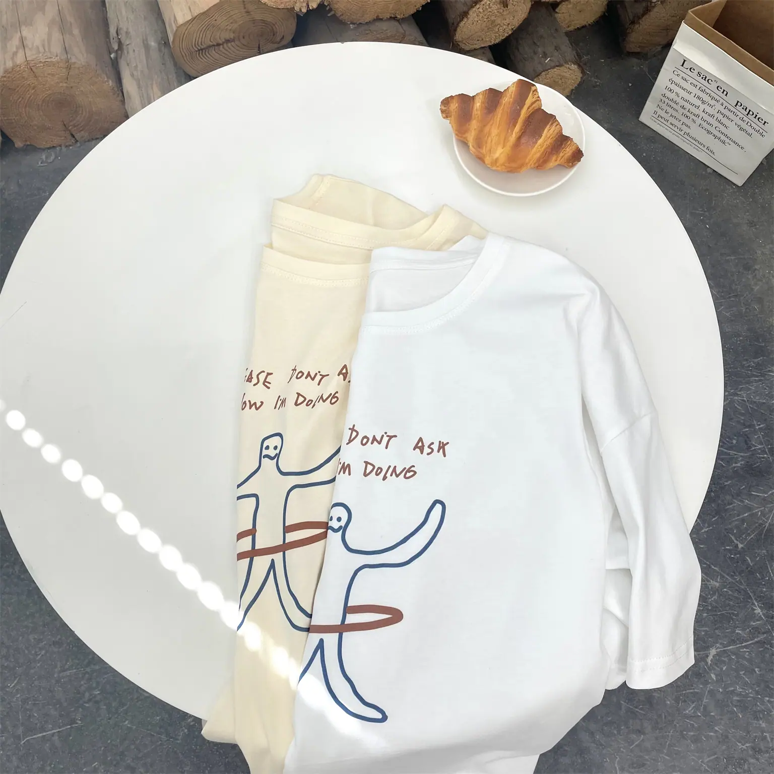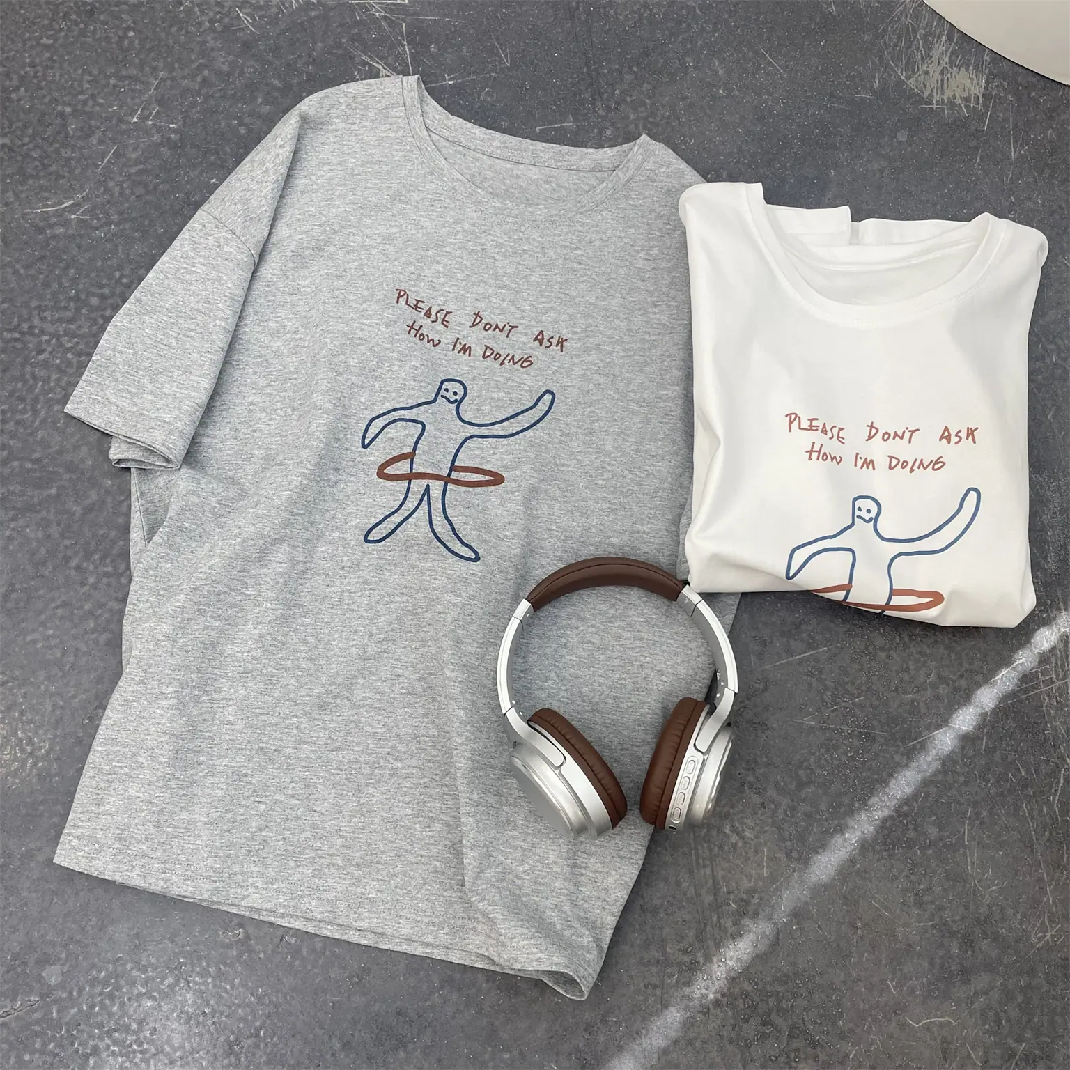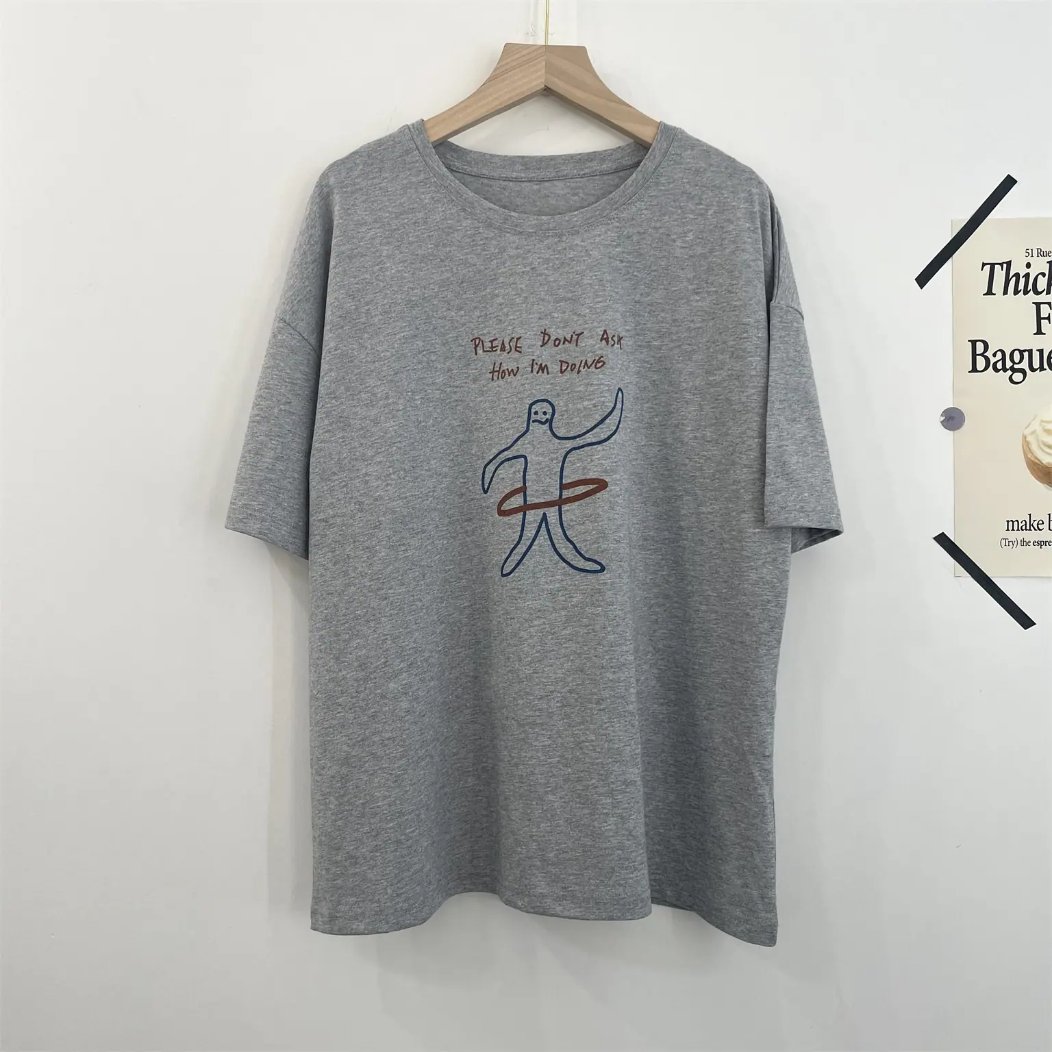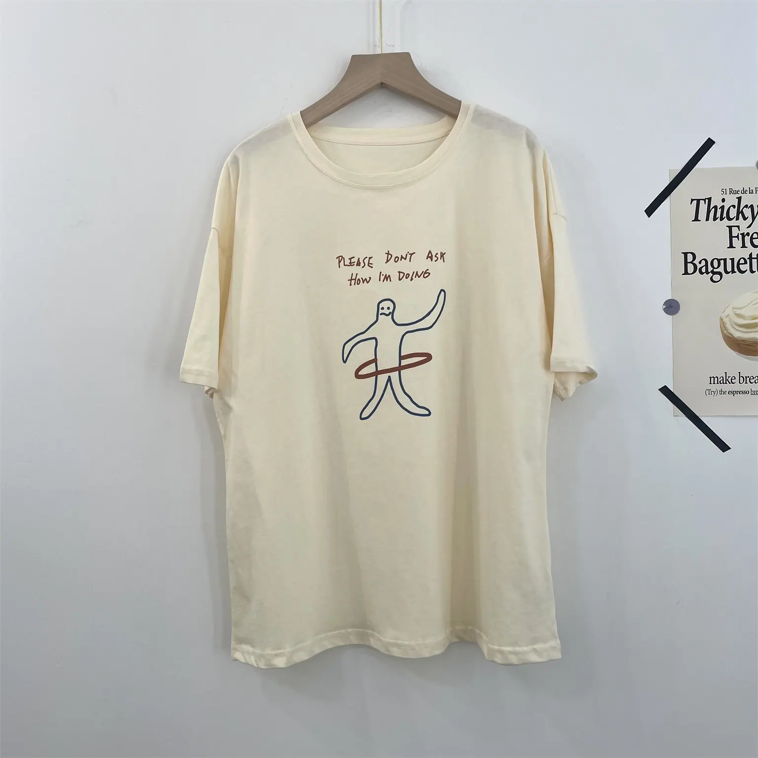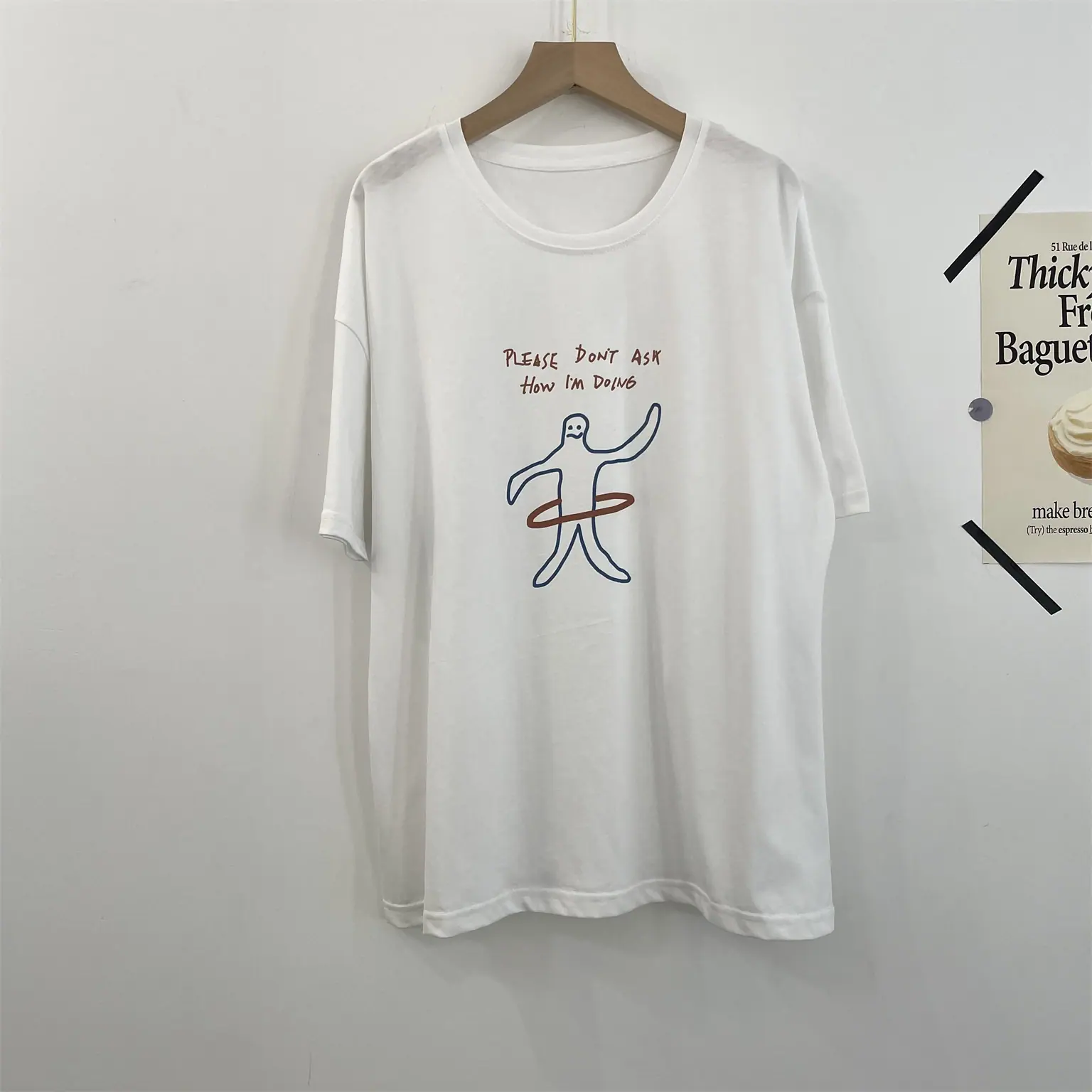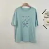 Tops casuales de estilo creativo Ins de manga corta y sencillos para mujer, verano, nueva moda, corte holgado que estiliza, camiseta de algodón puro con cuello redondo y estampado
