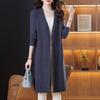 Cárdigan de Punto de Manga Larga con Cuello en V Color Borgoña para Mujer 2025 Otoño Holgado y Versátil Aspecto Adelgazante Chaqueta Suéter por Encima de la Rodilla