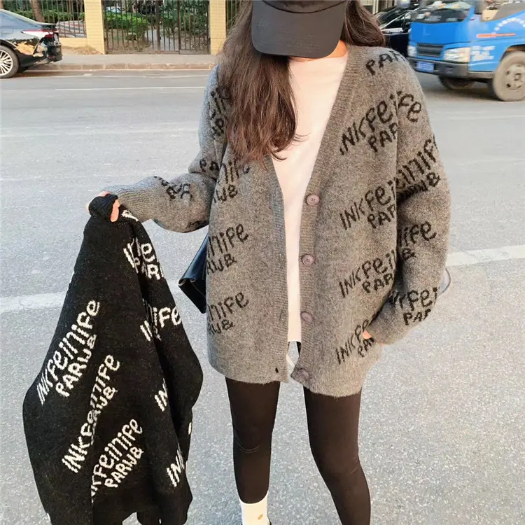 Cárdigan de punto para mujer Primavera y Otoño Nuevo 2025 Estilo Coreano de Moda Suelto Cuello en V Manga Larga Abrigo Suéter