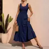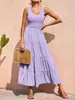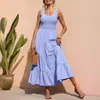 Falda Larga para Mujer Europea y Americana de Amazon ins Transfronteriza Sin Mangas con Tirantes Vestido Plisado