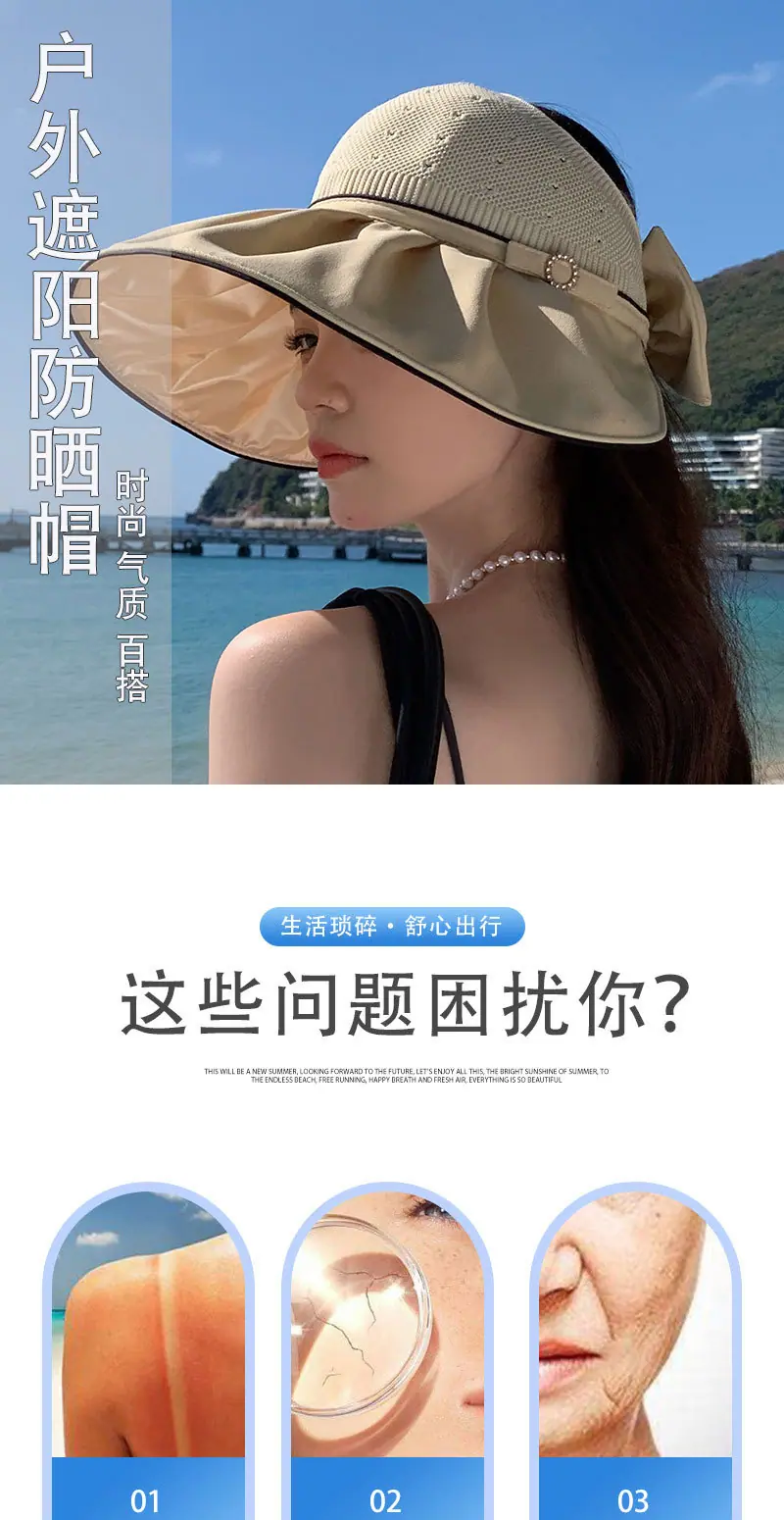 Sombrero para el sol nuevo para mujer verano nuevo estilo coreano casual sombrero para el sol tejido transpirable sombrero para el sol copa vacía sombrero de pescador