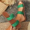 Compra Sandalias planas de talla grande transfronterizas para mujer 2025 Verano Nuevo Tejido simple para exteriores Playa Sandalias Pantuflas al por mayor en Joom.pro