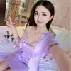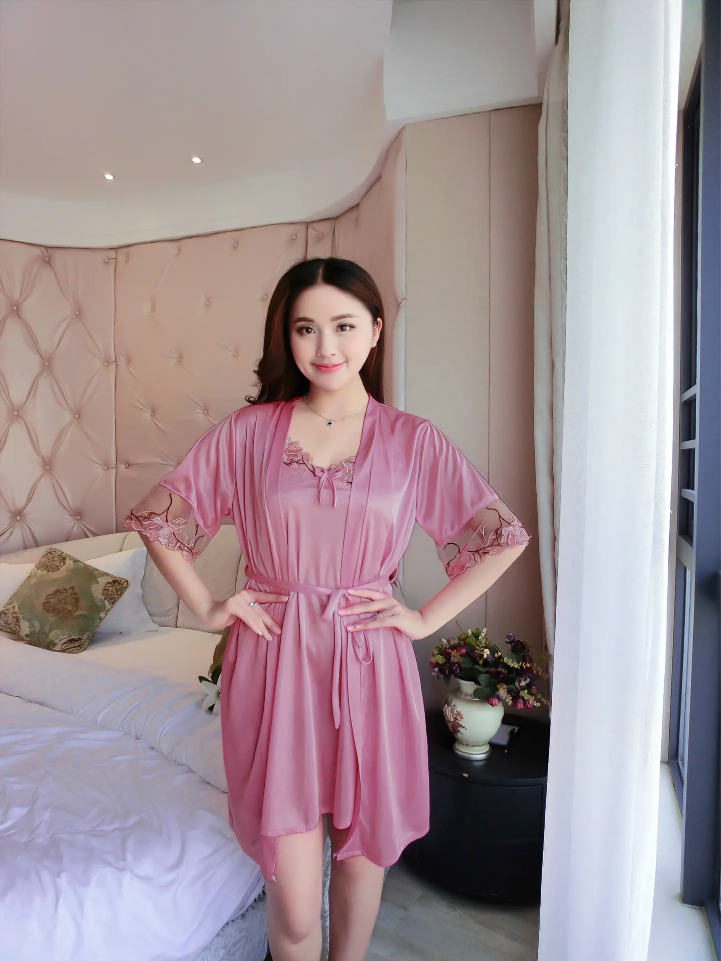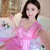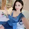 Pijama Sexy Nuevo Mujer Verano Camisón de Seda de Hielo Conjunto de Dos Piezas Encaje Sexy Seda Fina Verano Primavera Conjunto para Estar en Casa
