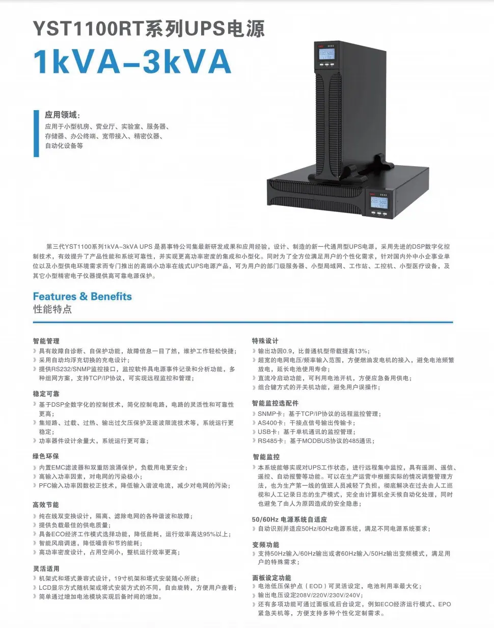 Easun Power UPS YST1103HRT Montaje en rack 3KVA Centro de datos Estabilización de voltaje Fuente de alimentación de respaldo YST1103SRT