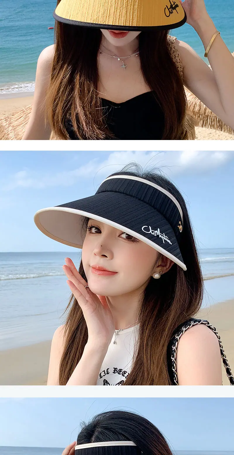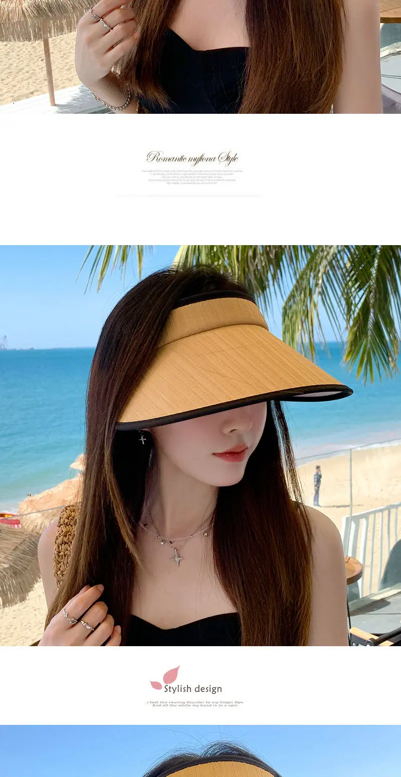 Sombrero de copa vacío a rayas de verano nuevo 2024 para niños, para uso doméstico, viajes al aire libre, sombrero para el sol de moda que combina con todo