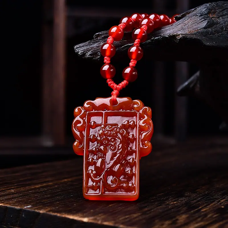 【Nombre del bebé】Colgante Ábaco Pixiu de Ágata Roja Natural