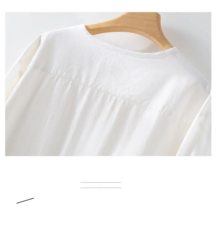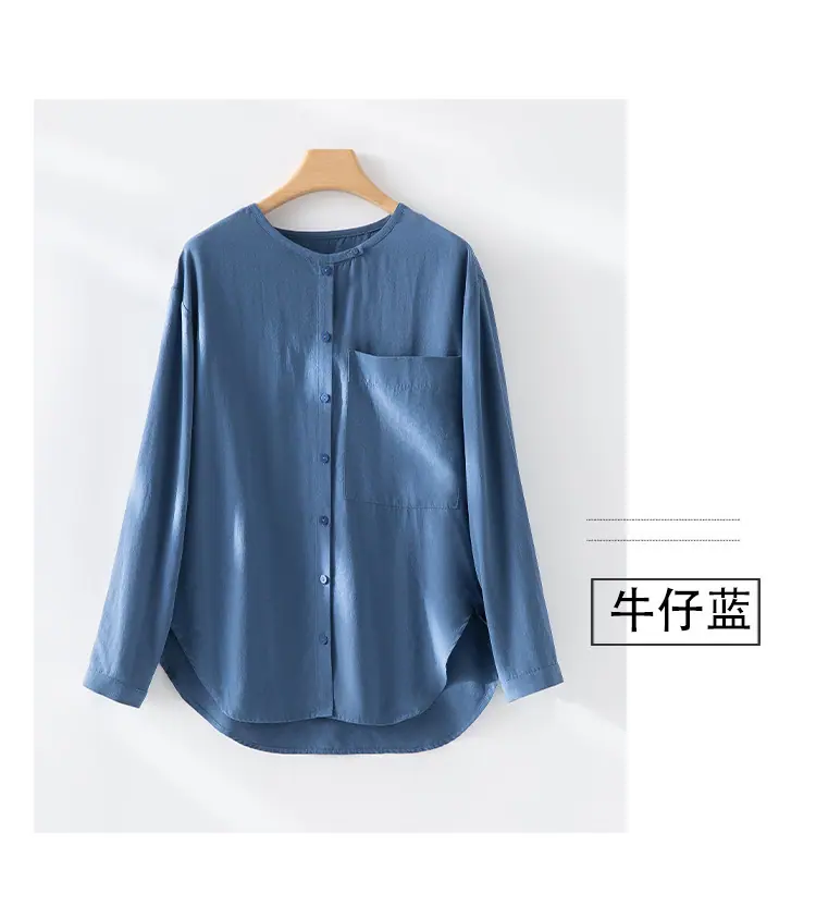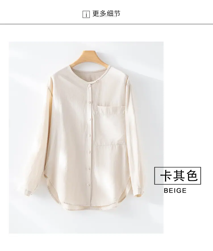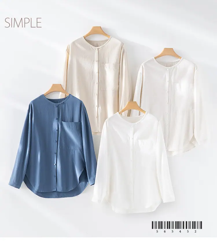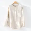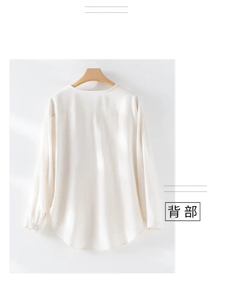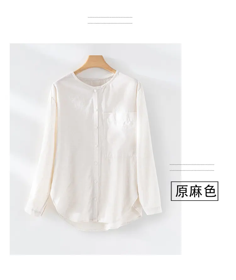 2025 Otoño Nuevo Lino Temperamento Cuello Redondo Manga Larga Camisa Simple Moda Top Holgado Blusa Versátil Casual