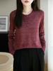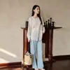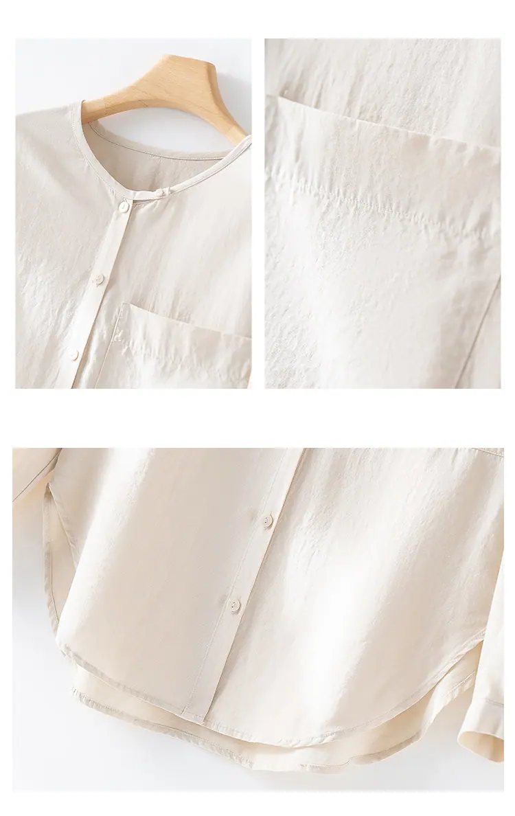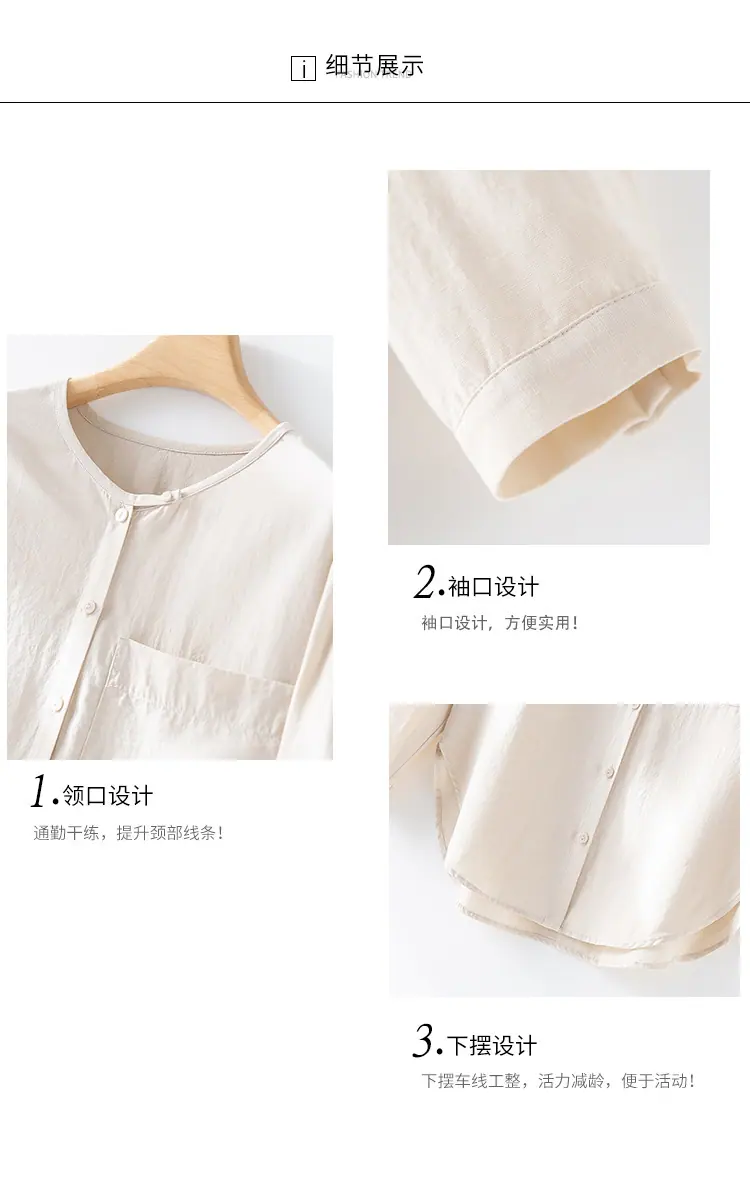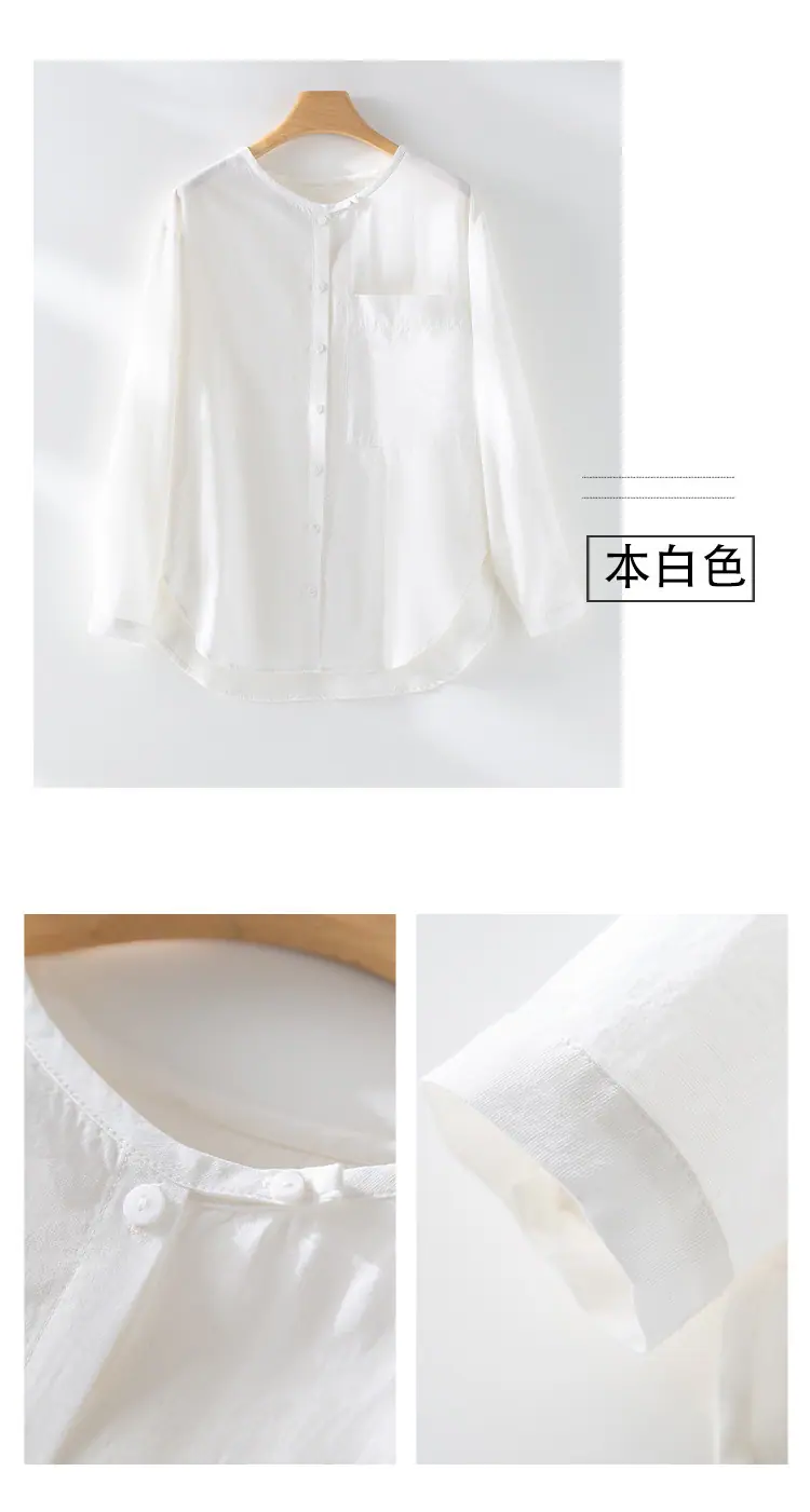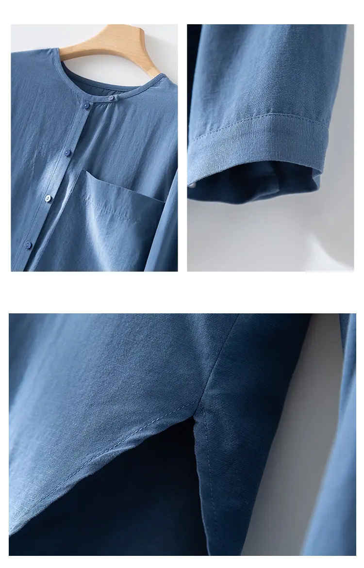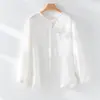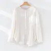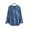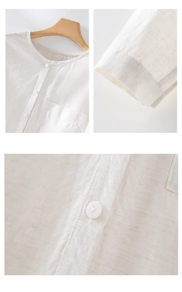 2025 Otoño Nuevo Lino Temperamento Cuello Redondo Manga Larga Camisa Simple Moda Top Holgado Blusa Versátil Casual