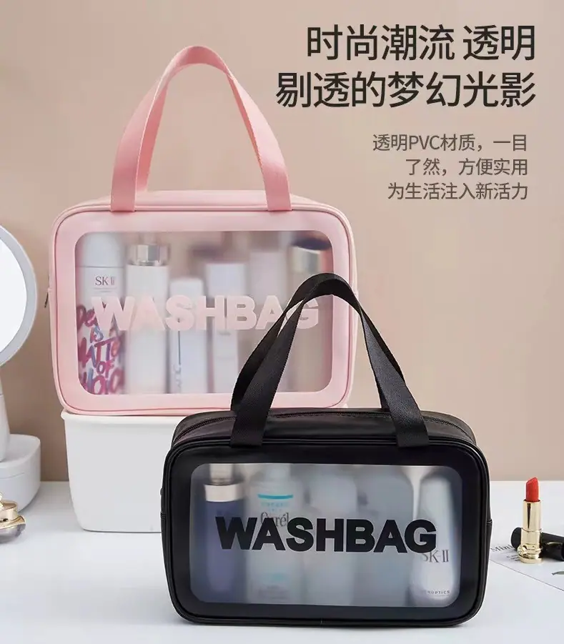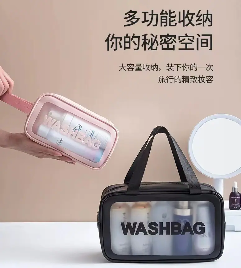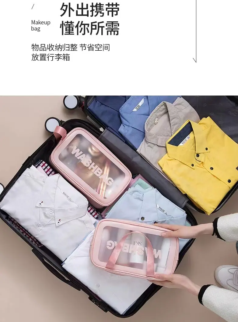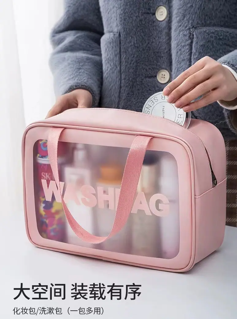Nuevo neceser de PU esmerilado impermeable, bolsa de almacenamiento simple portátil, gran capacidad, bolsa para natación, neceser transparente para niñas