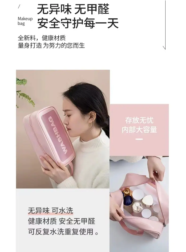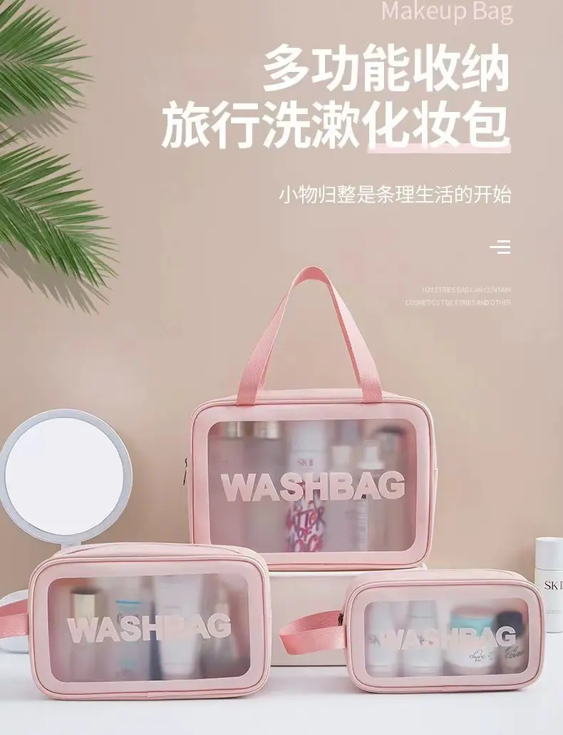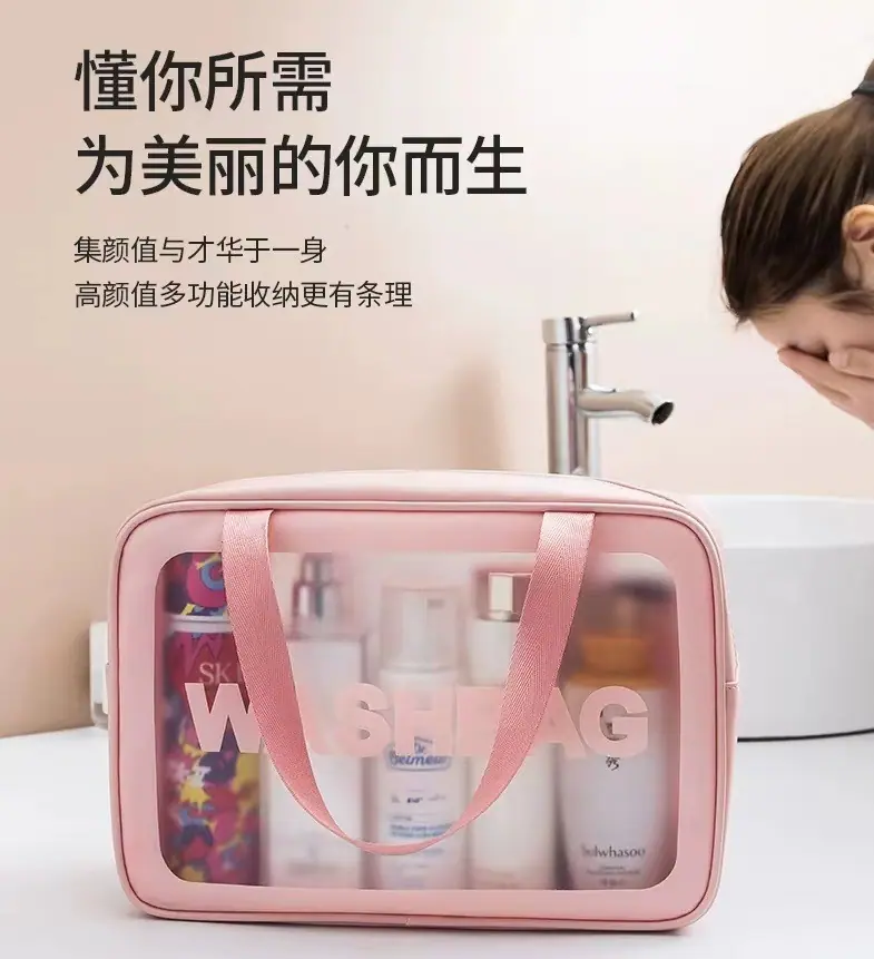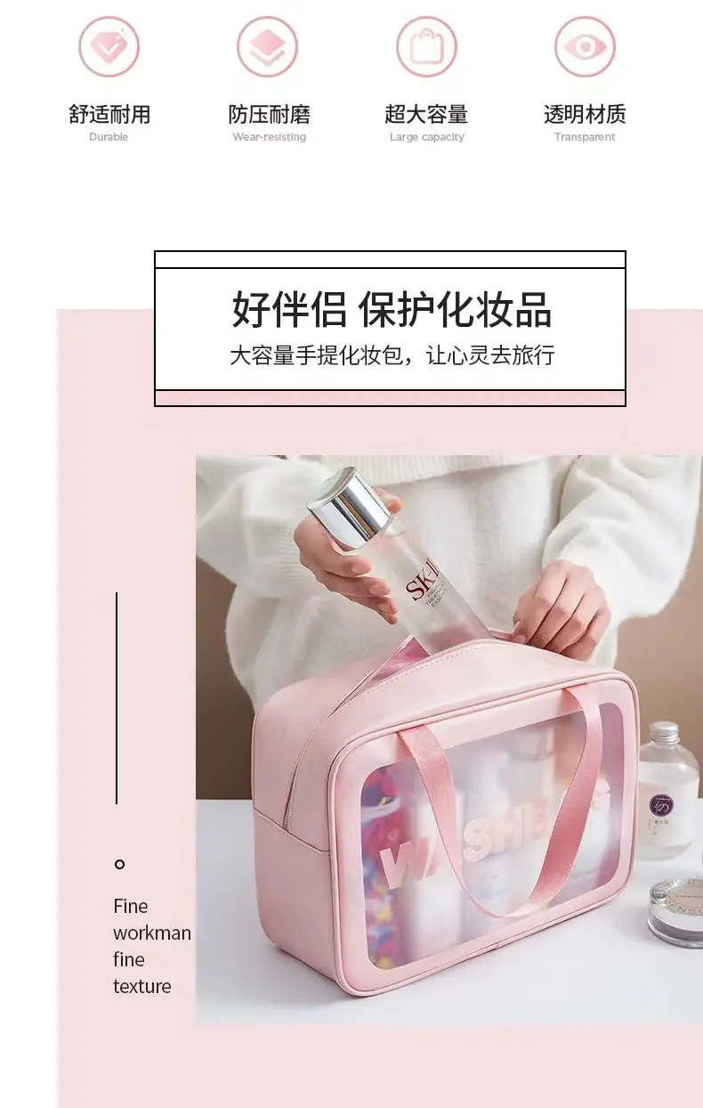 Nuevo neceser de PU esmerilado impermeable, bolsa de almacenamiento simple portátil, gran capacidad, bolsa para natación, neceser transparente para niñas