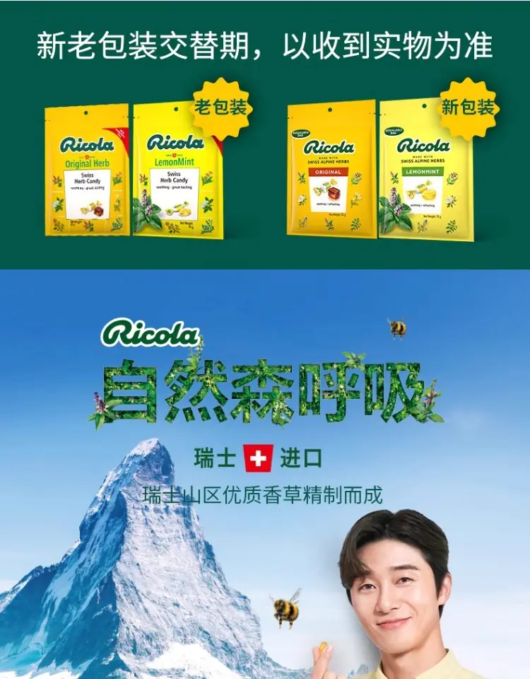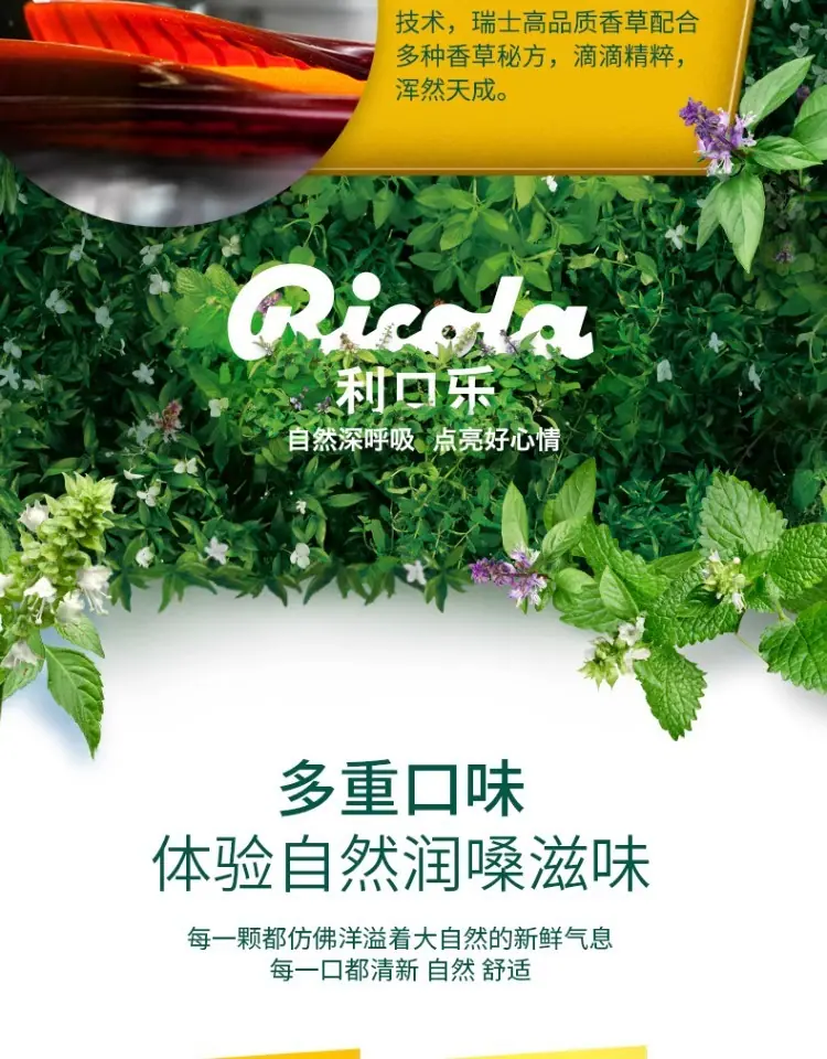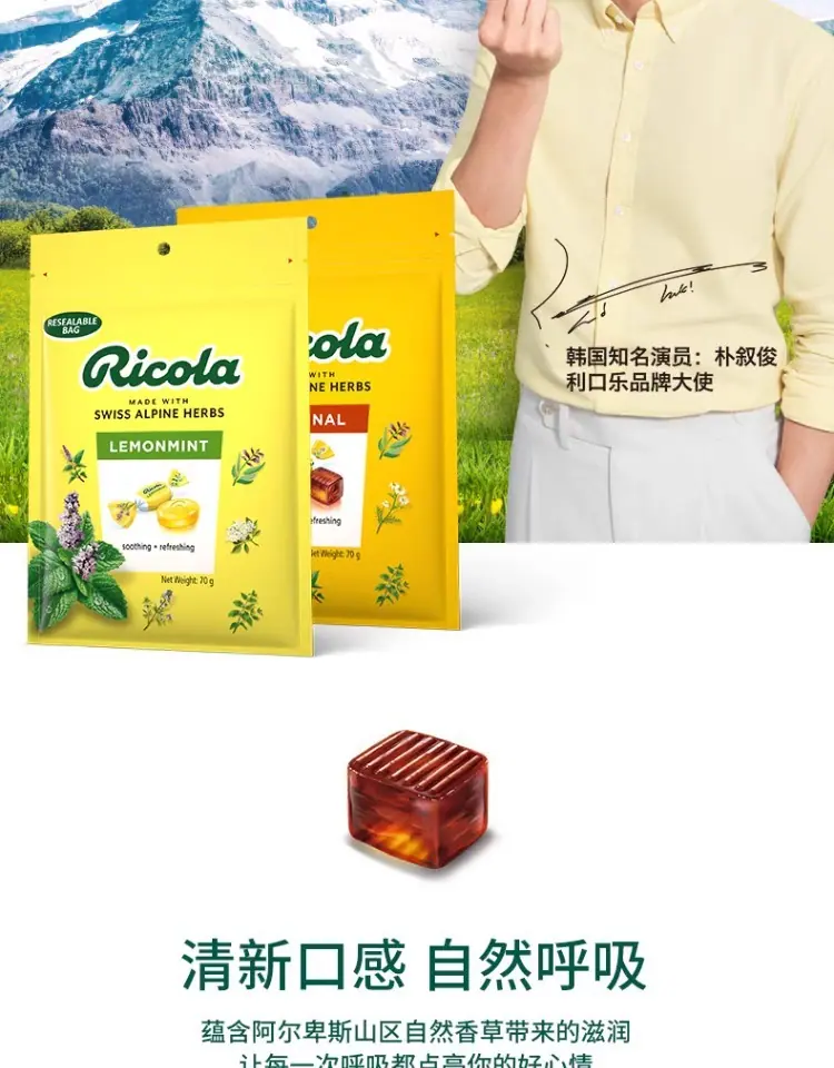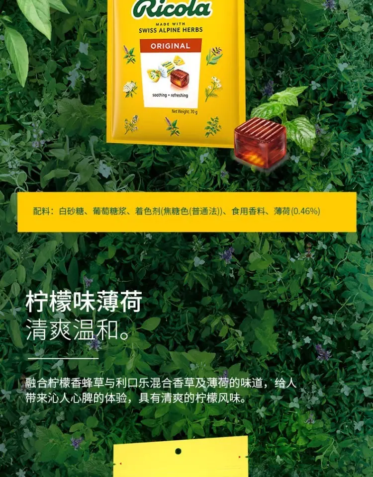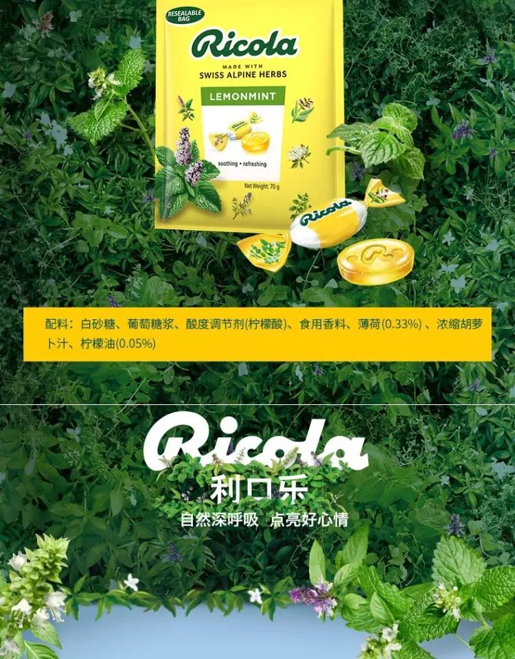 Ricola Suiza Importado Likou Le Sabor Original Limón Menta Azúcar para la Garganta 70g Dulces Duros de Menta Snacks
