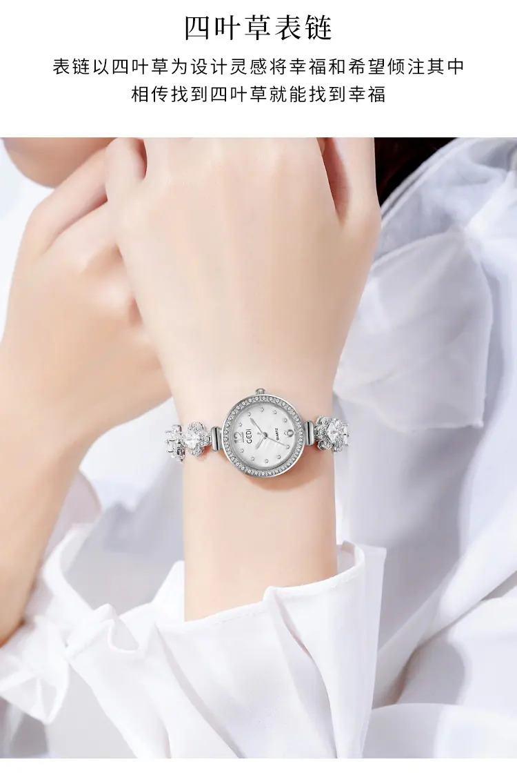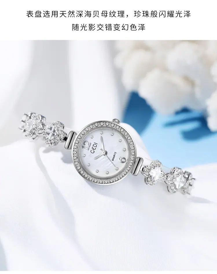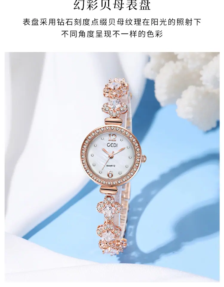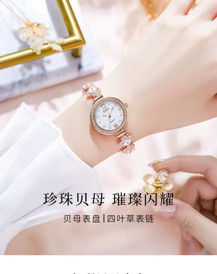 Reloj Pulsera Nicho Goldie para Mujer Reloj de Cuarzo de Nácar de Lujo Ligero para Mujer Reloj Trébol de Cuatro Hojas para Mujer