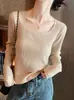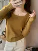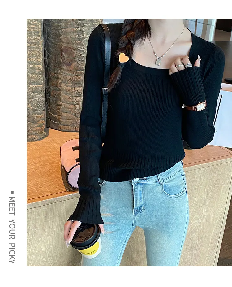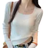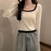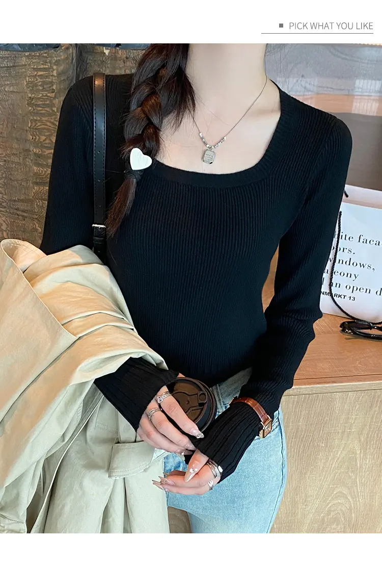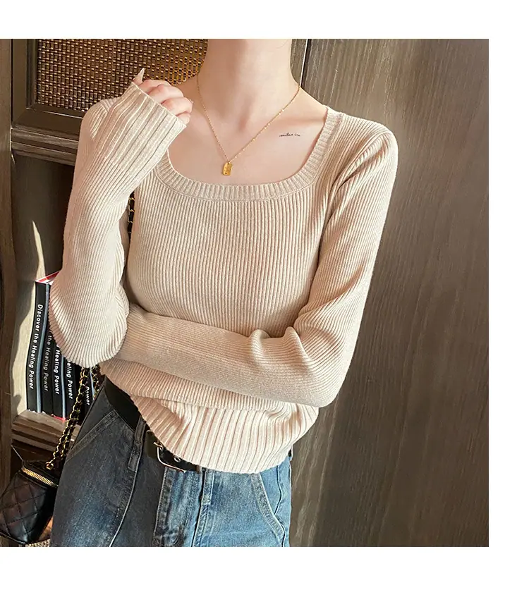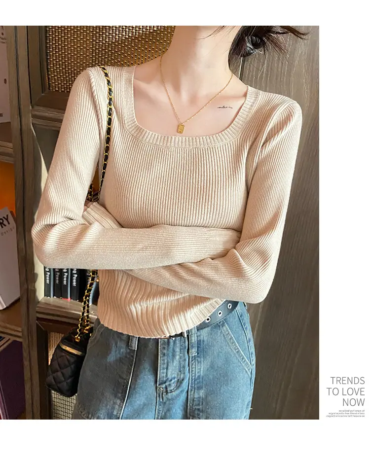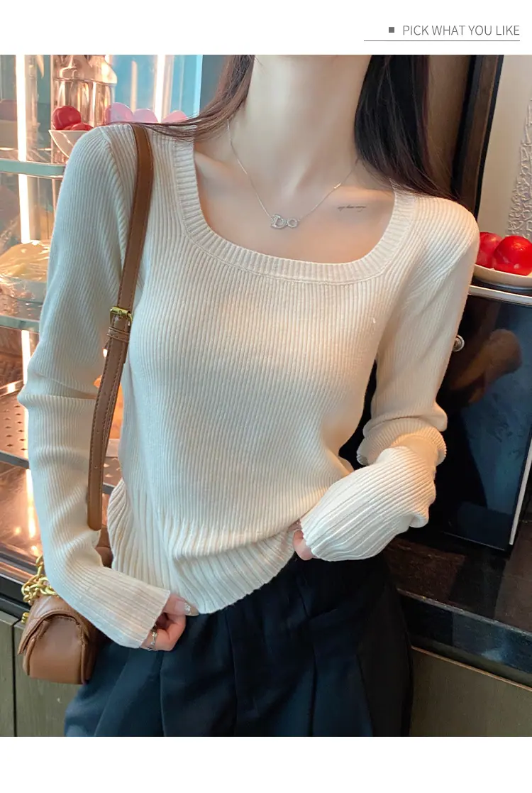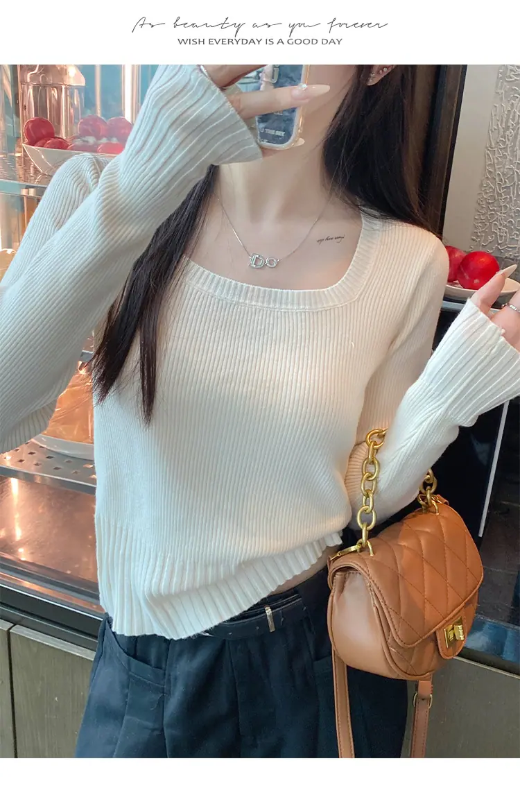 Suéter delgado de punto, nuevo estilo para principios de otoño, top de otoño para mujer, camisa básica con cuello cuadrado, suéter corto ajustado