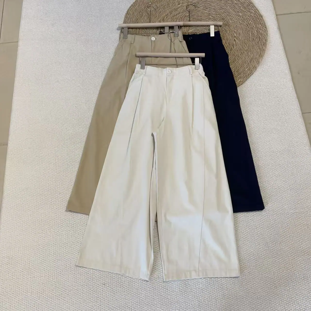 Otoño 2025 Nuevo Color Sólido Elástico en la Espalda Cintura Alta Pantalones Casuales para Mujer Sueltos Adelgazantes Pierna Recta Pantalones de Pierna Ancha Súper Suaves Lavados