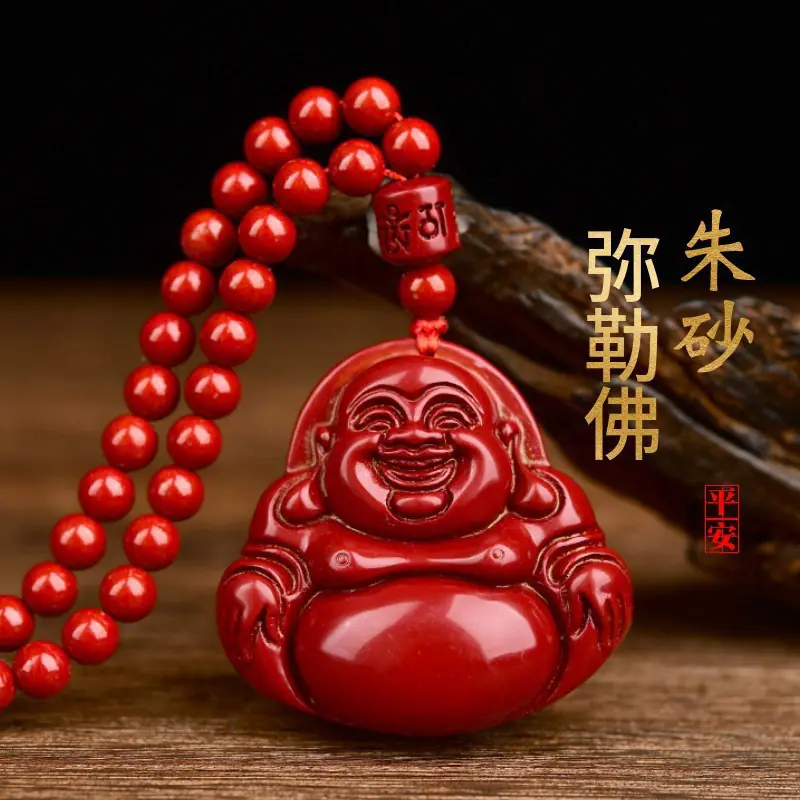 Colgante de Cinabrio Arena Dorada Púrpura Buda Maitreya Buda de Gran Vientre Collar de Cadena de 108 Cuentas Colgante Bajo Contenido