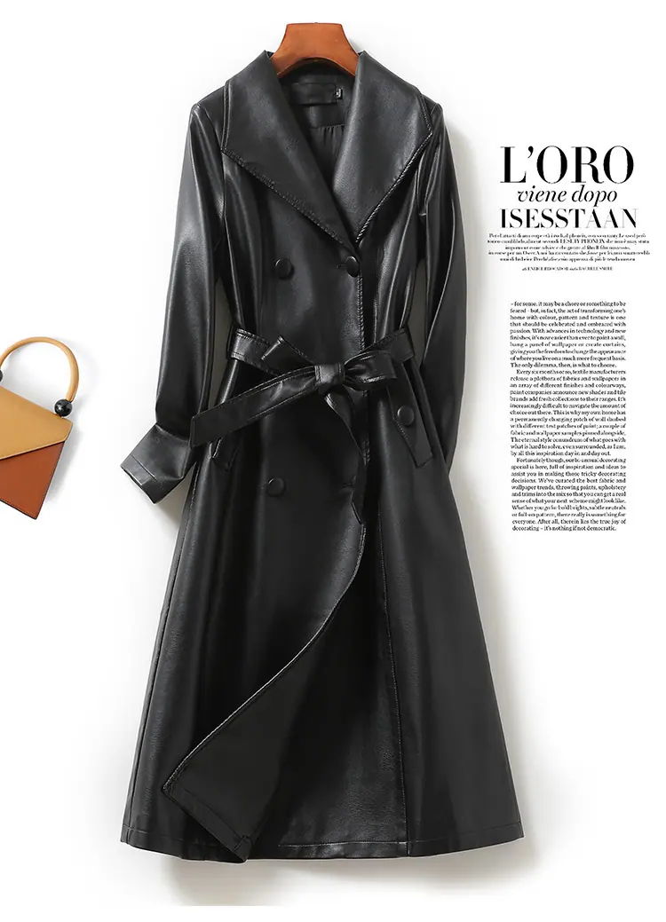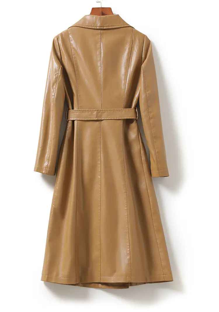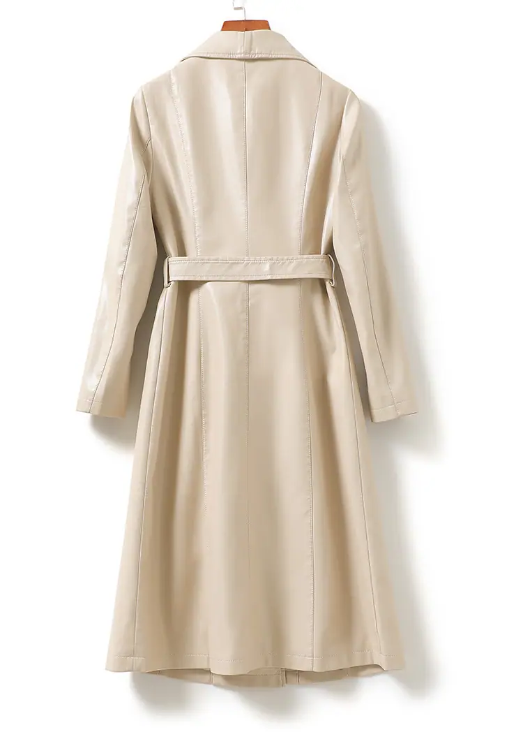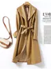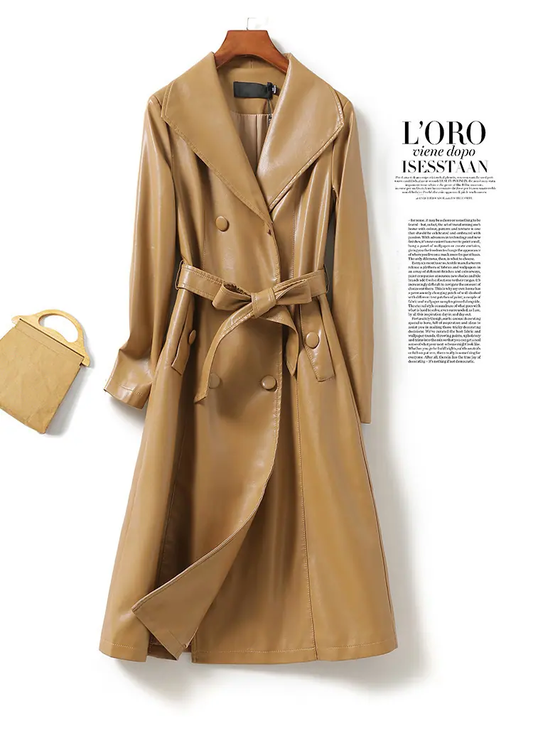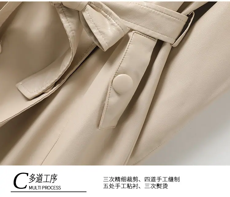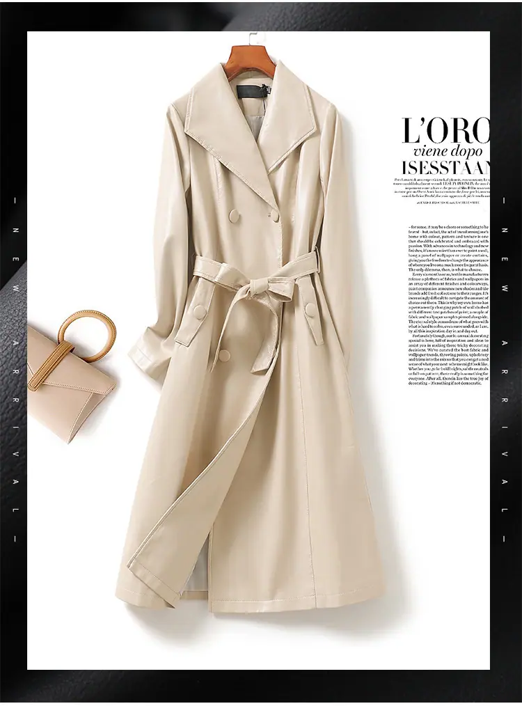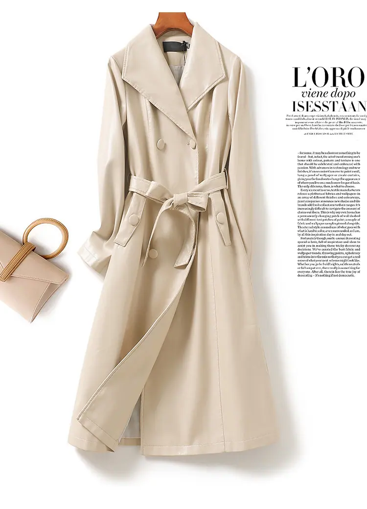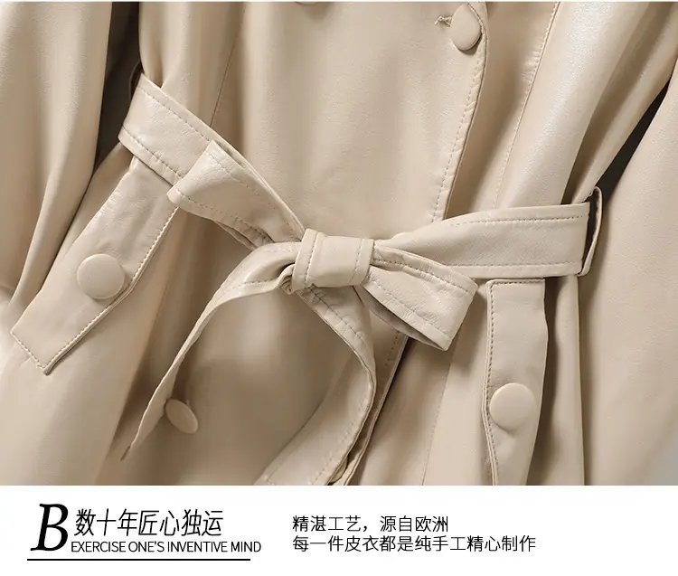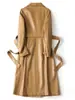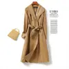 Abrigo nuevo de otoño e invierno transfronterizo de piel de oveja Haining, abrigo largo tipo gabardina, sentido de alta gama, ceñido a la cintura, moda, abrigo de solapa, moderno, venta al por mayor
