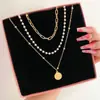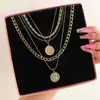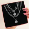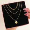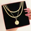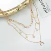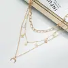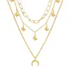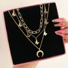 Joyería Transfronteriza Europea y Americana Moda Diamantes Incrustados Estrella de Cinco Puntas Luna Creciente Colgante Collar Multicapa Cadena para Clavícula Personalizada