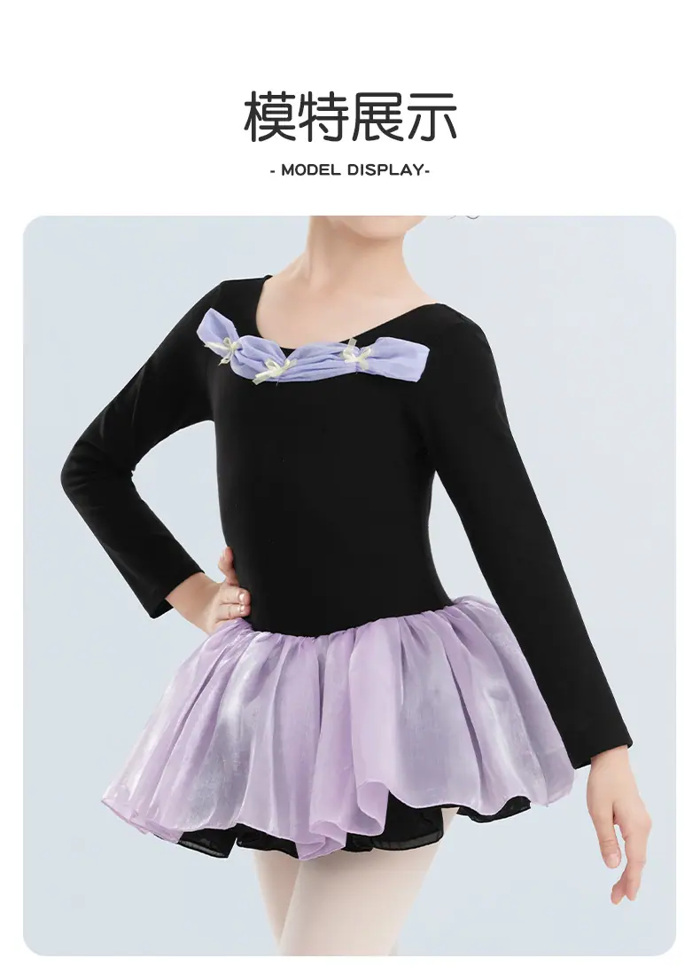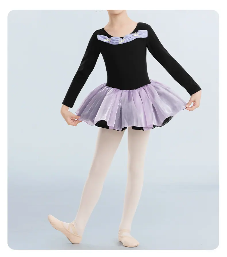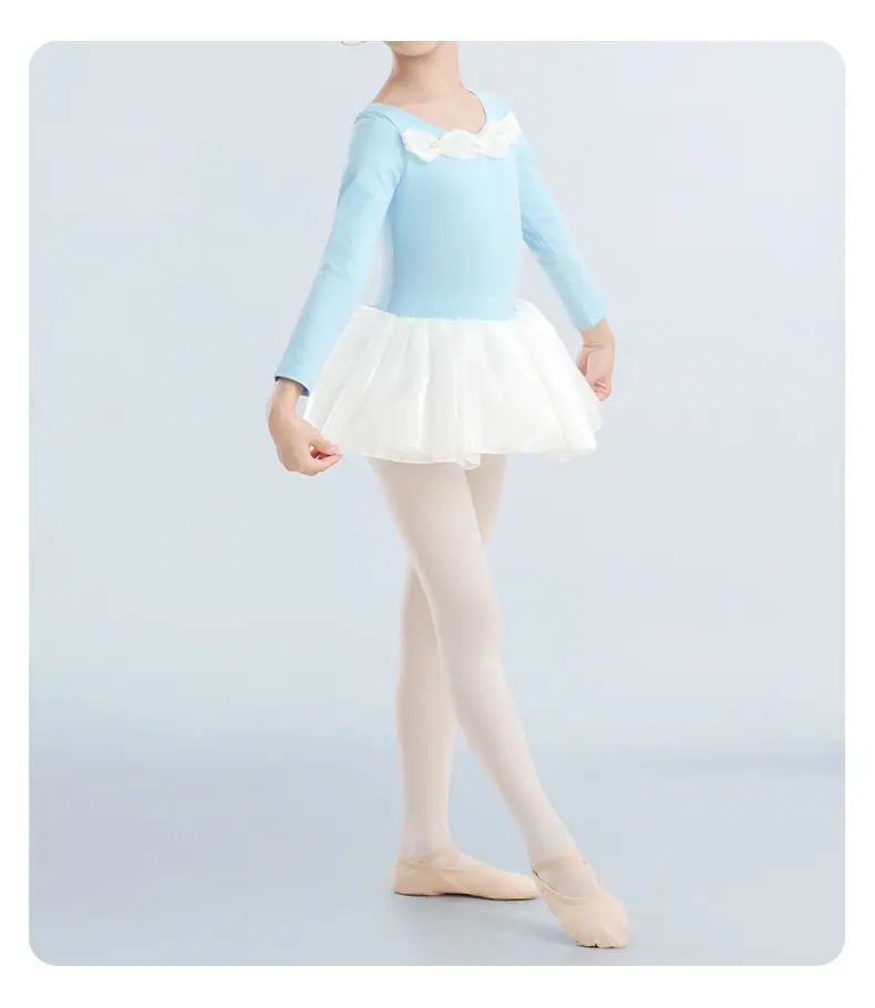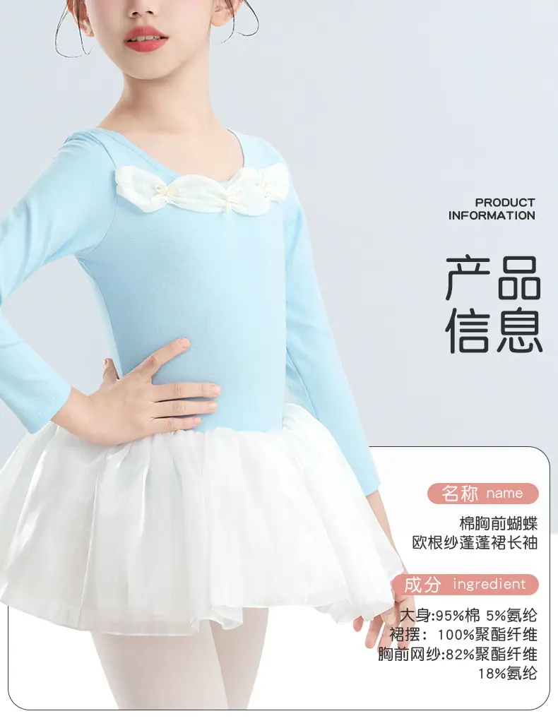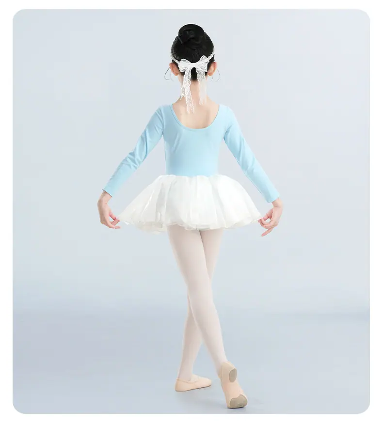 Disfraz de Baile Niños Niñas Práctica Otoño Manga Larga Vestido de Actuación Princesa Falda Abullonada Niña Disfraz de Ballet Danza China